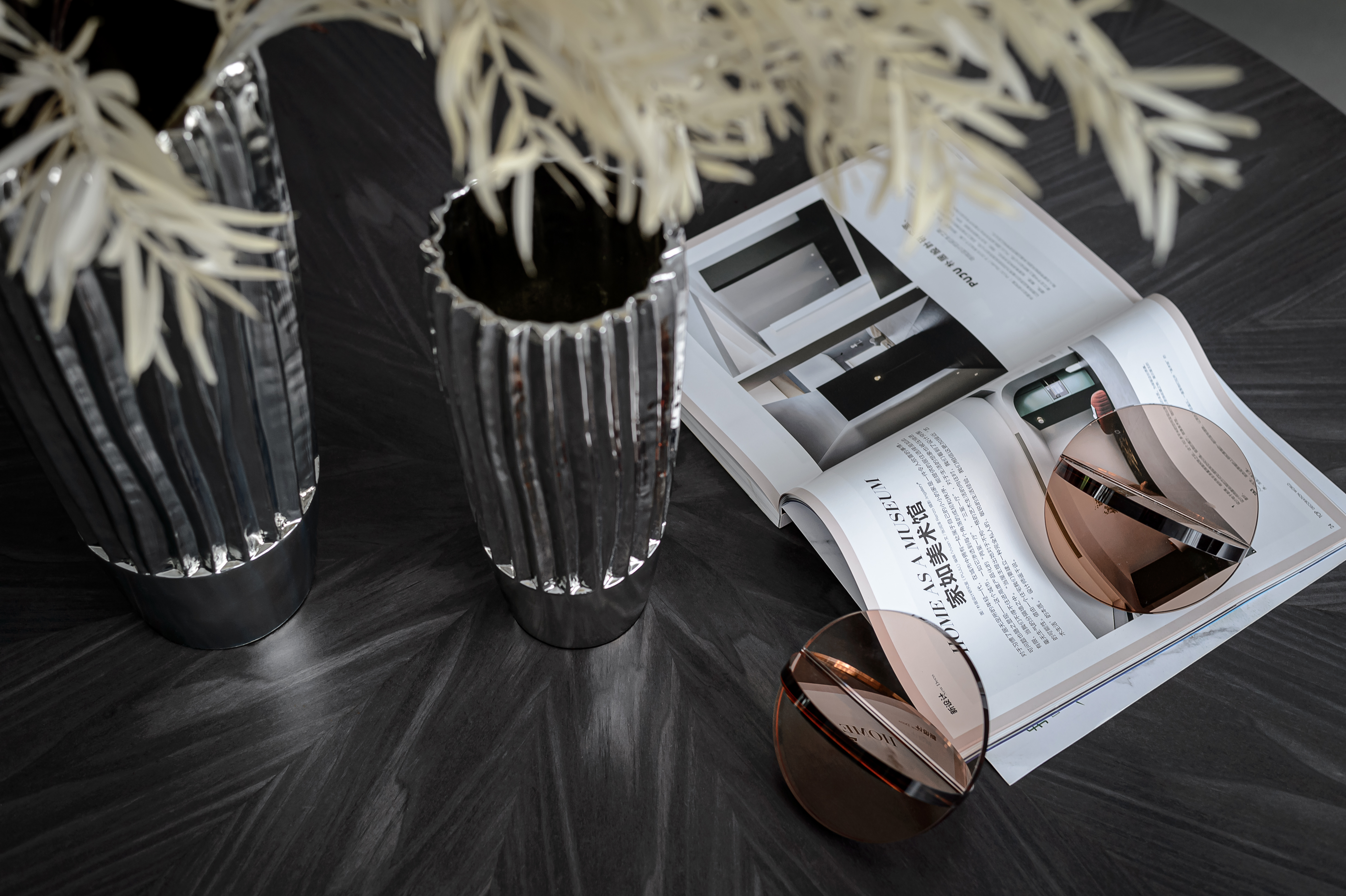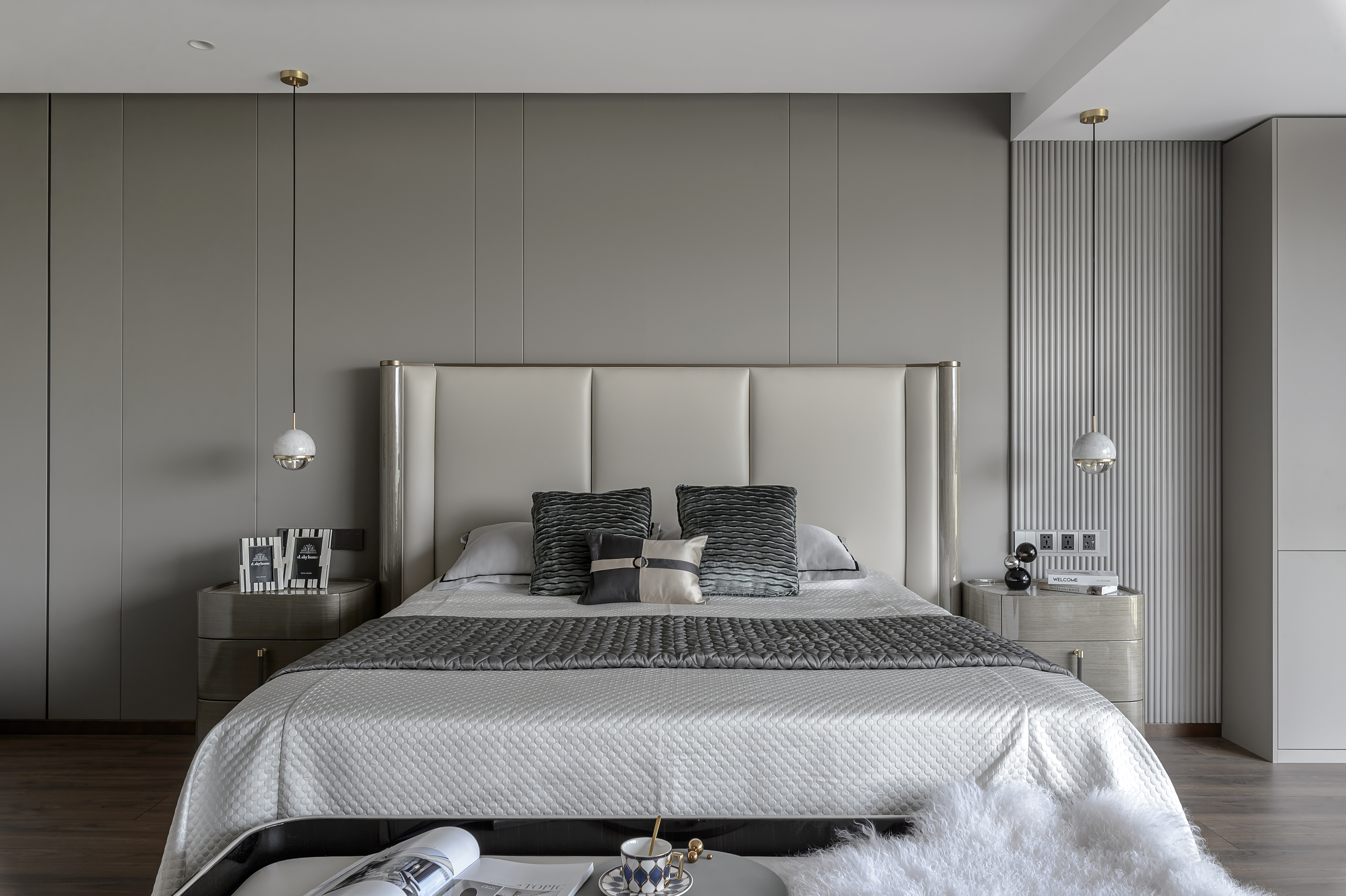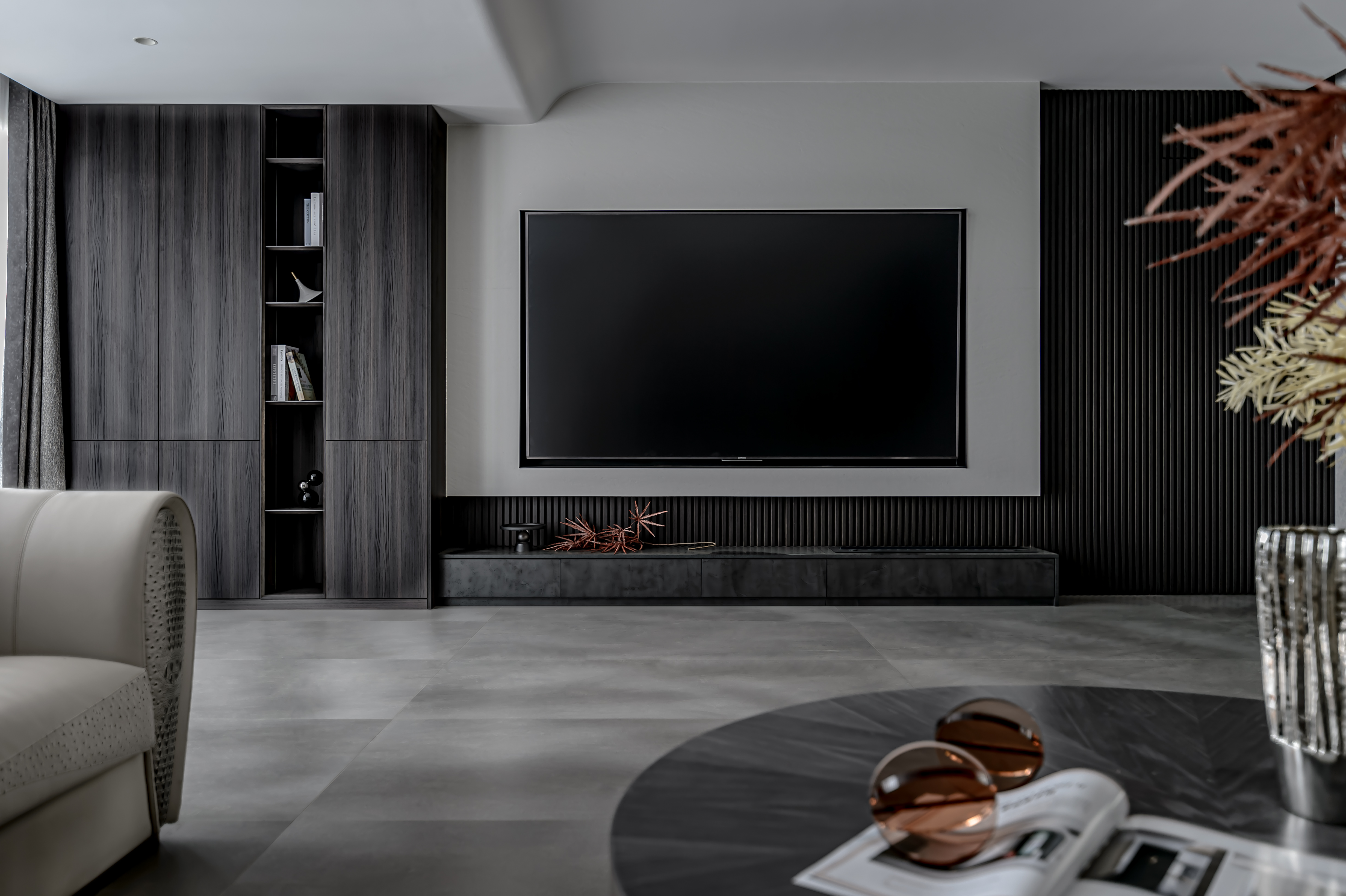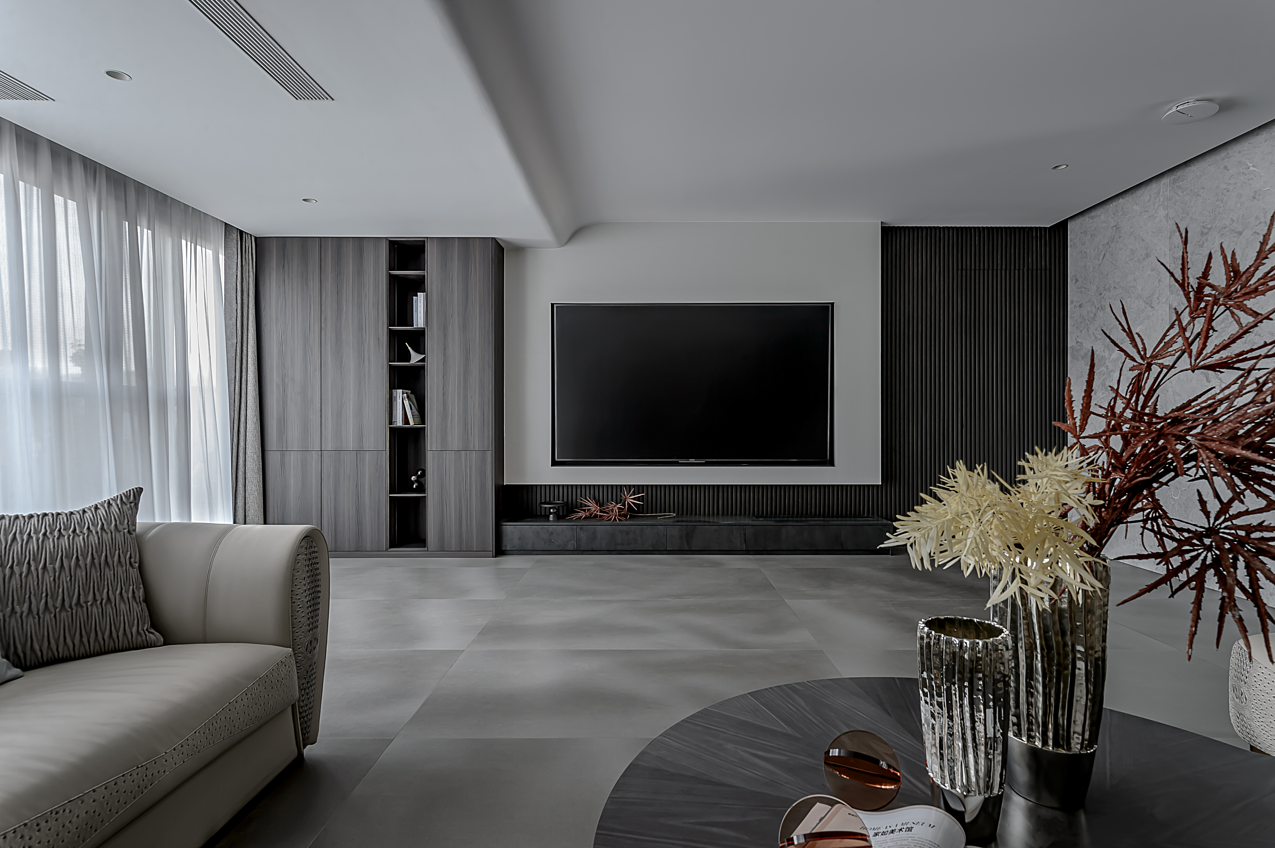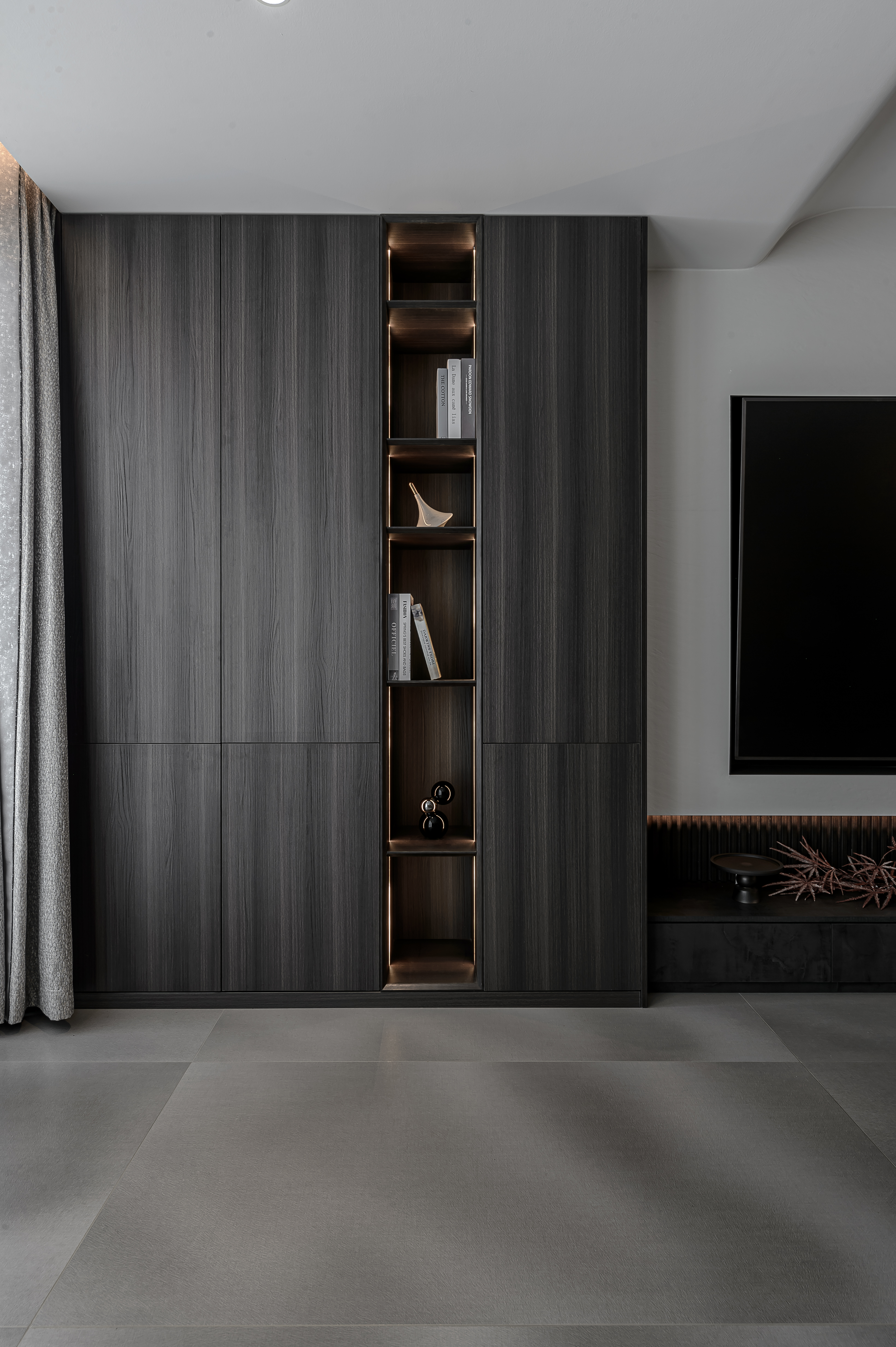 项目定位:本案采用沉稳的灰色和红色为空间主色调,通过各种材质的层次和互补,打造“暮色将至,枫林渐红“的空间意境。