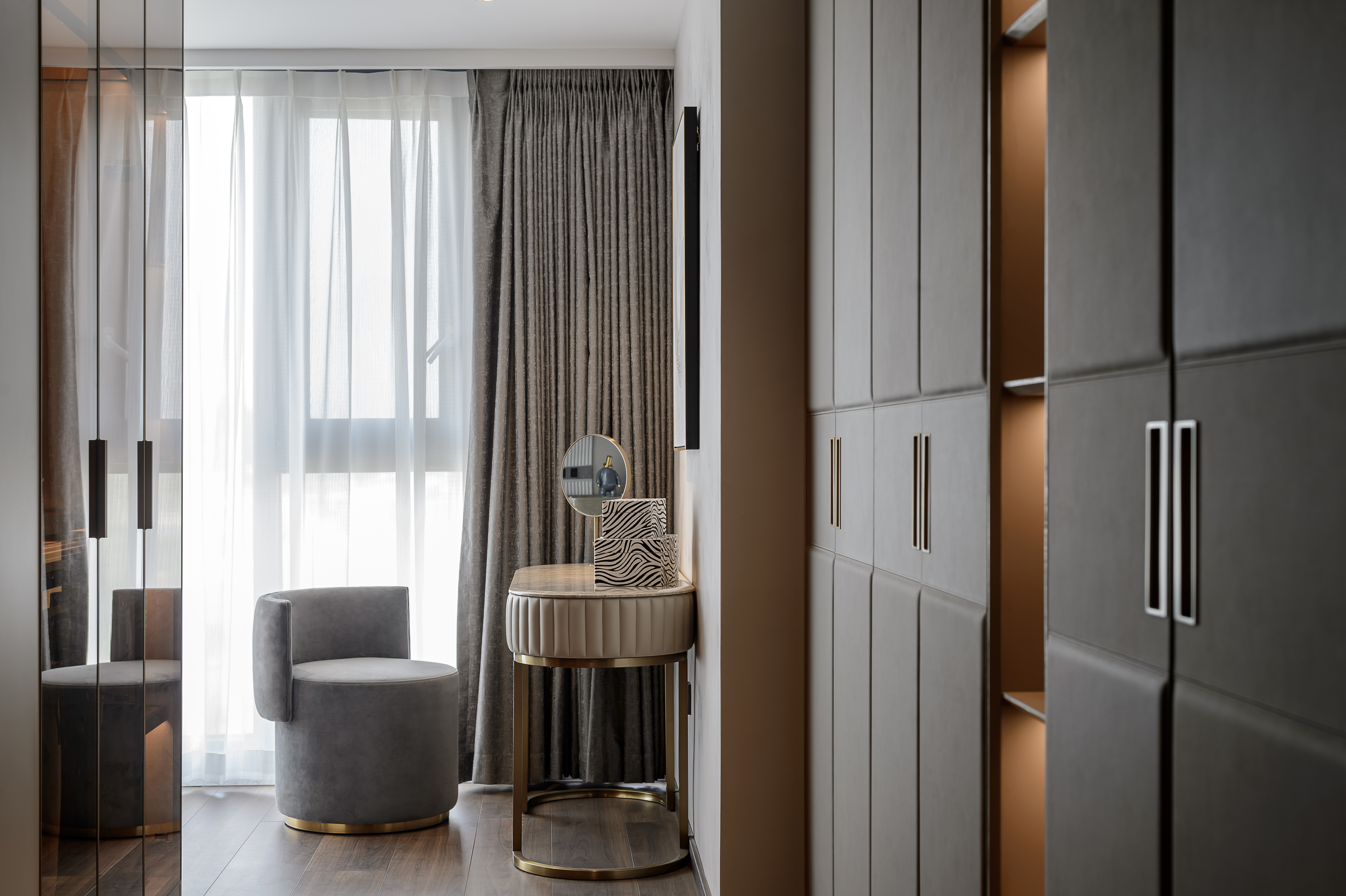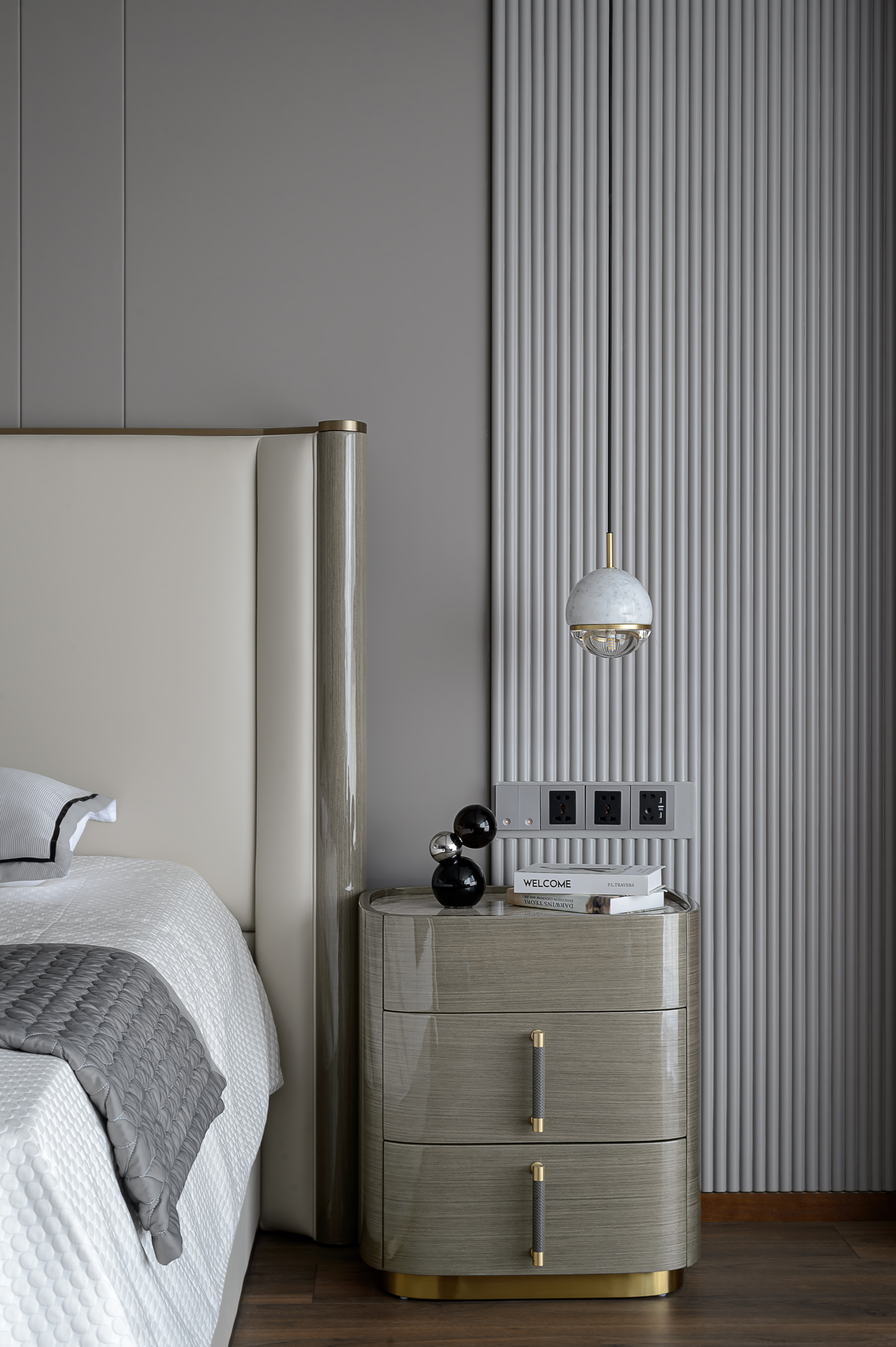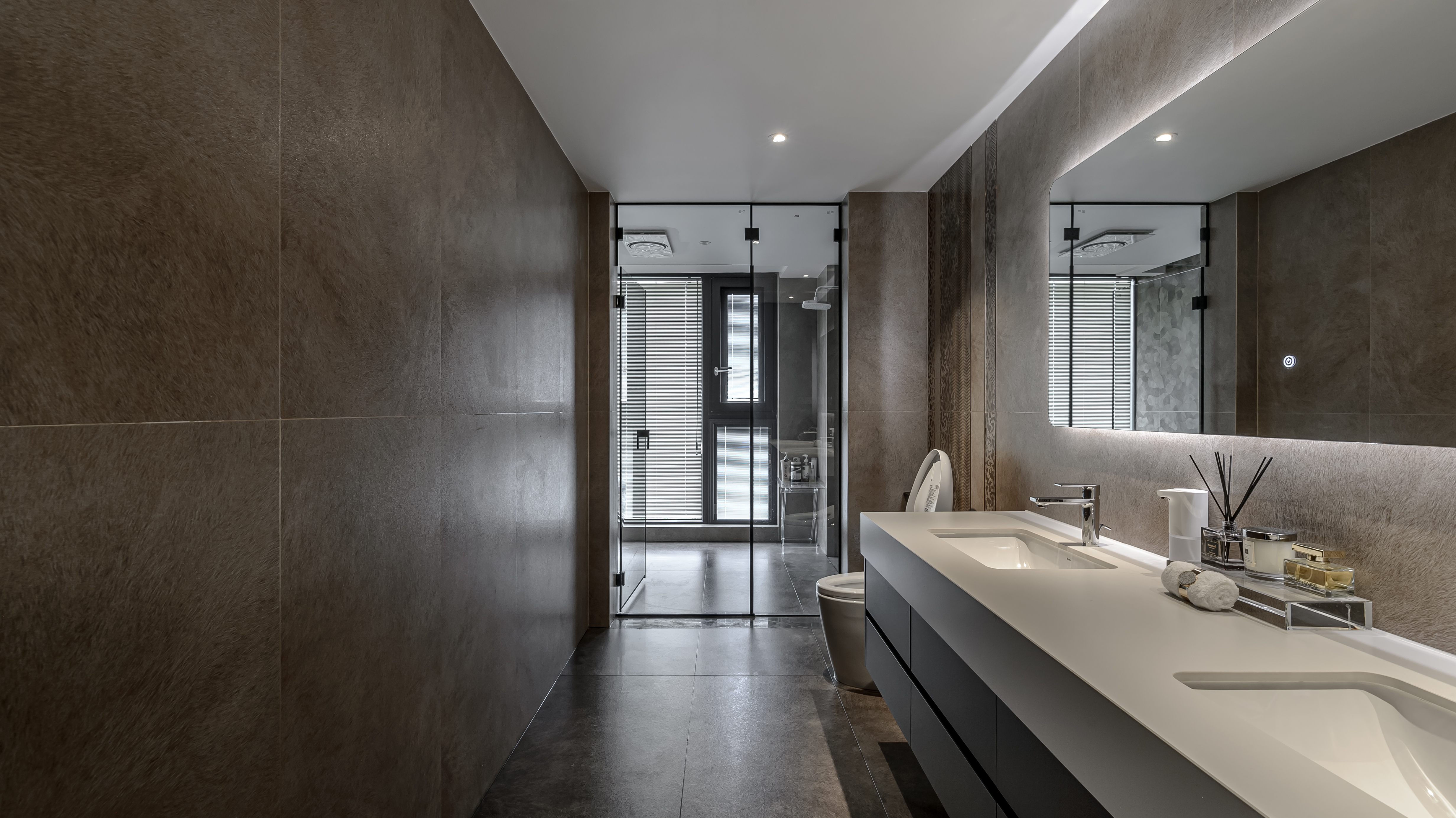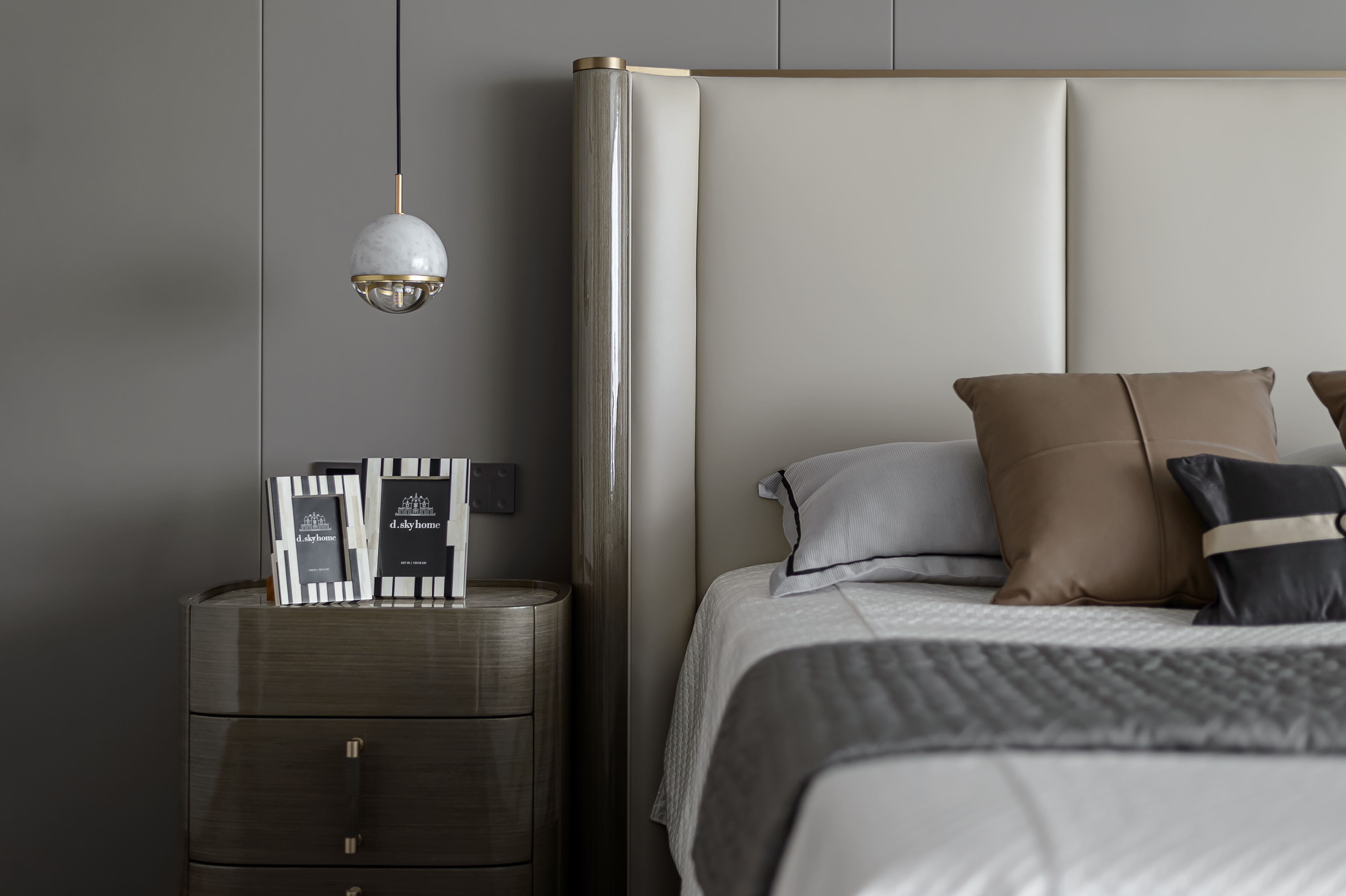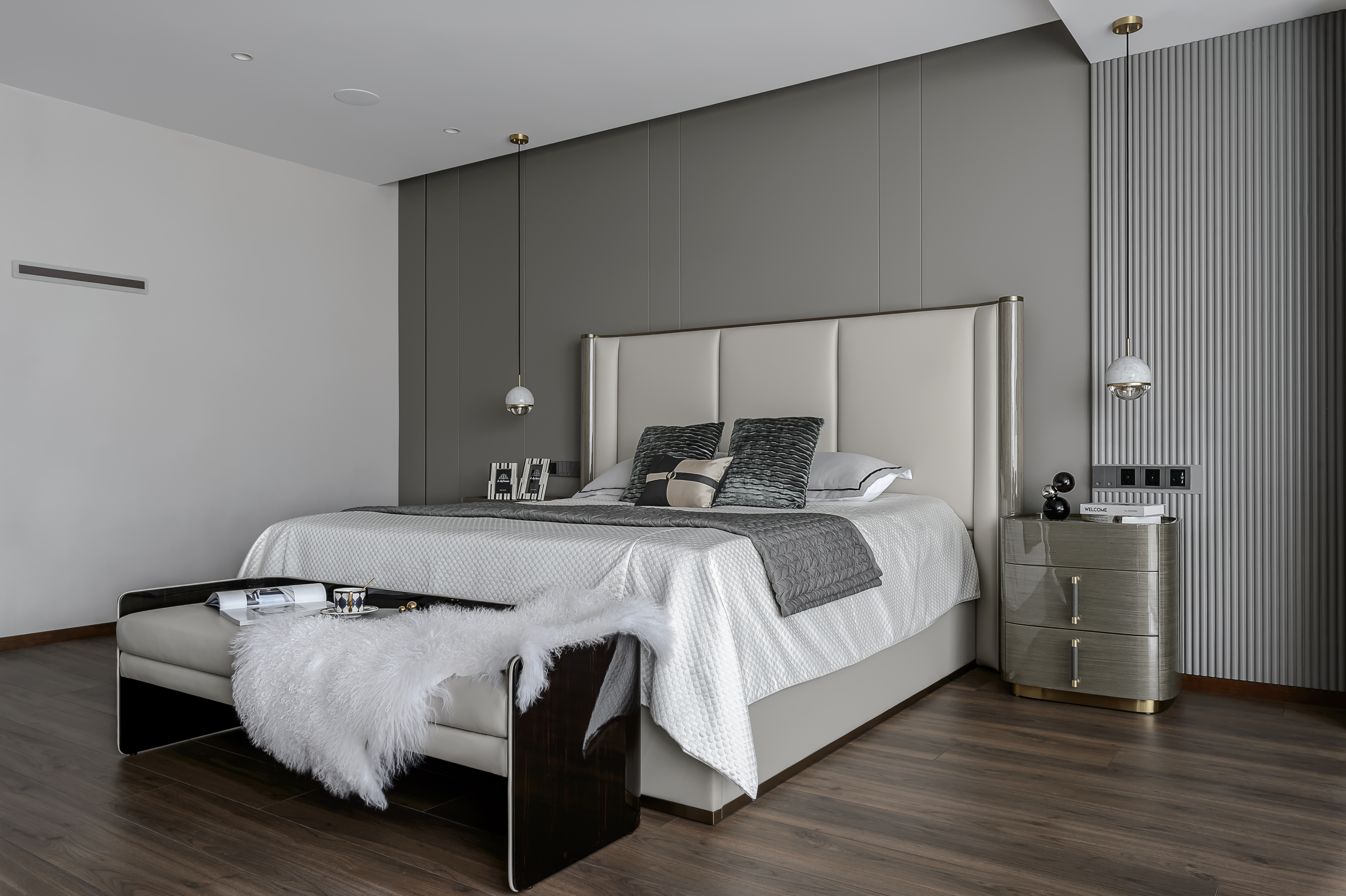 项目定位:本案采用沉稳的灰色和红色为空间主色调,通过各种材质的层次和互补,打造“暮色将至,枫林渐红“的空间意境。