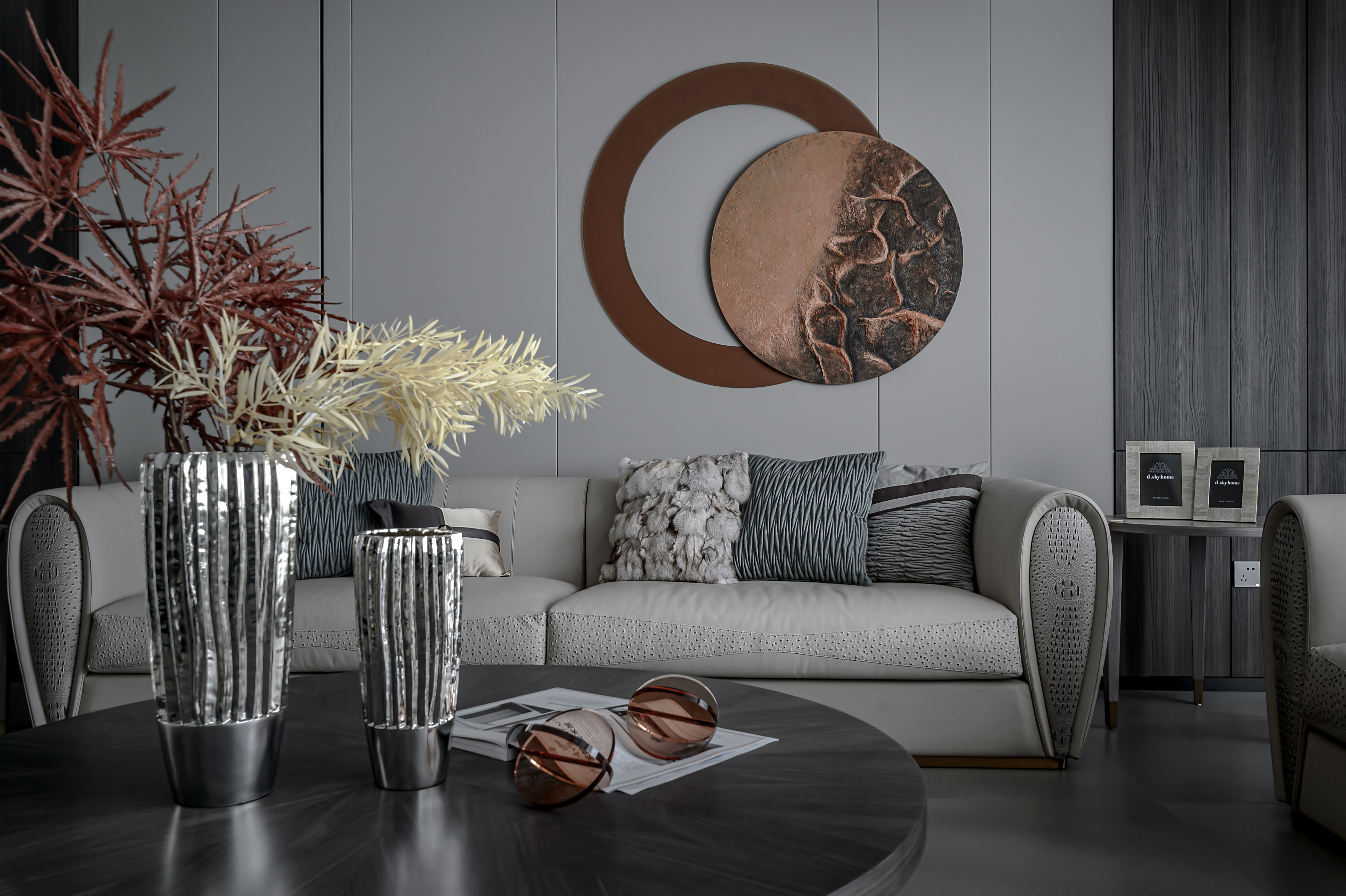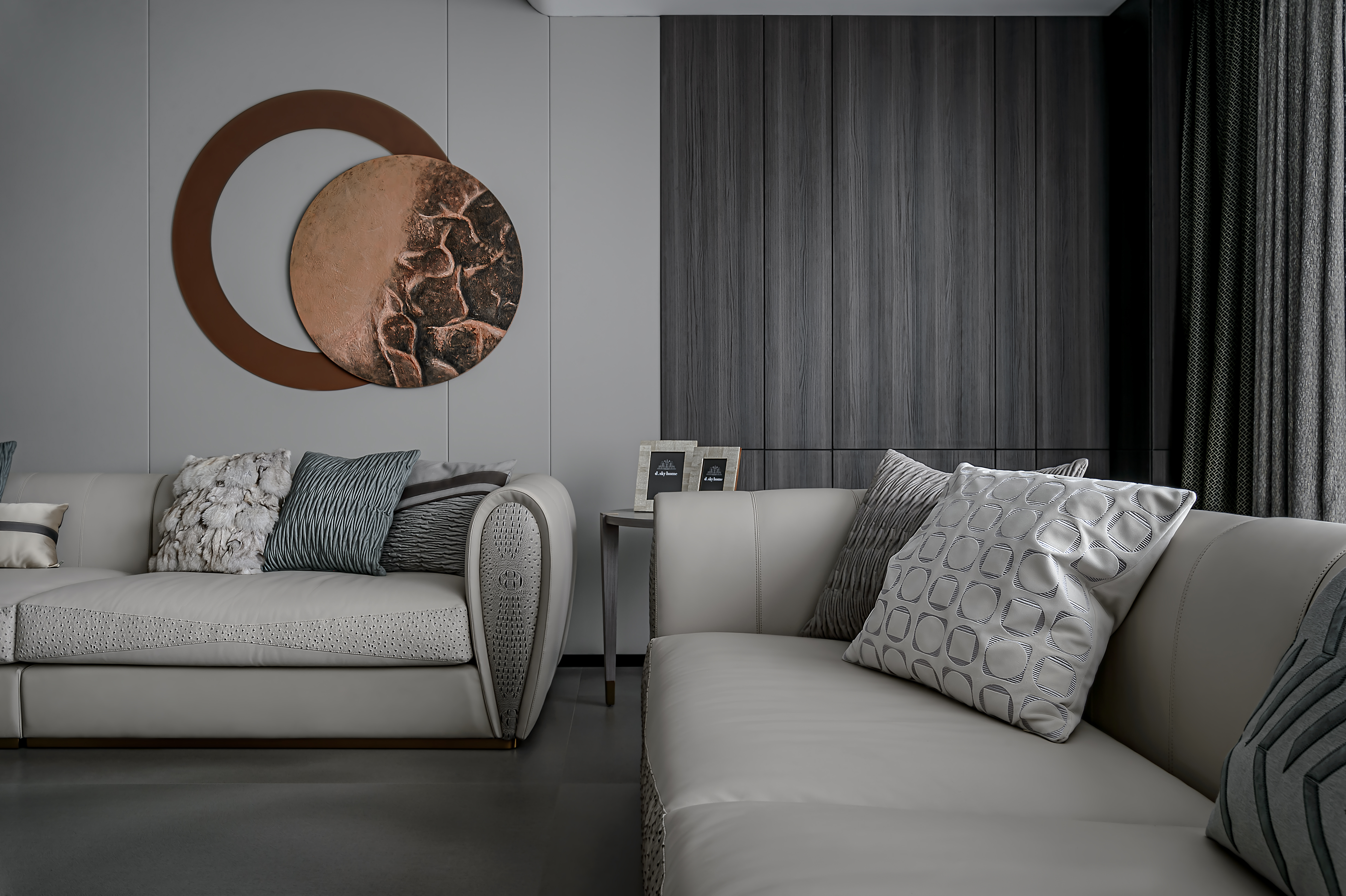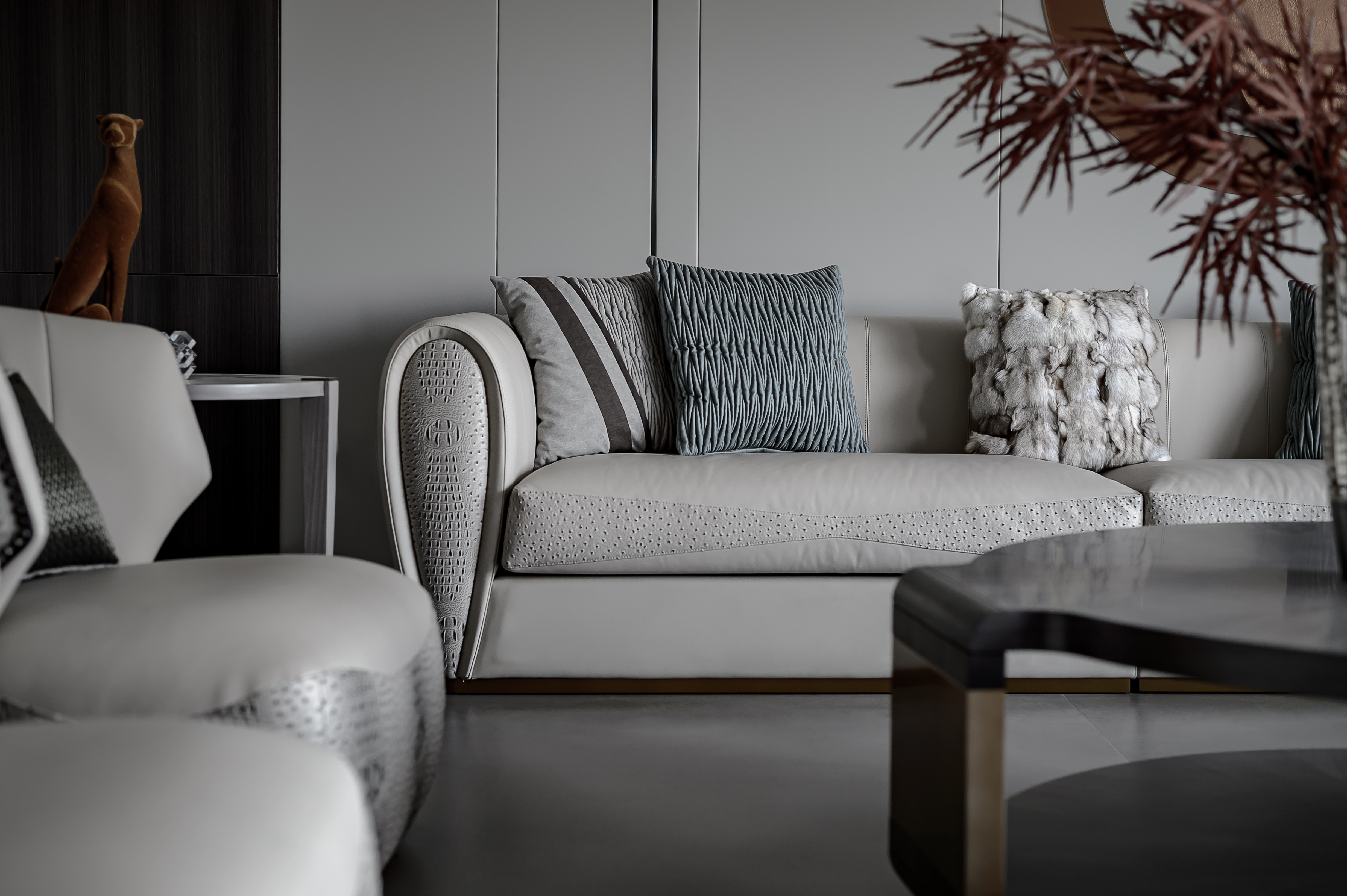 设计选材:本案选用环保皮革,布艺,木质等环保材料,配合硬装的石材,木质等打造一个环保,宜居的家用空间。