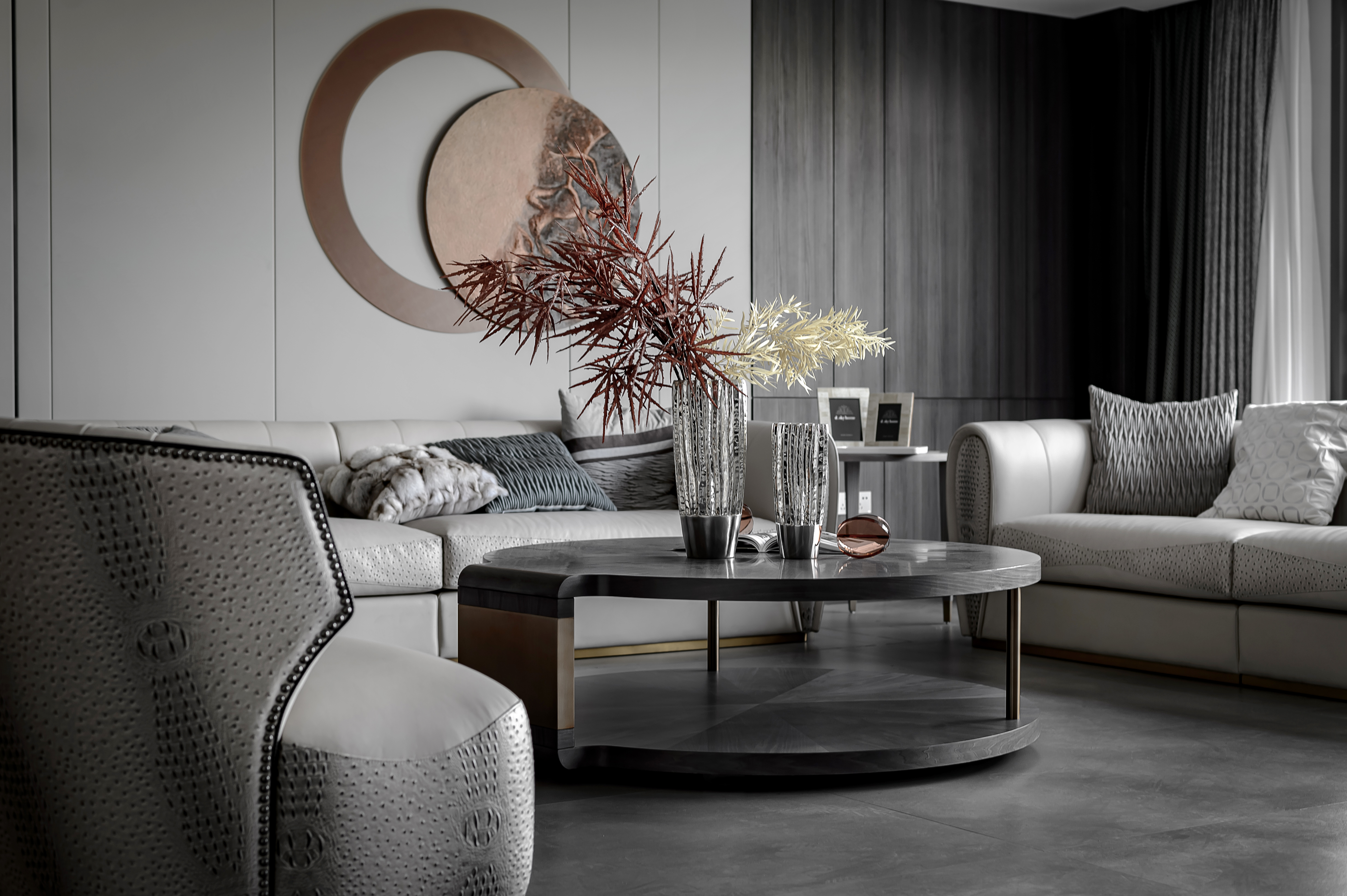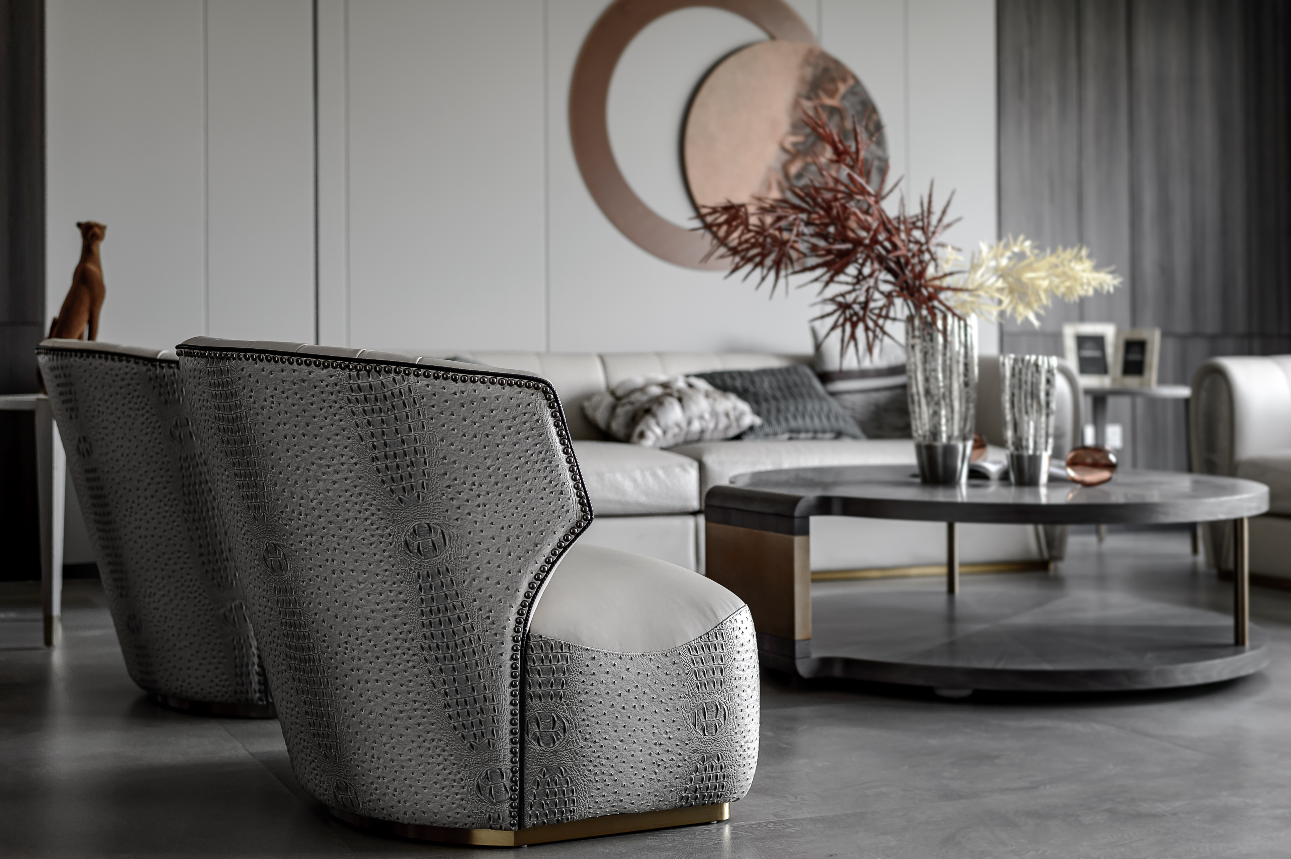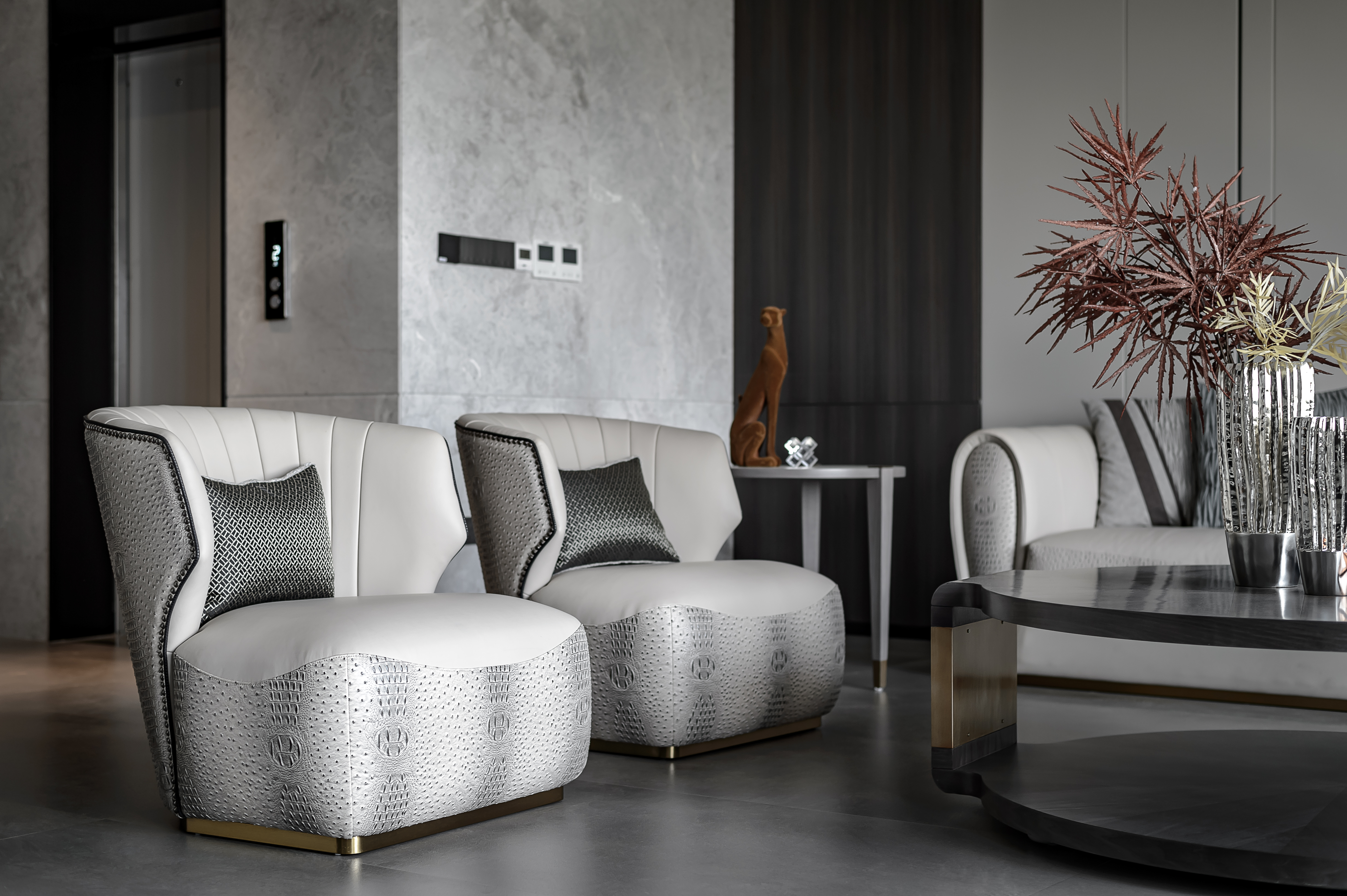 设计选材:本案选用环保皮革,布艺,木质等环保材料,配合硬装的石材,木质等打造一个环保,宜居的家用空间。