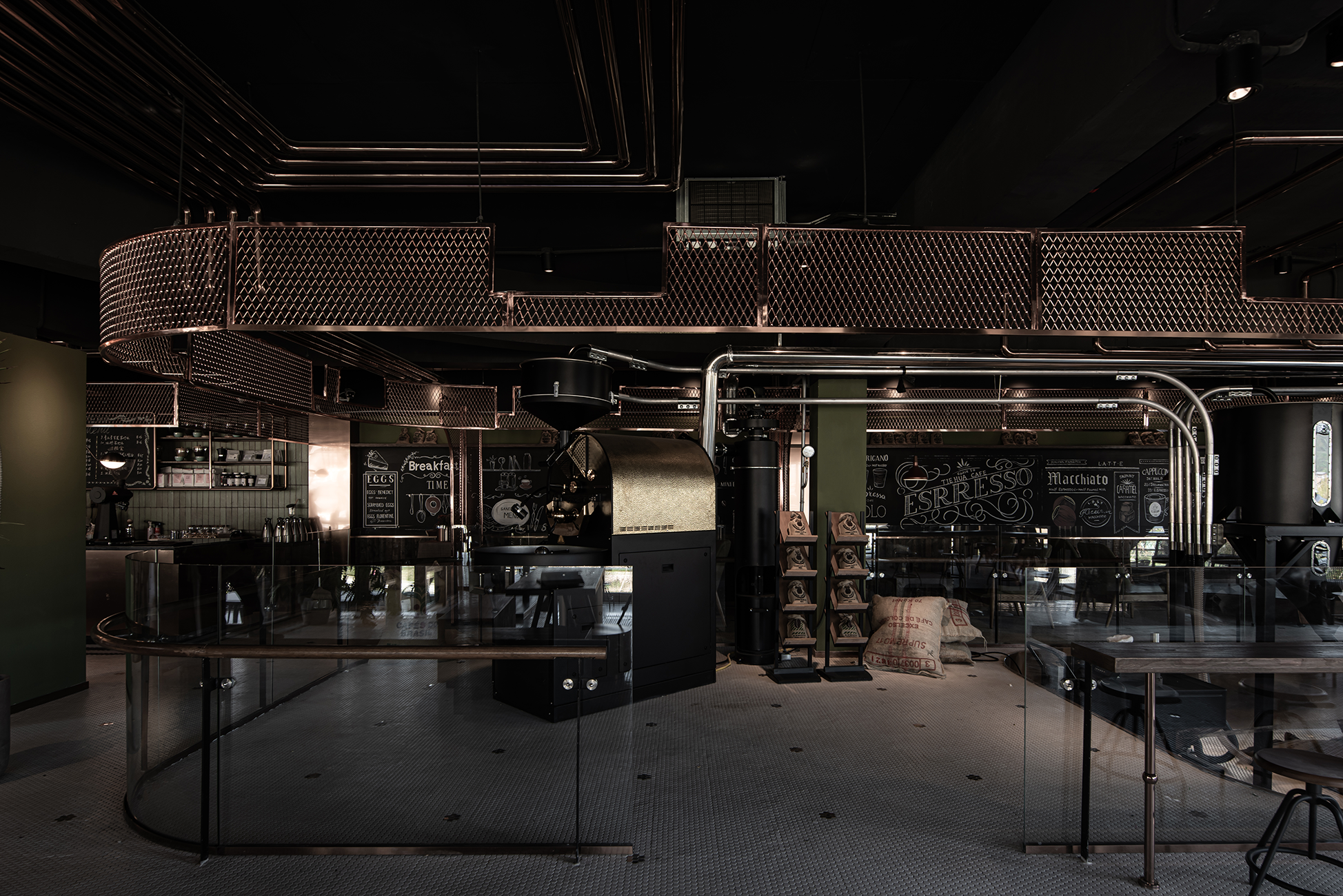 空间意境:咖啡体验已不局限于手握一杯成品咖啡,而铁花咖啡厅更像是一家咖啡工厂,在这里,除了品尝咖啡,消费者可以零距离接触和了解咖啡的烘焙、生产和制作过程,感受互动式全感官的咖啡体验。
