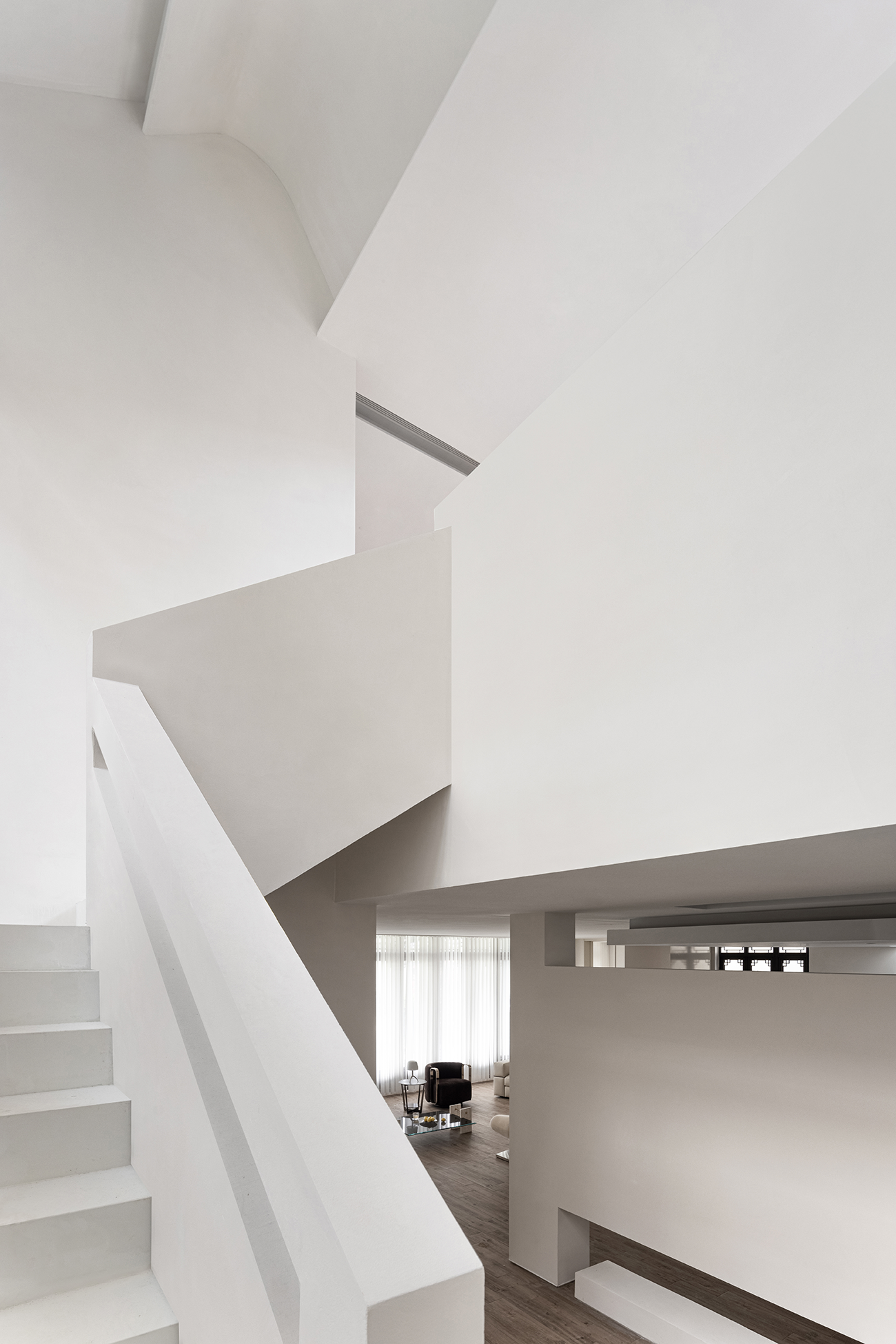 楼梯宛如一座交互折线雕塑伫立其中 -