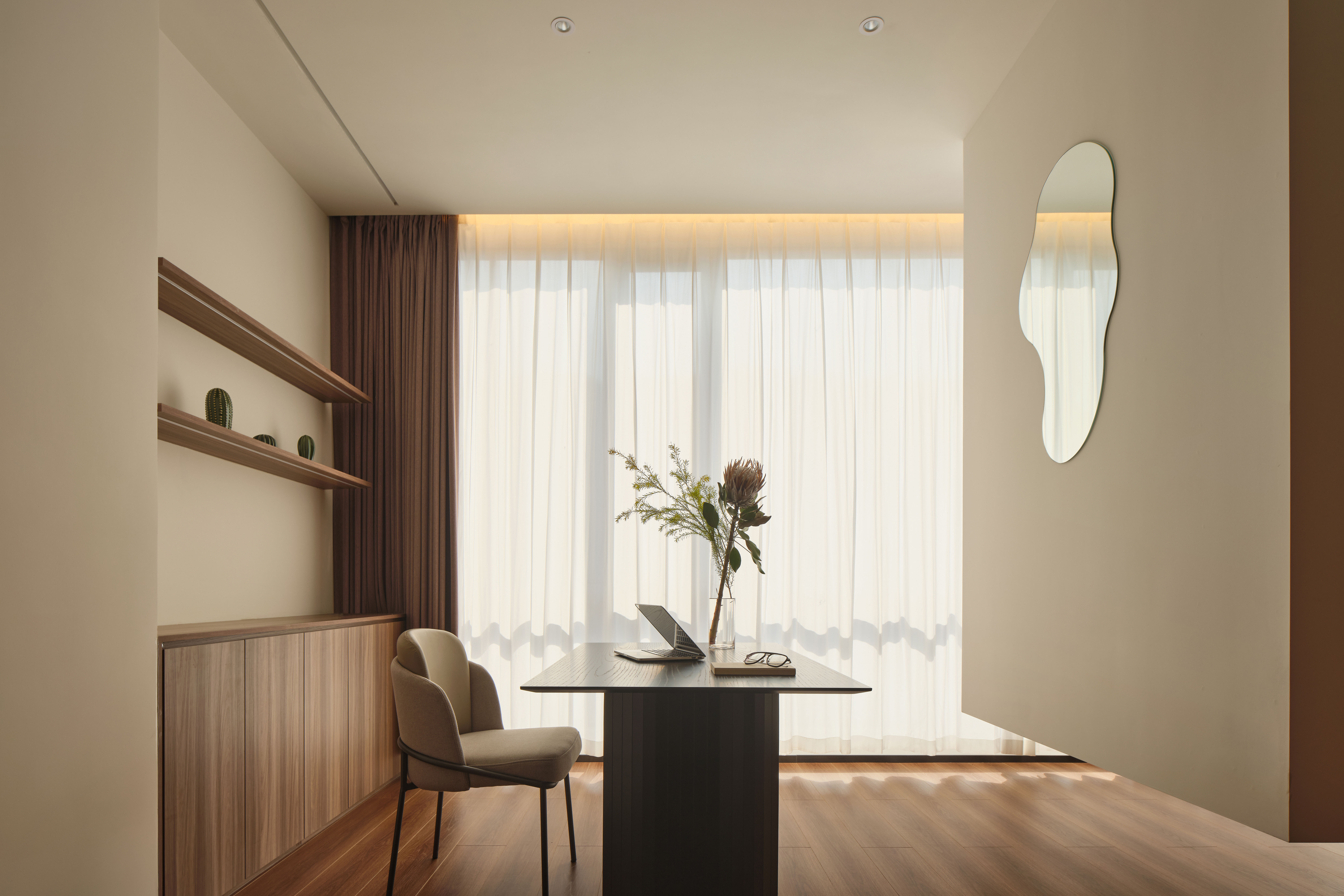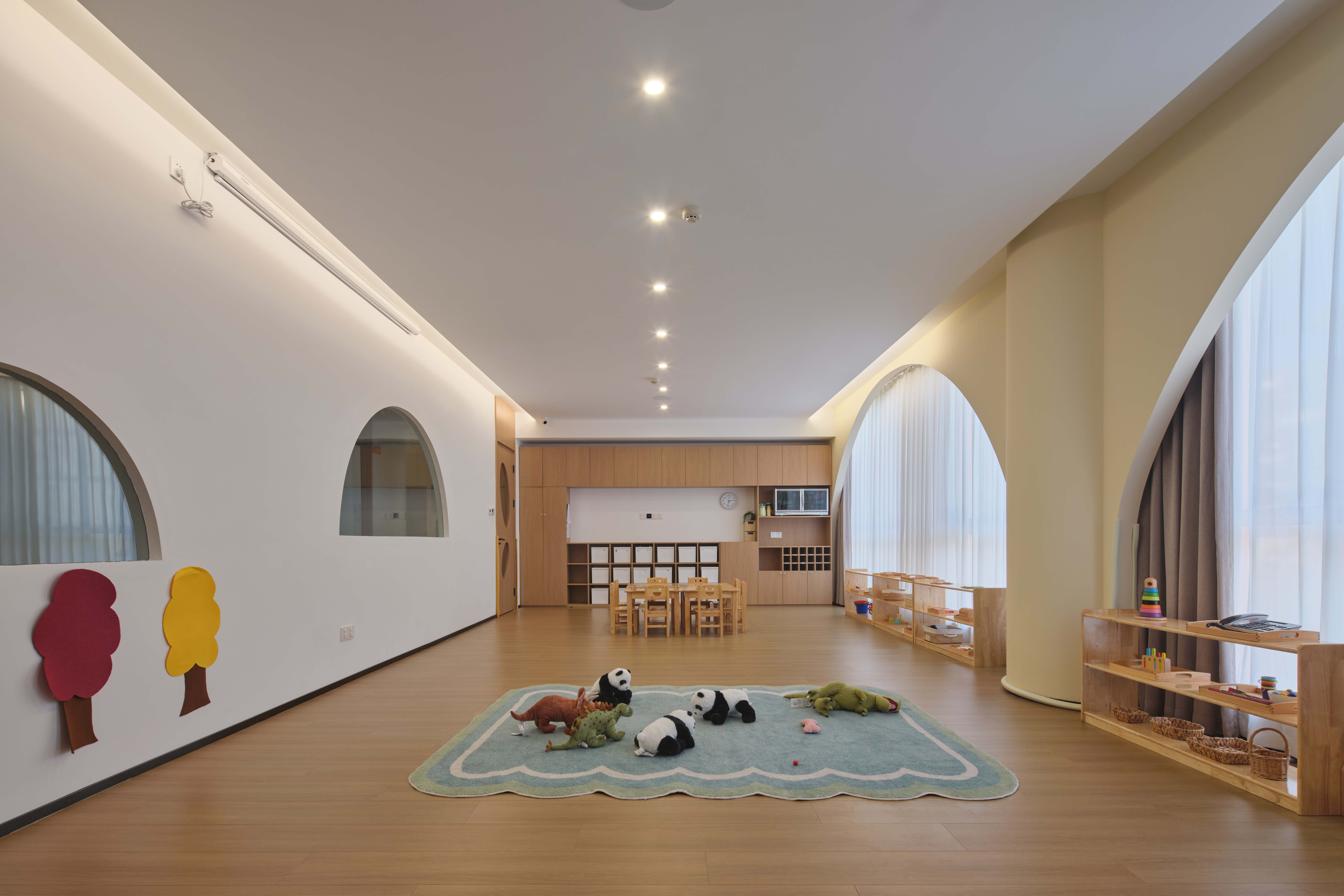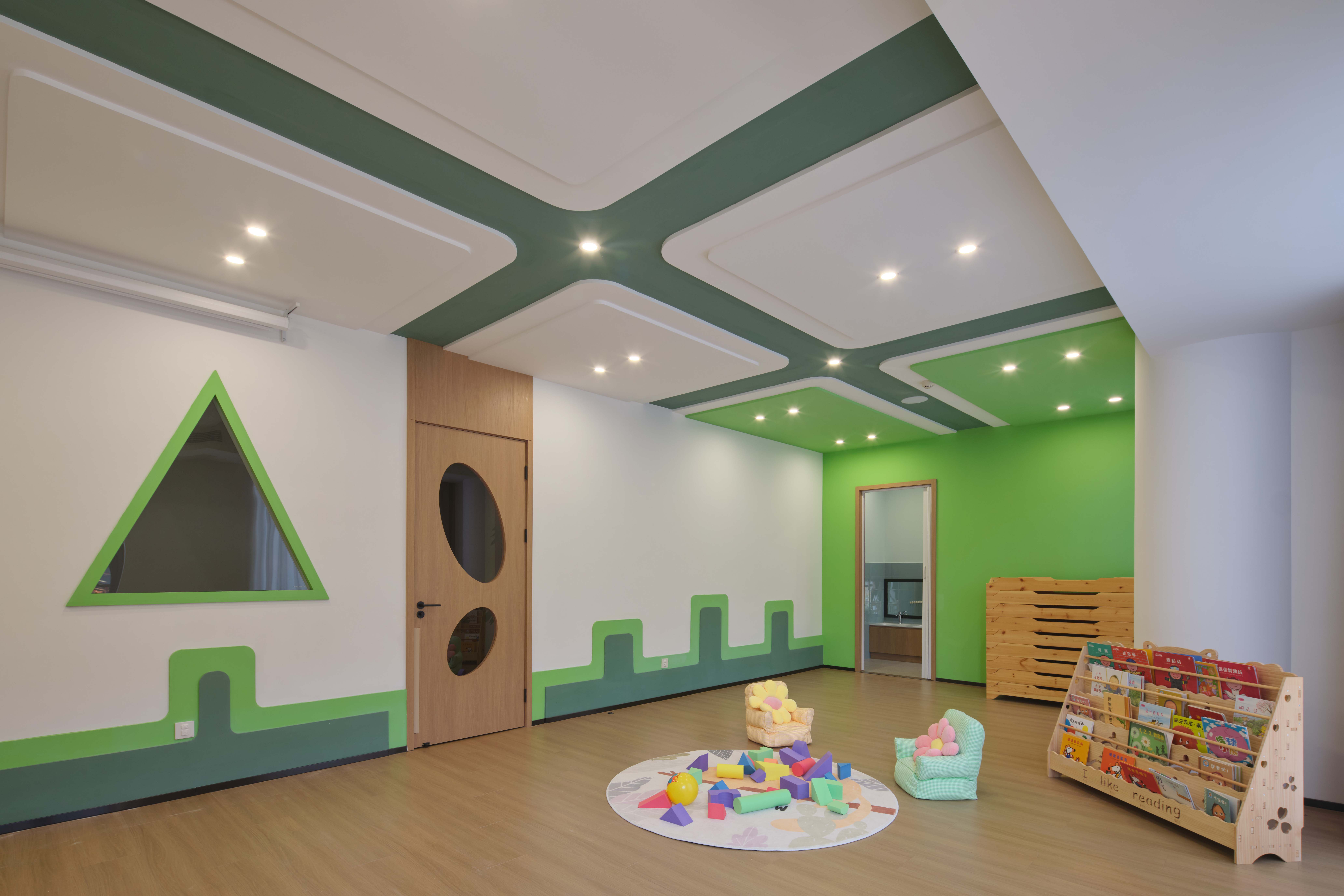 项目定位:此项目是一个心理中心教育机构,一共四层,于是我们以大树的形式展开楼层分配:一层是大的培训和汇报中心,用大胆的色彩和几个造型做修饰,东西做了中式禅意和现代的两个风格对比大教室。二层是幼稚园,分别做教室:牵牛花,轨迹,麦田和森林。让孩子在不一样的空间体会不一样的感受。三层是心理私人咨询中心。四层是老总办公室,接待室,外籍老师套房和大的图书馆。