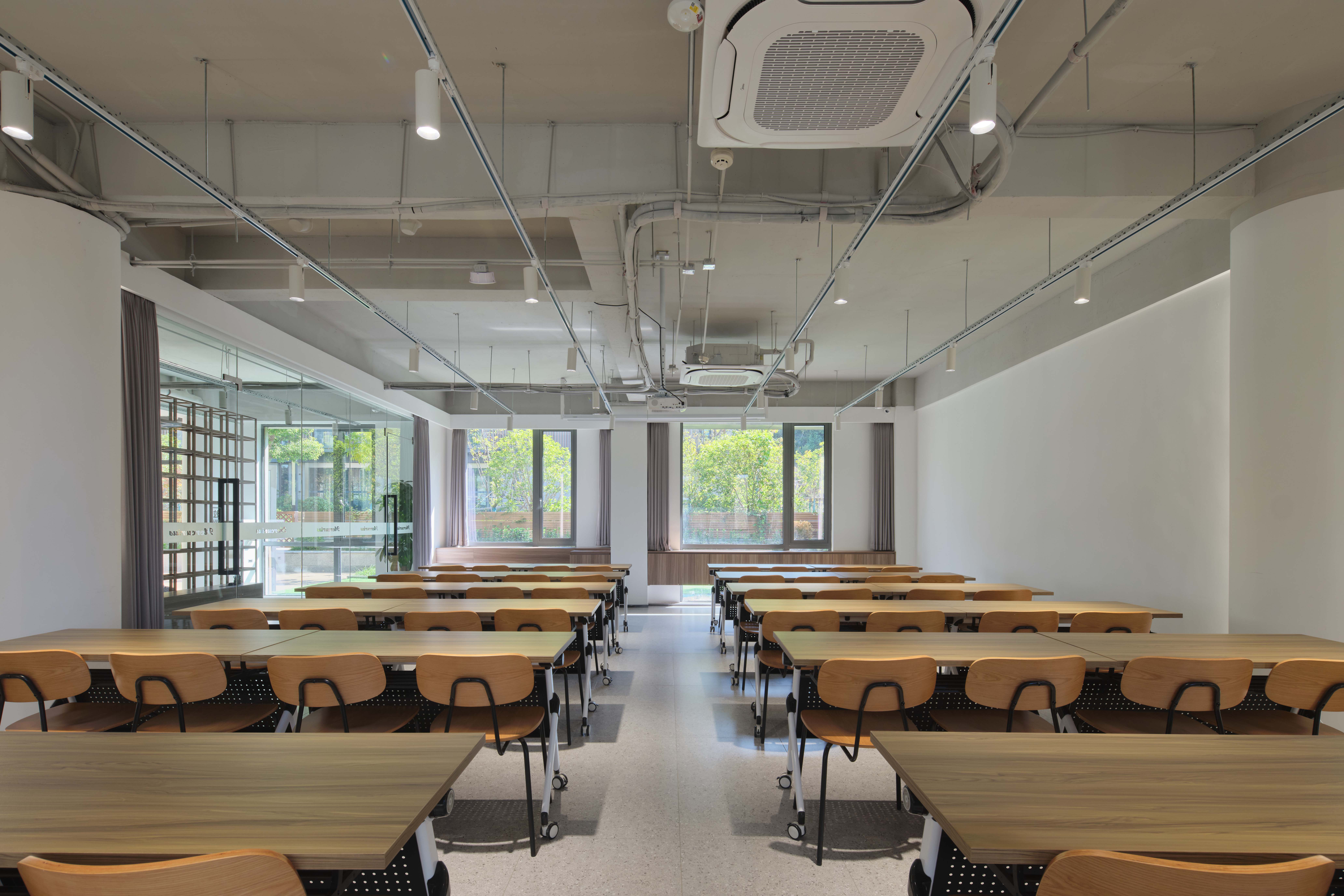 空间意境:风格创新就是我们没有做传统的教室,而是从心理角度出发,用不同的灯光造型色彩,让人在空间里找到自己内心的真正自我,解放自我。