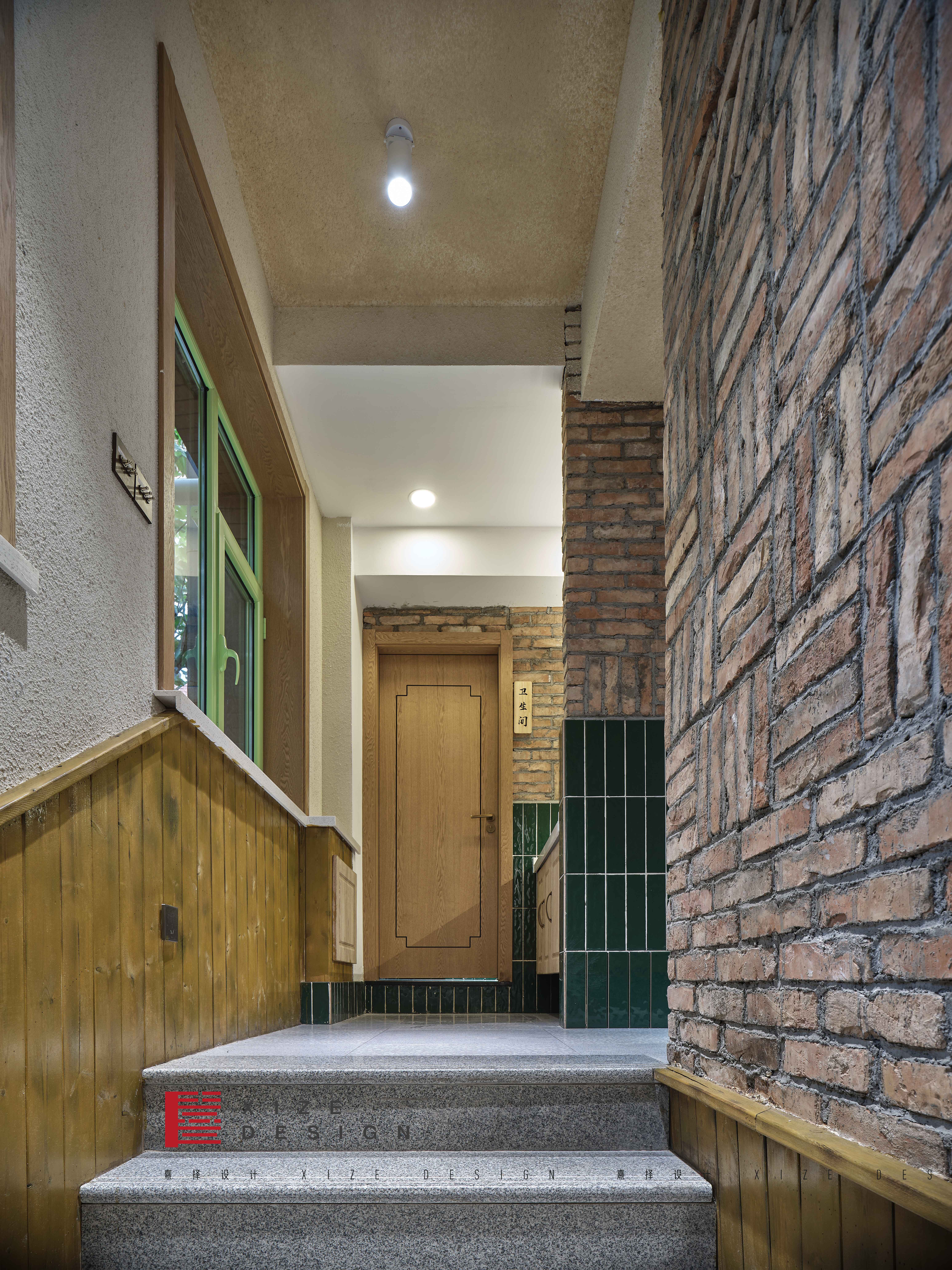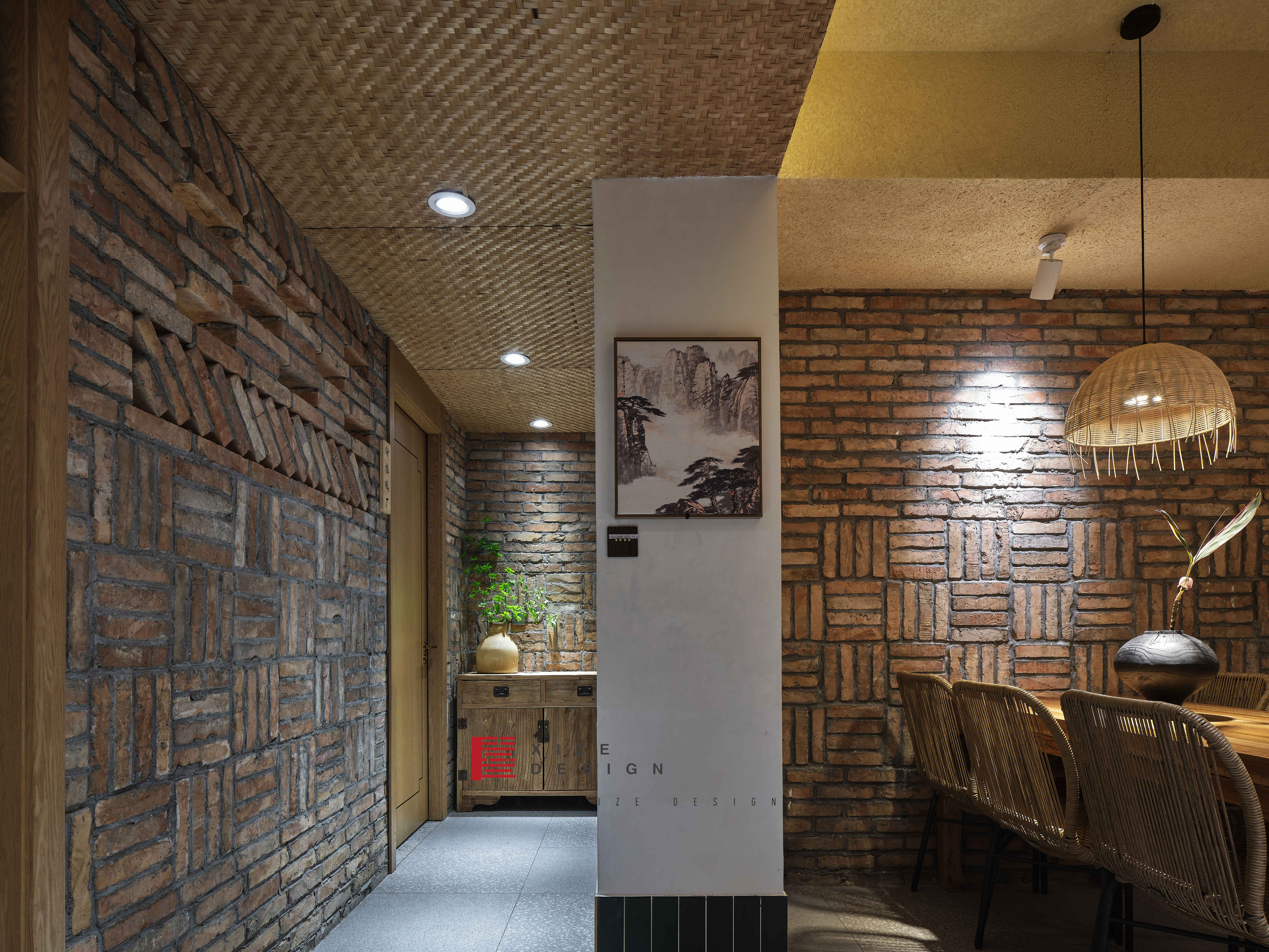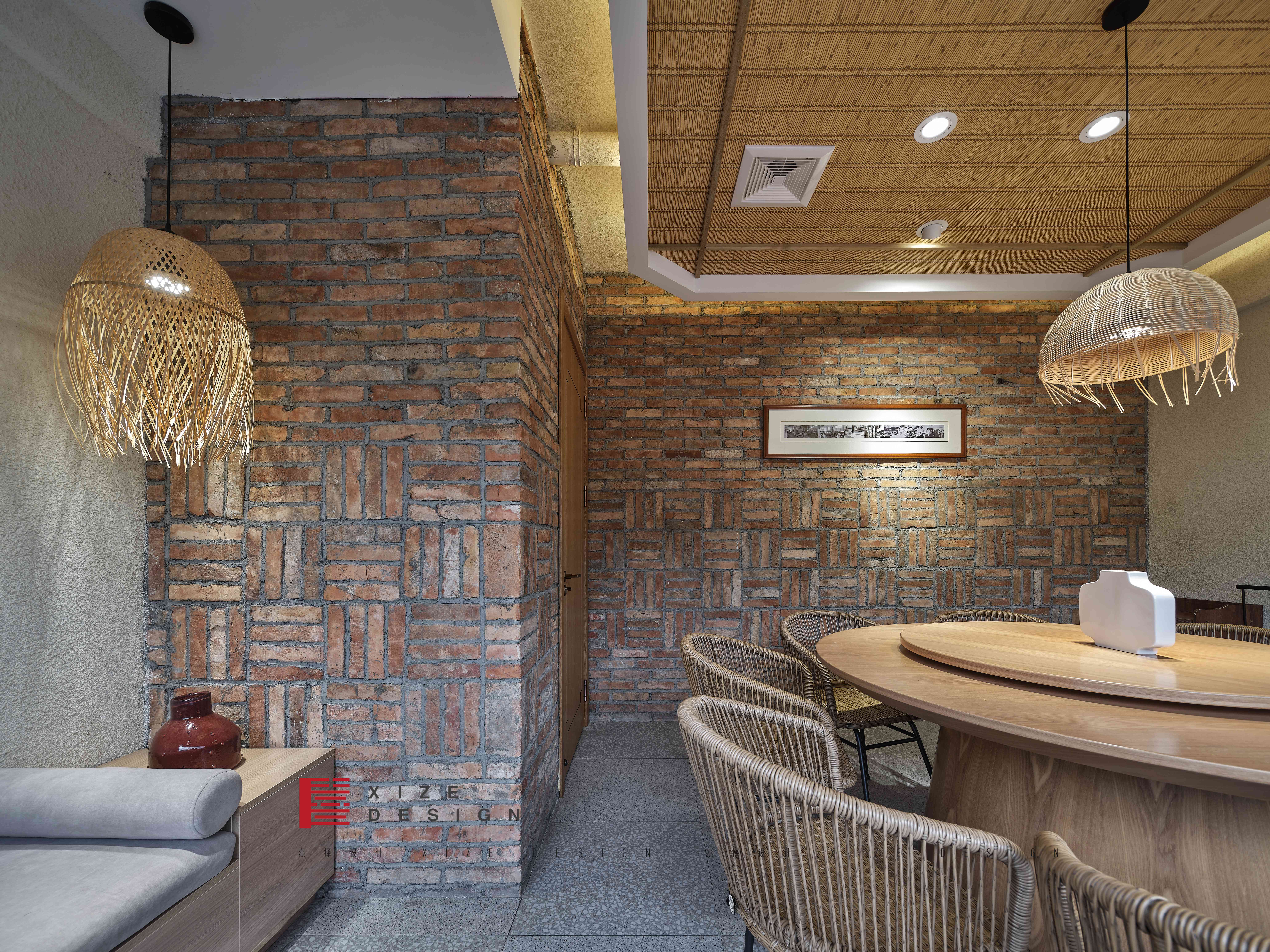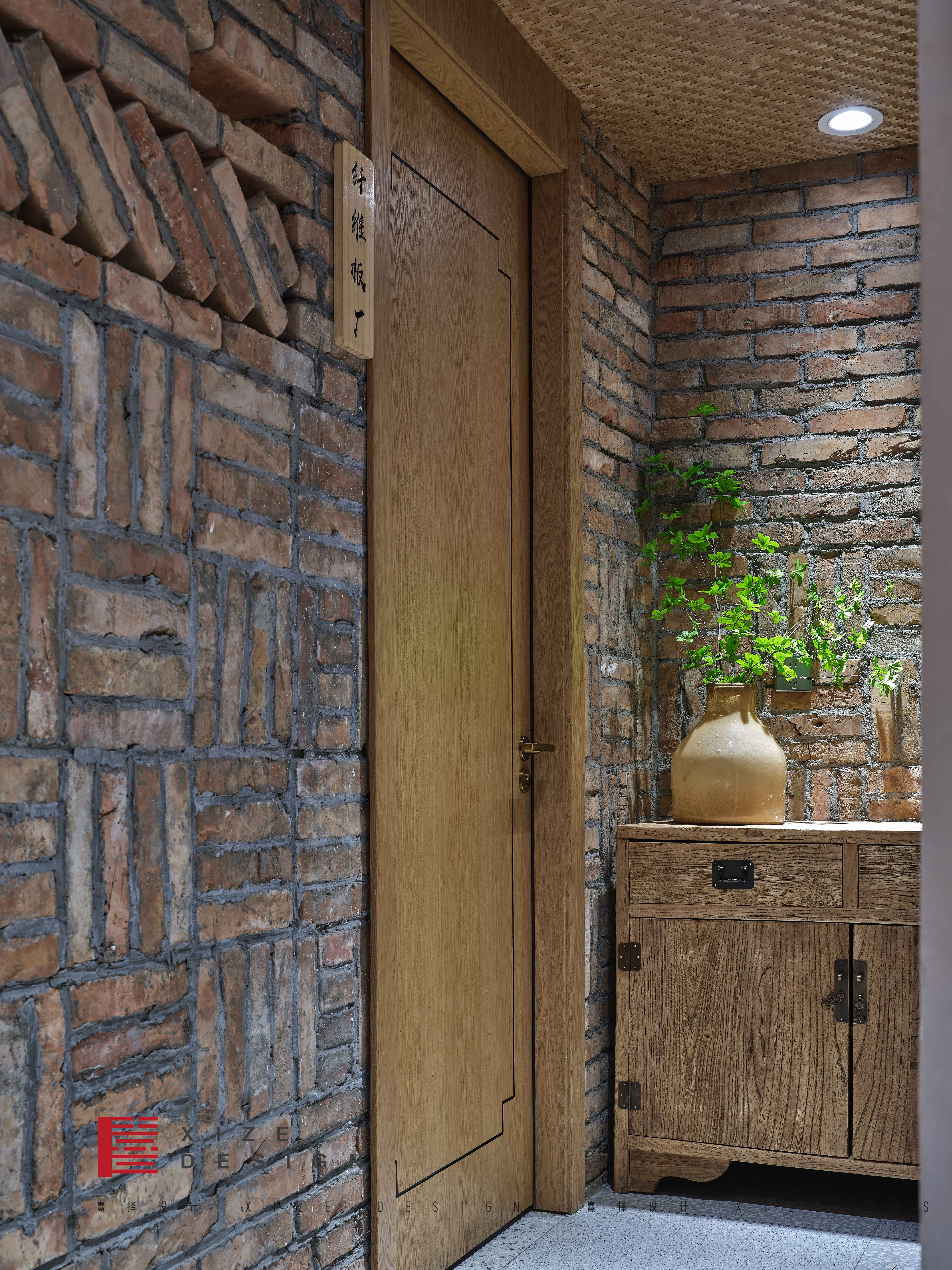 设计选材:空间整体简洁明亮,玻璃面、旧红砖、草席与木饰面的结合,使整个空间充满自然气息与岁月的痕迹。所用全部红砖都来自连湖农场的旧房拆除运送过来重新启用。也许当年的工匠已经逝去,风和天空任然在雕刻他。我们把他接来,没有那么多的浮华,竟可能展现岁月的质感,同时我们还争取到了没有装饰面的剩余空间。使一切事物变得十分地自然有机,反朴归真、紧凑温情。