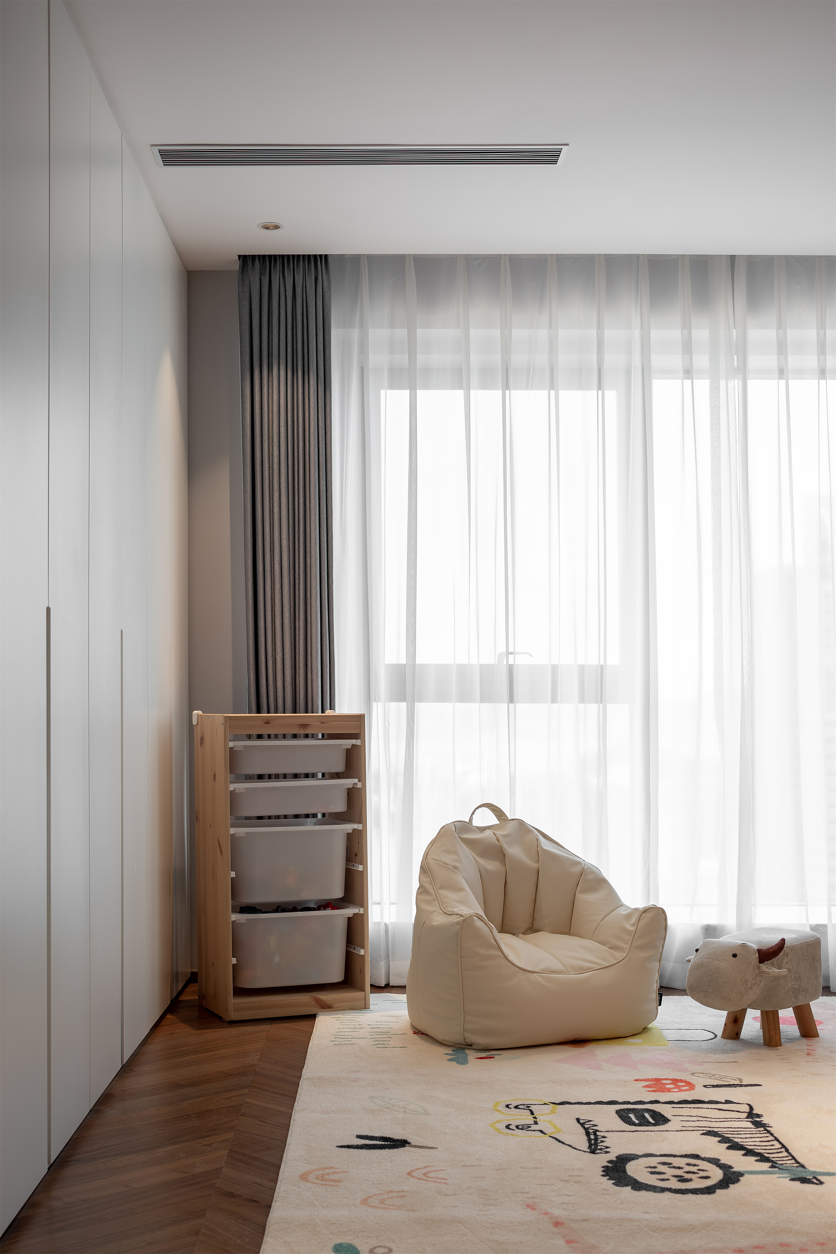 用户体验:虽然是年轻的潮玩空间,但是极简的黑白灰也符合长辈的审美。特别还有给小朋友足够的独立空间,业主全家都很满意。