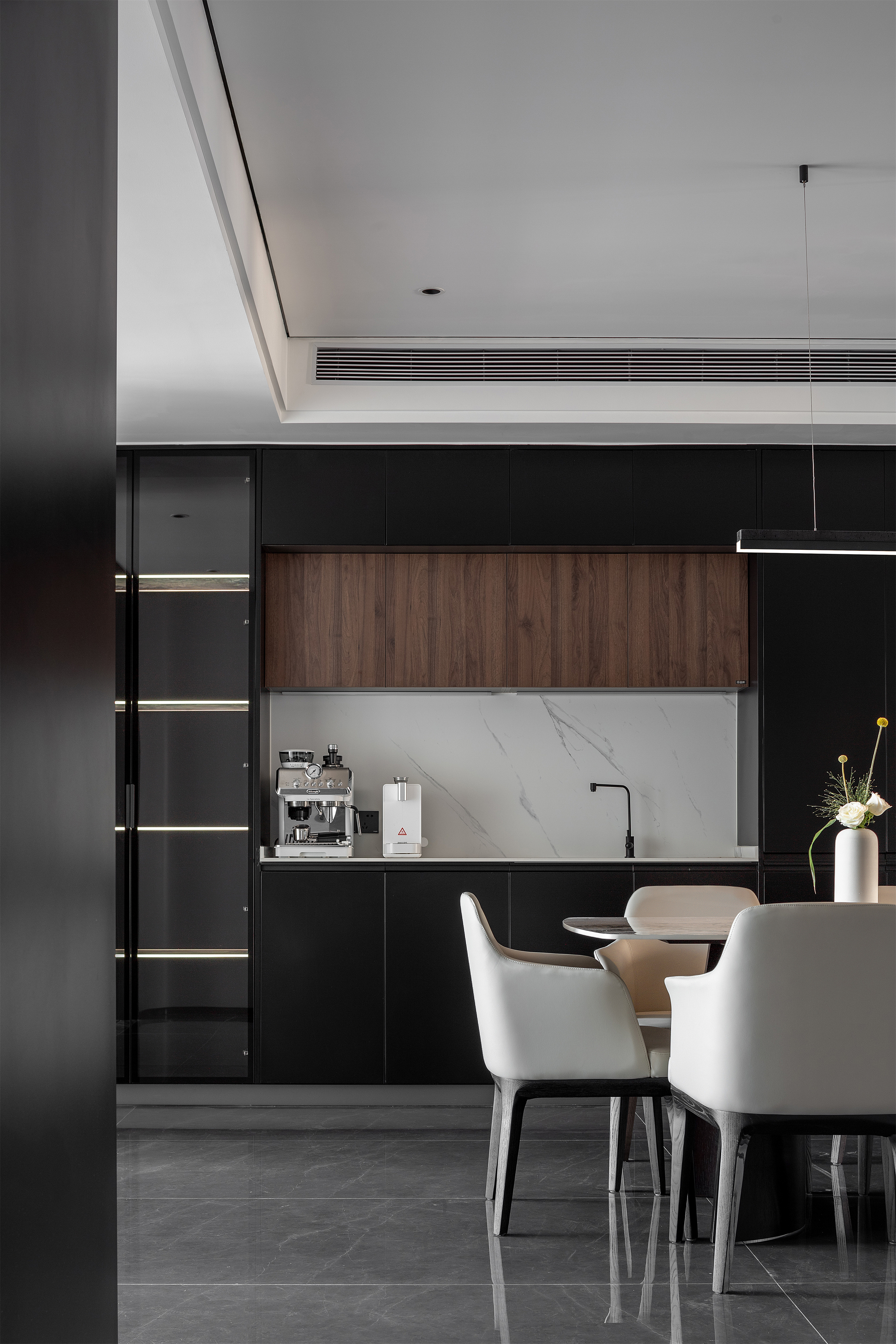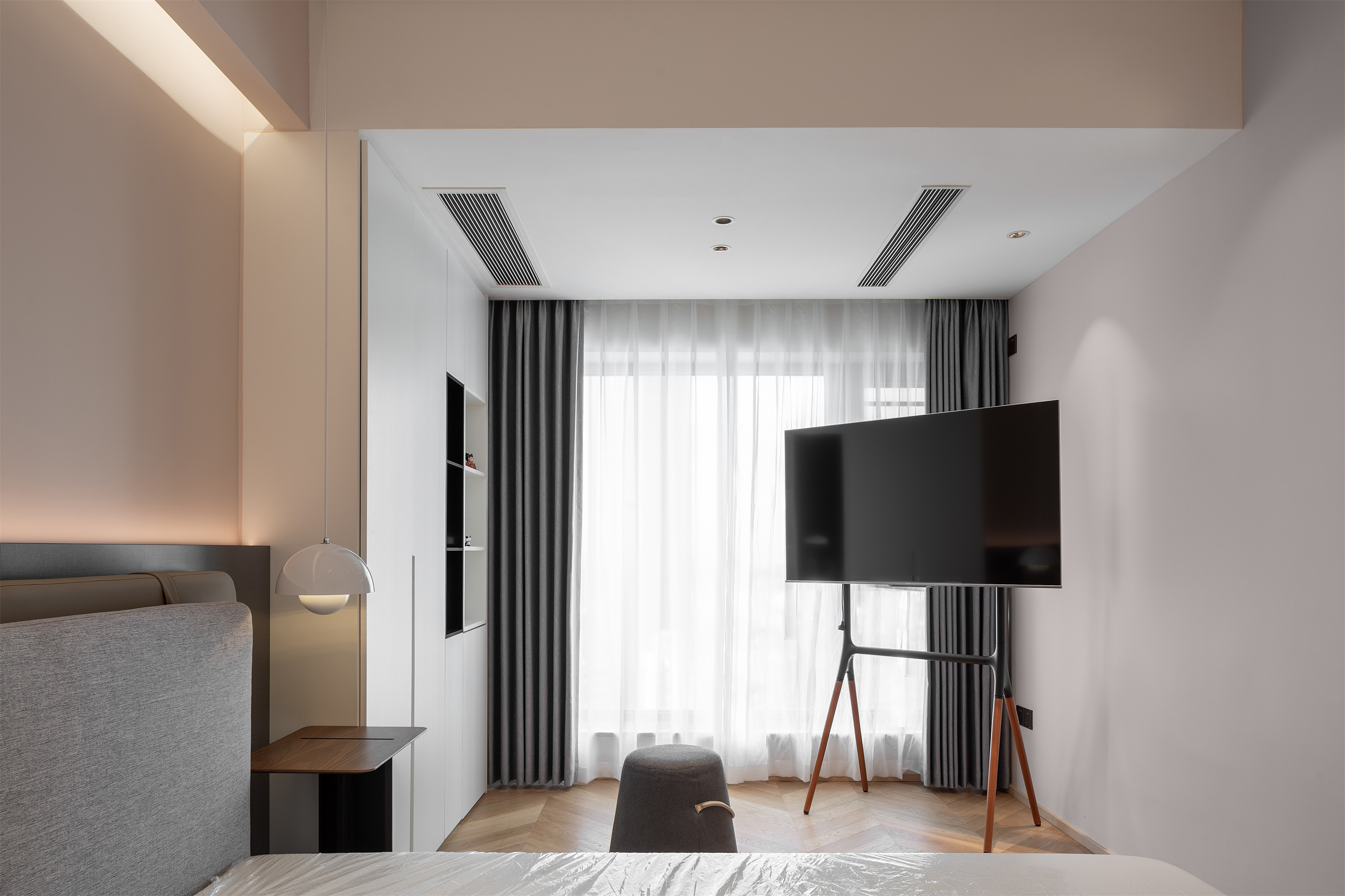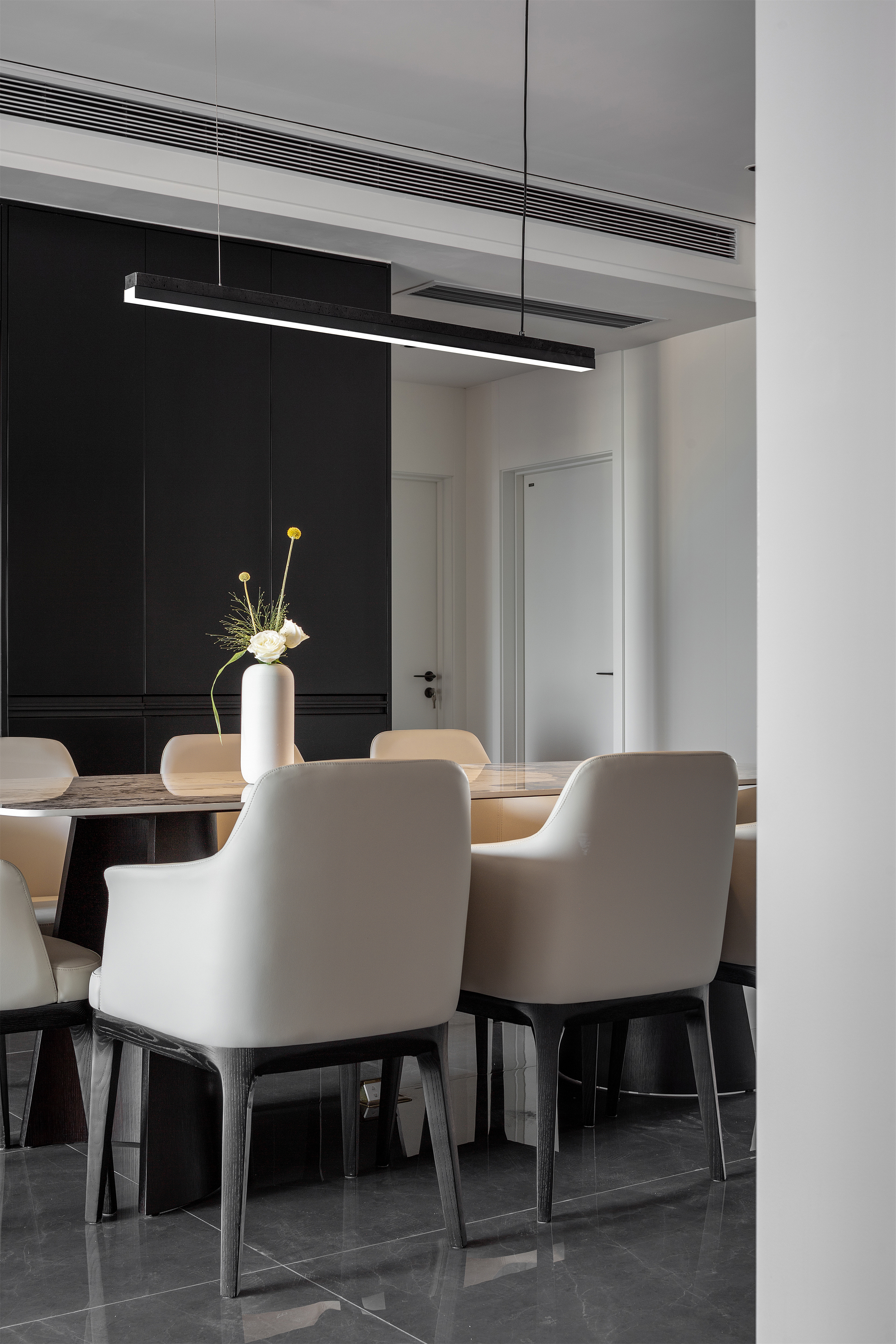 客、餐厅之间“L”形转承相连,及卧室、书房的并置规划,将储物间嵌入边角区域,达到便捷性与使用舒适度的统筹考量。 -