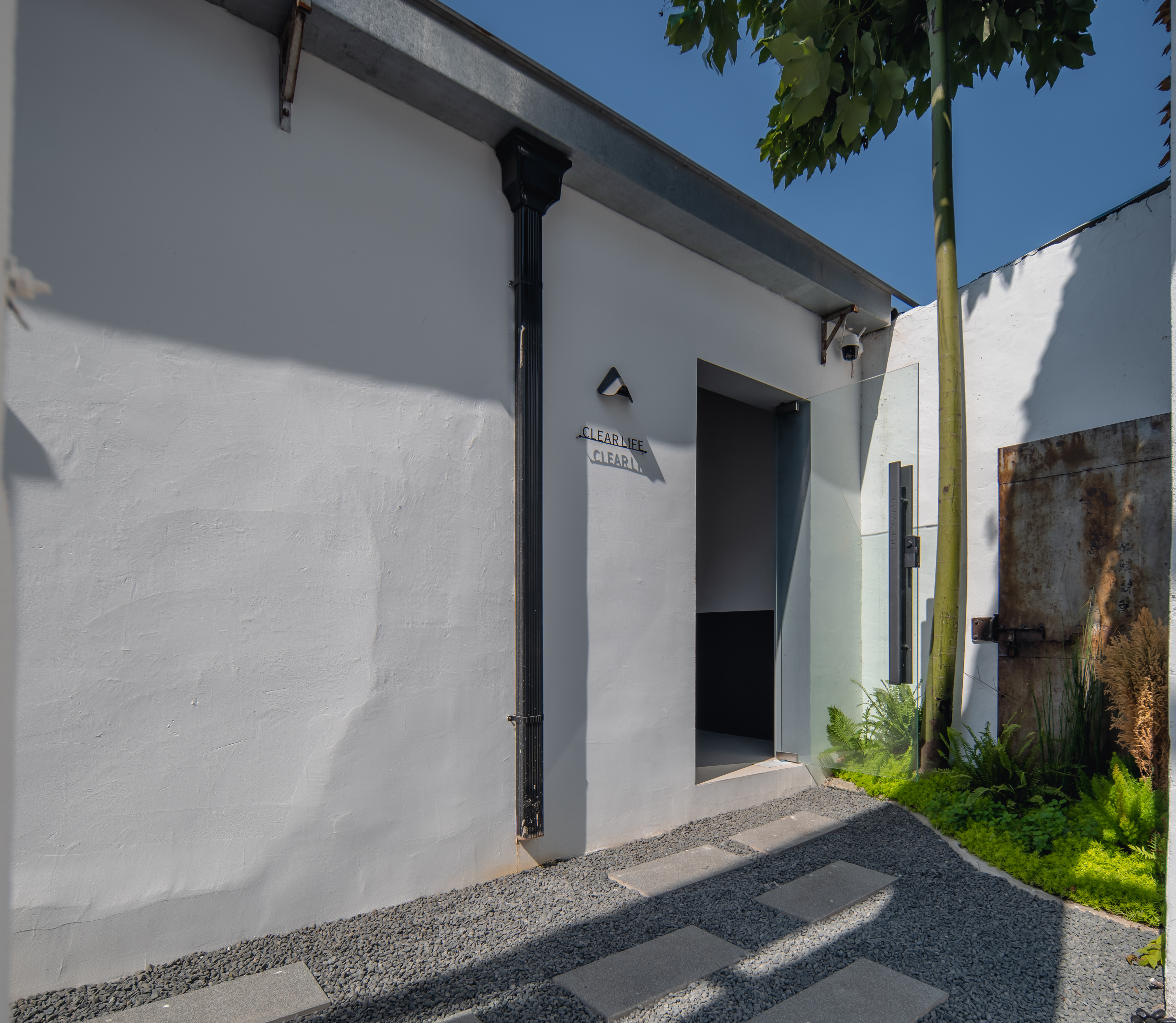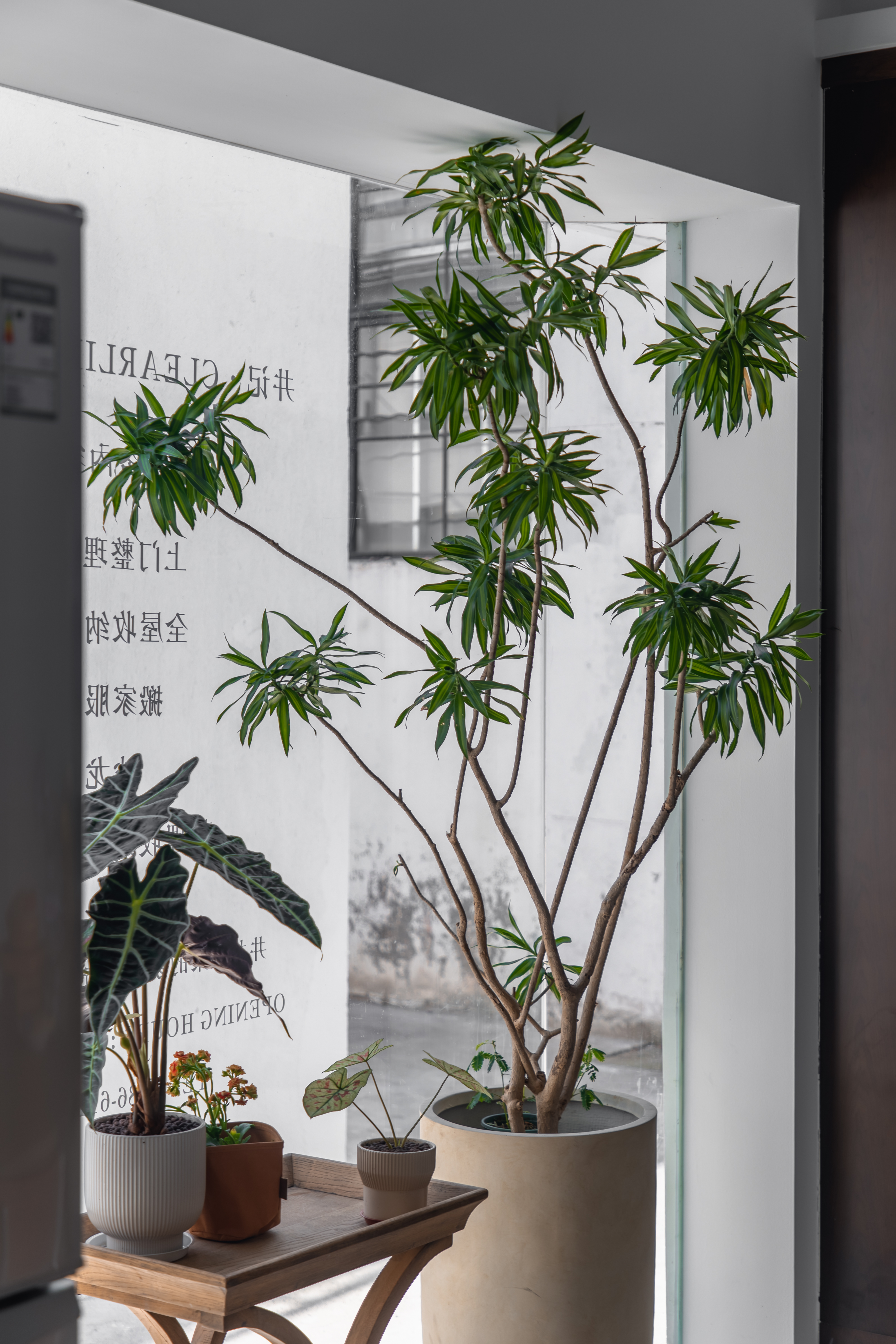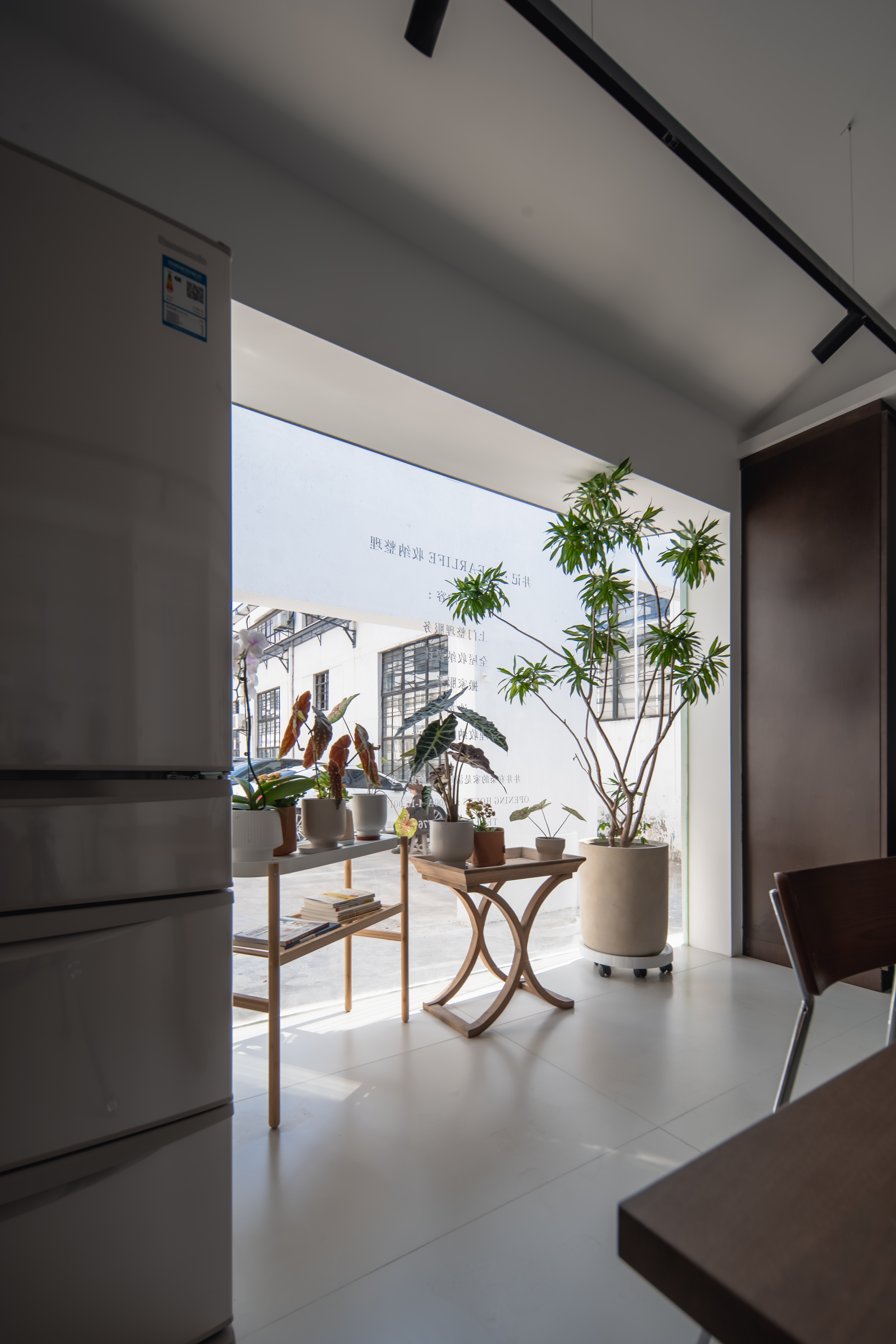 设计选材:建筑本身有她想述说的故事,高大笔直的树,铁锈的门,旧的绕线圈。环境更为开阔,有一颗长的很好的树,那天天气晴朗。 停车场就在门口,方便客户。