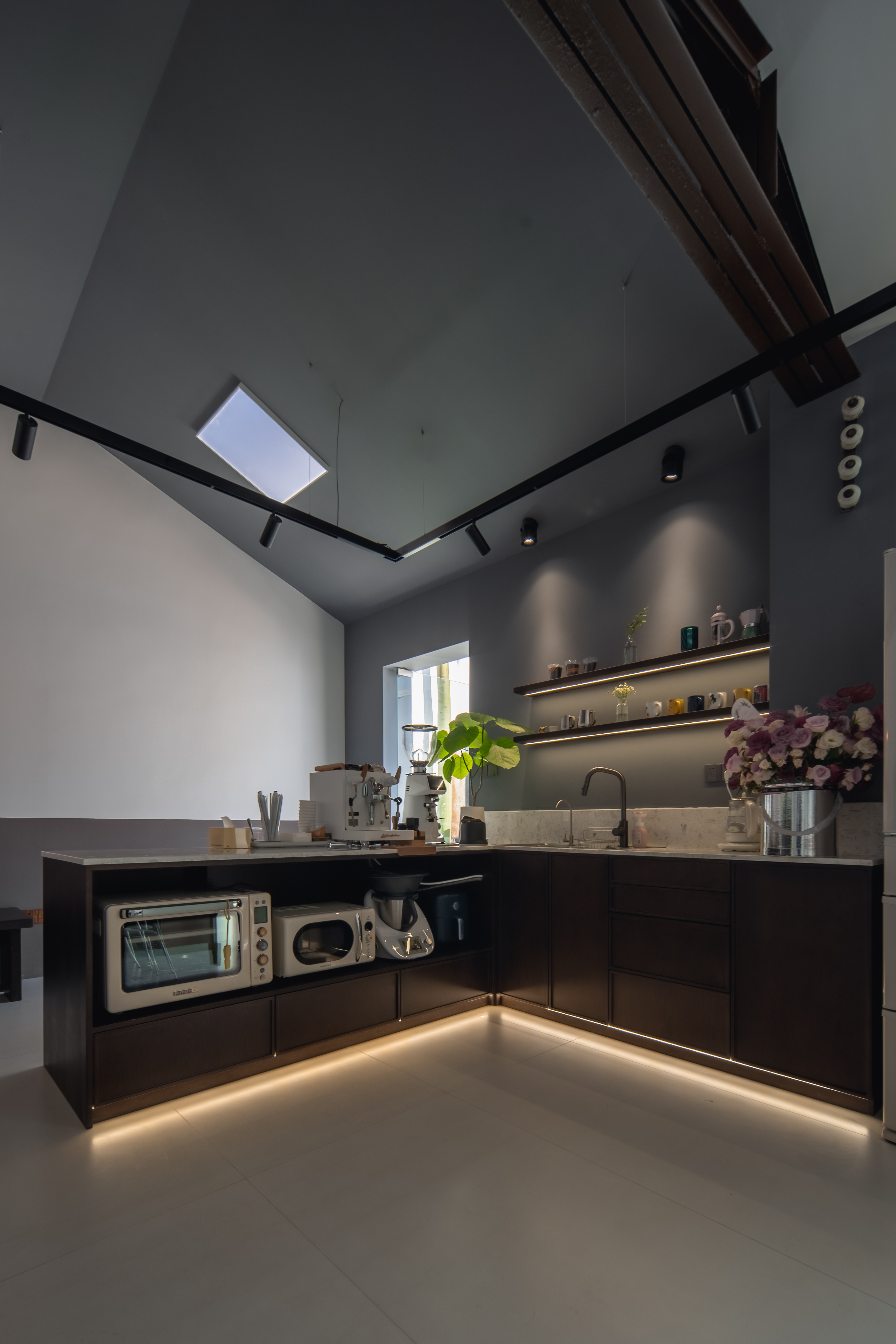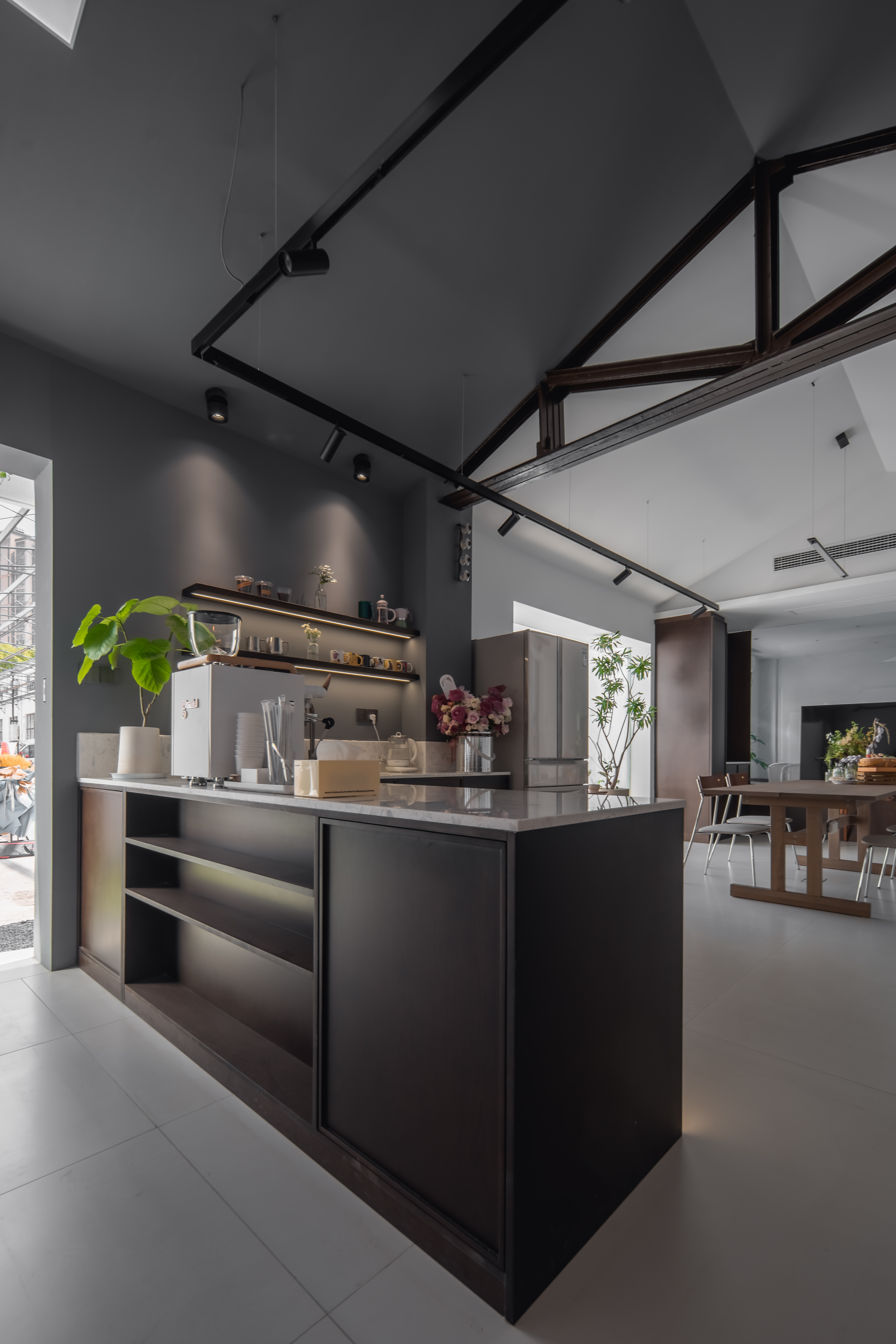 空间布局:整个布局,模拟了家庭场景,厨房,挂墙式衣柜,也兼具了办公室的培训和办公功能,还卖咖啡哦,味道很不错。