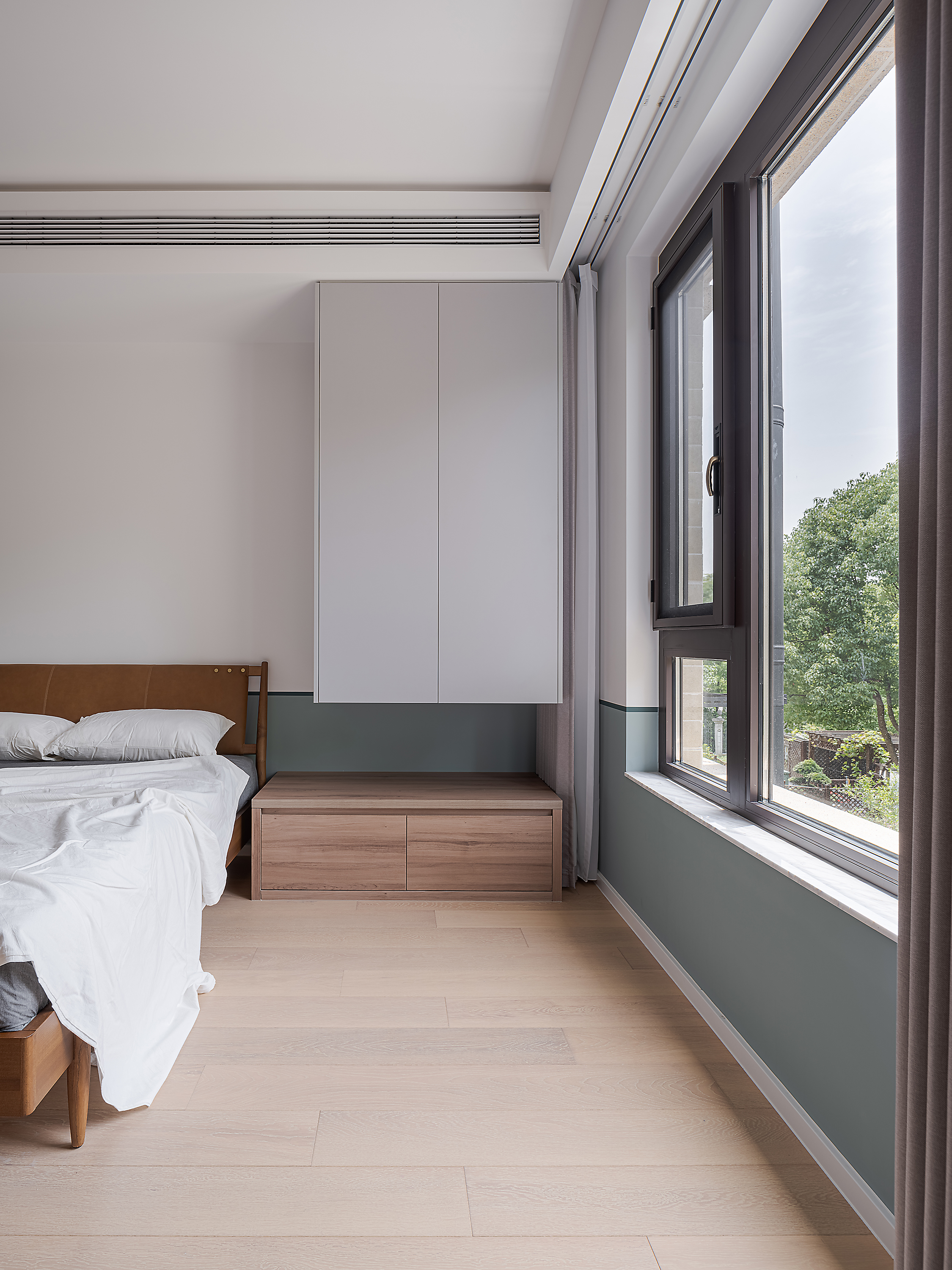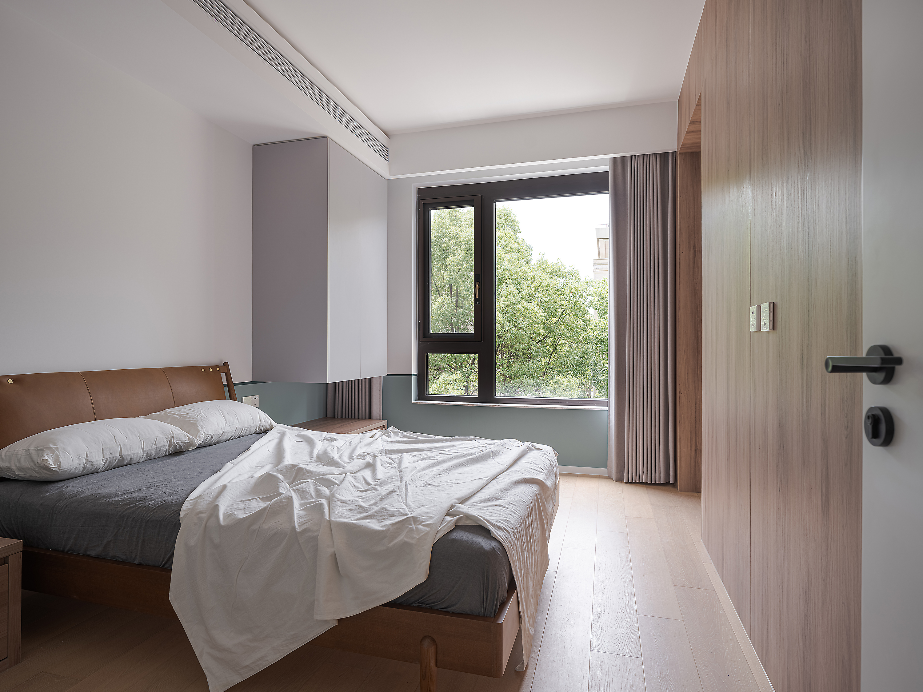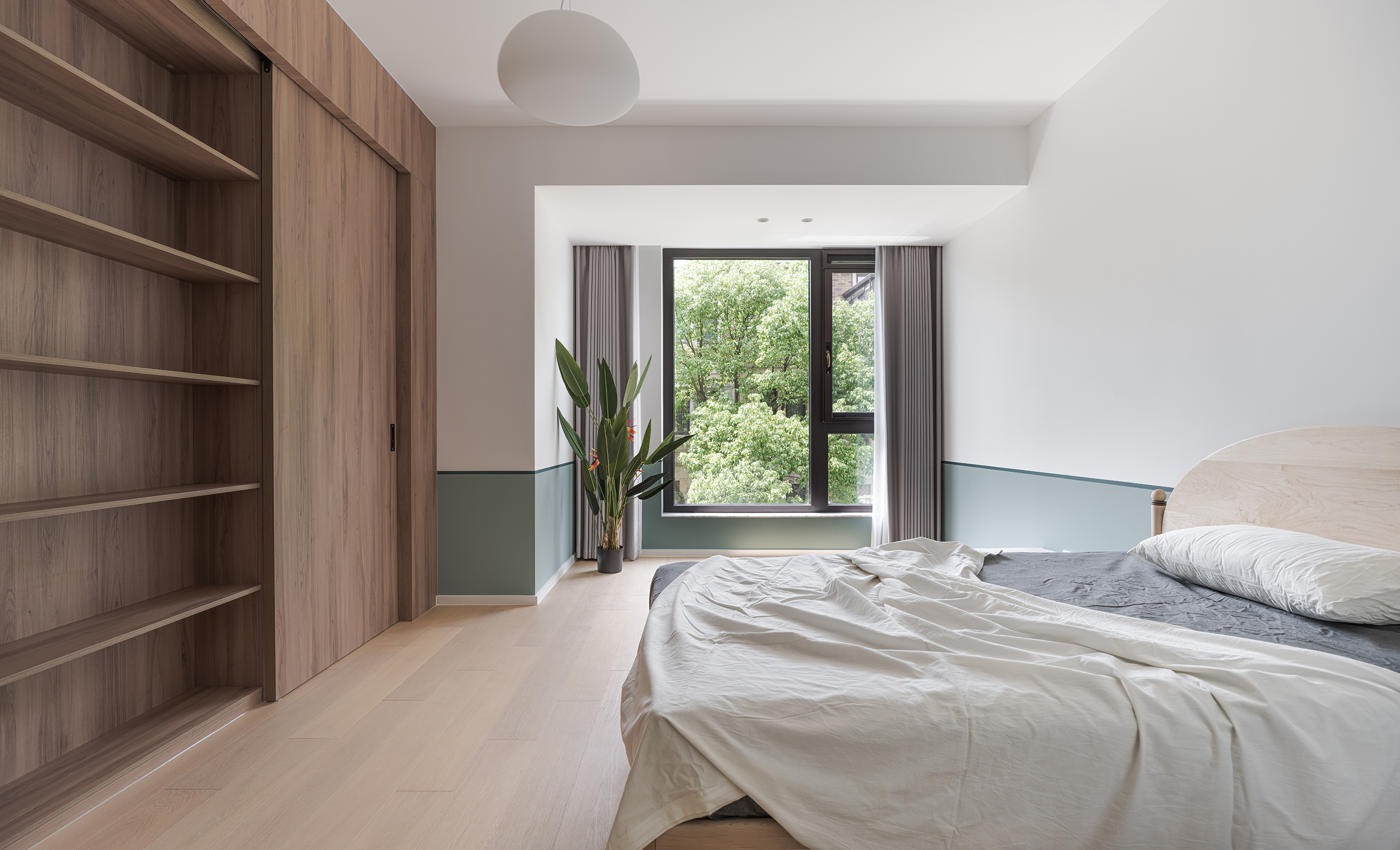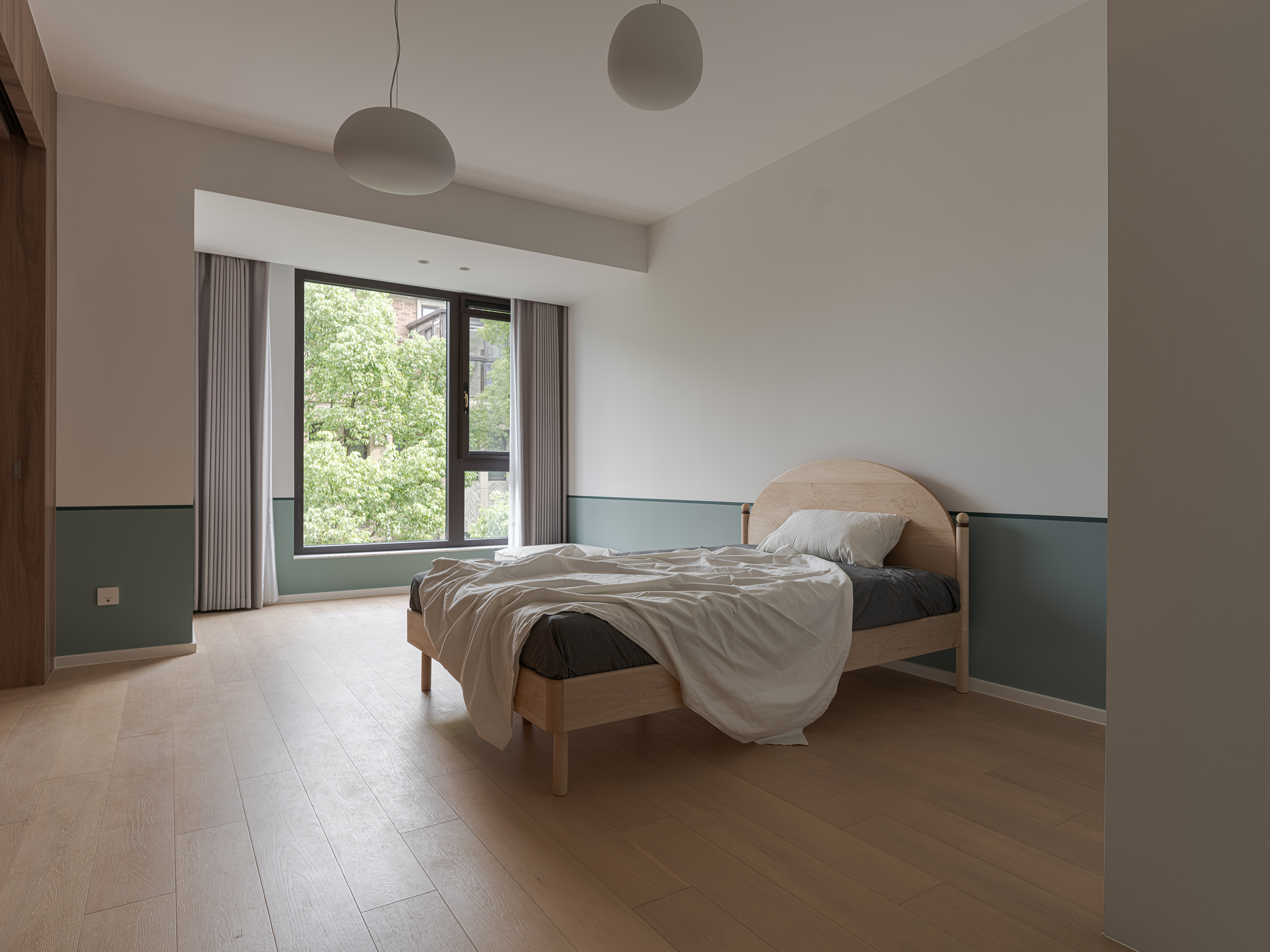 3. 把长辈房和儿童房放在一起,用两扇移门隔开,满足当下长辈照顾小孩的需求,也满足了孩子长大后,长辈搬离,使两个房间作为一个套房使用的功能。