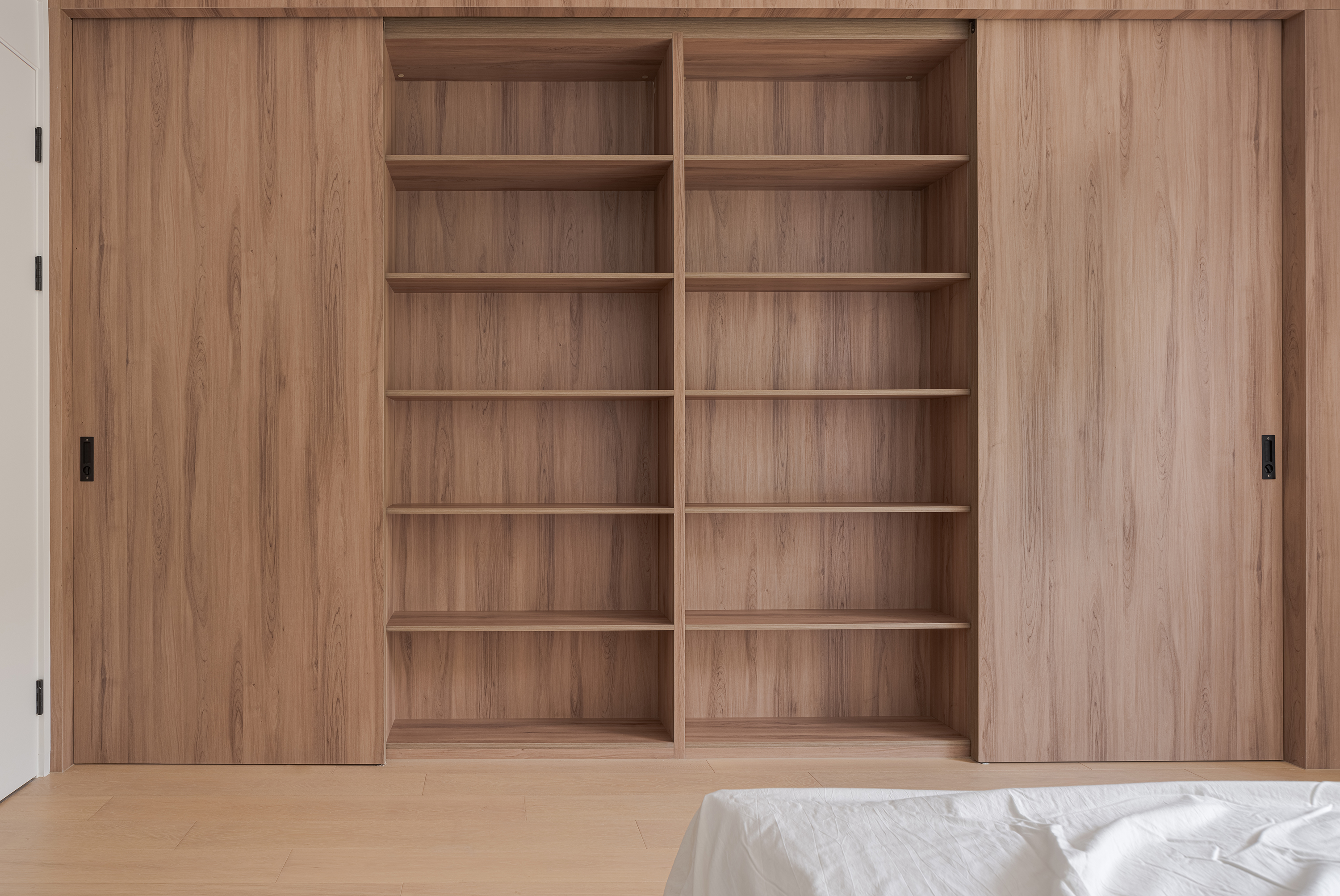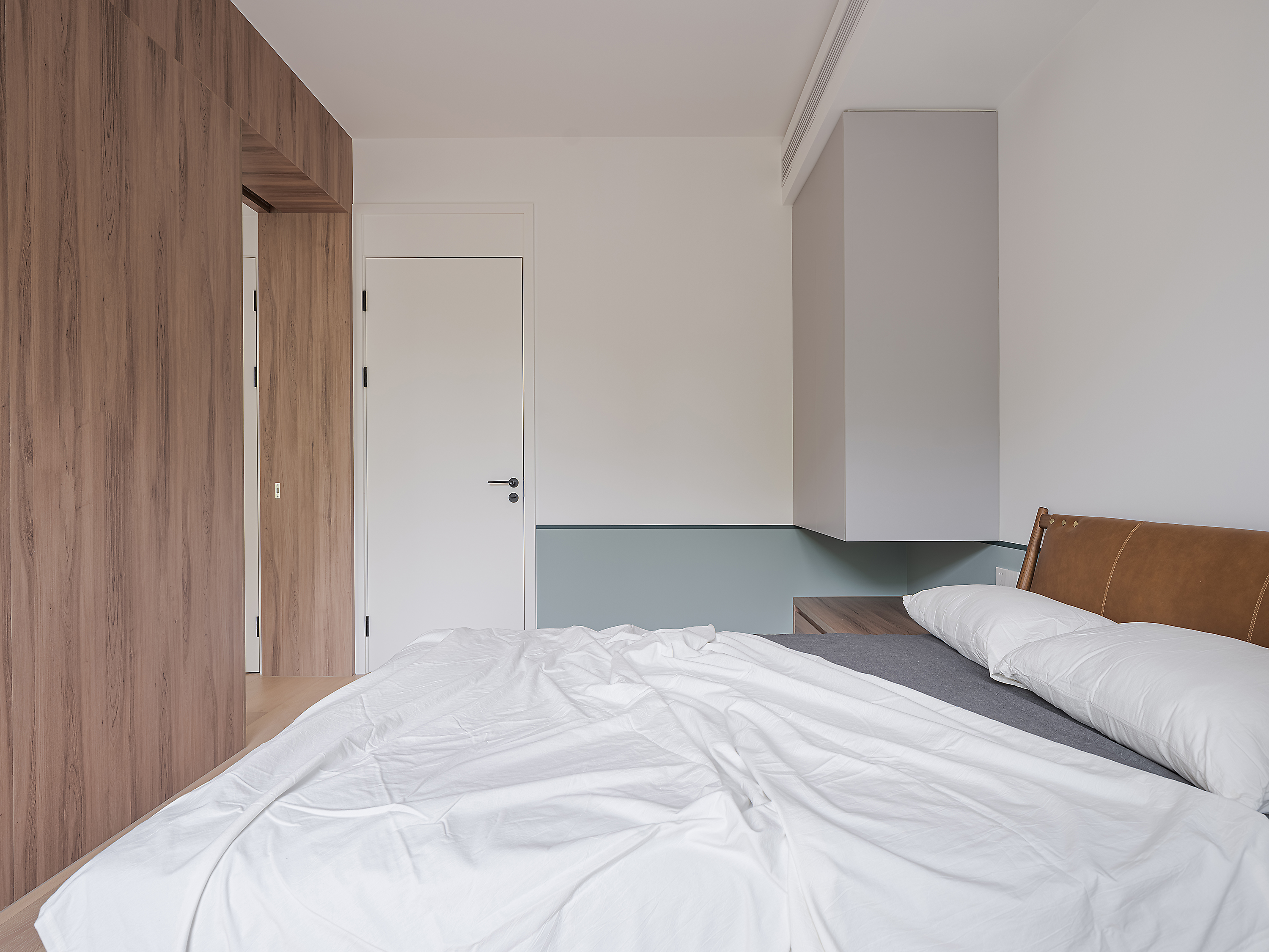 2. 长辈是暂时来帮忙照顾小孩,当下考虑照顾的便利性,长期考虑空间的利用率。我们用移门、回形动线,可移动家具等让空间功能可以灵活多变。