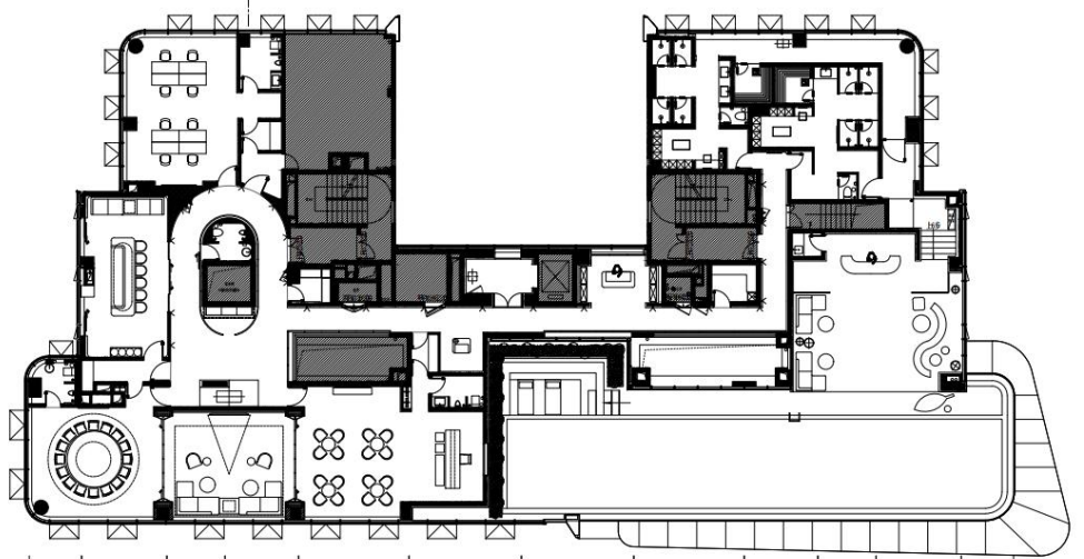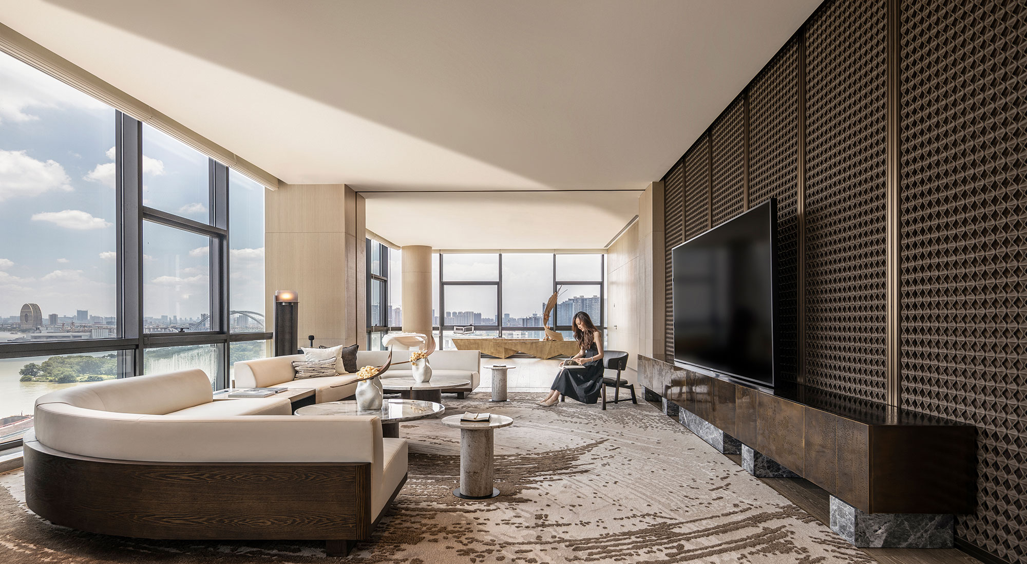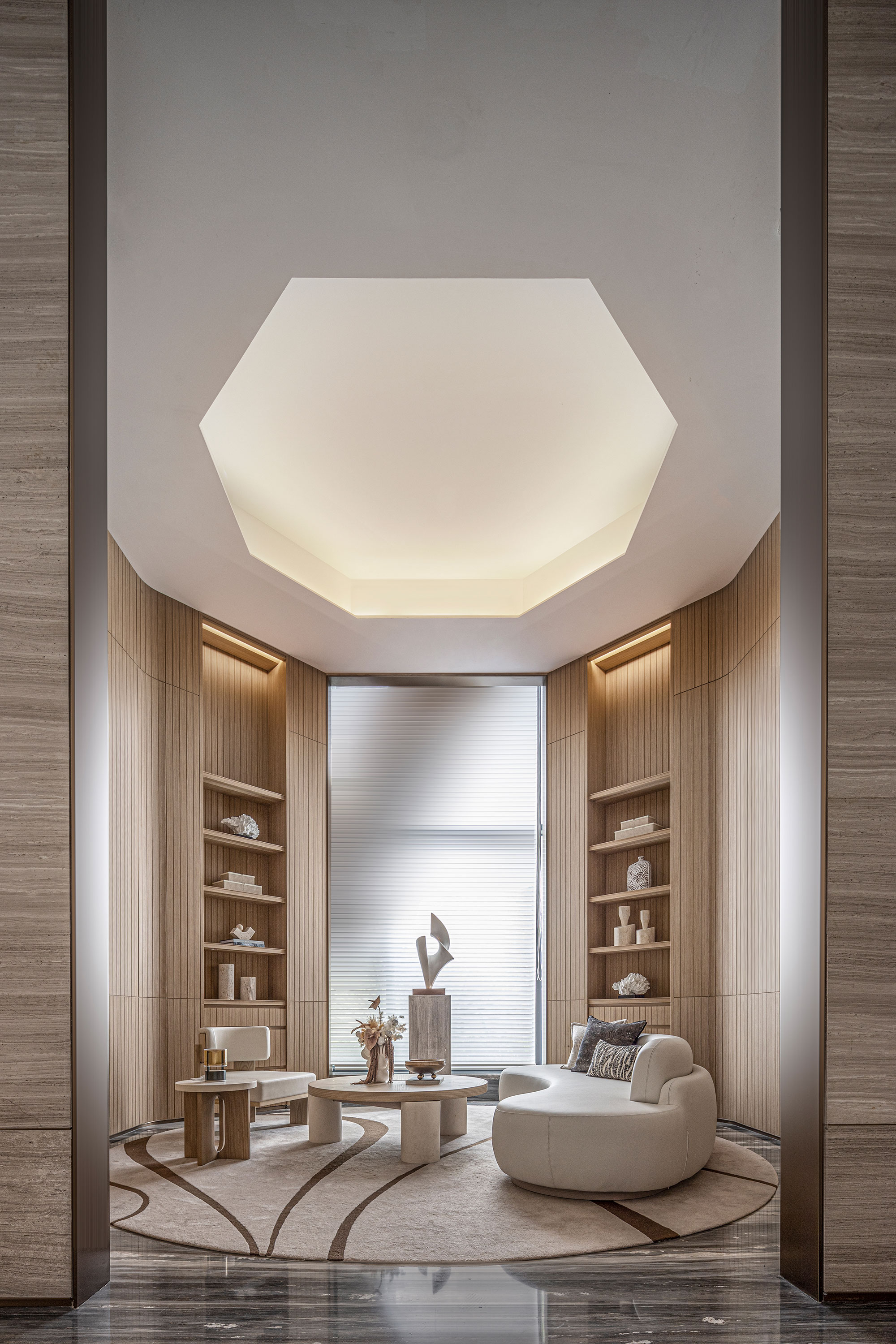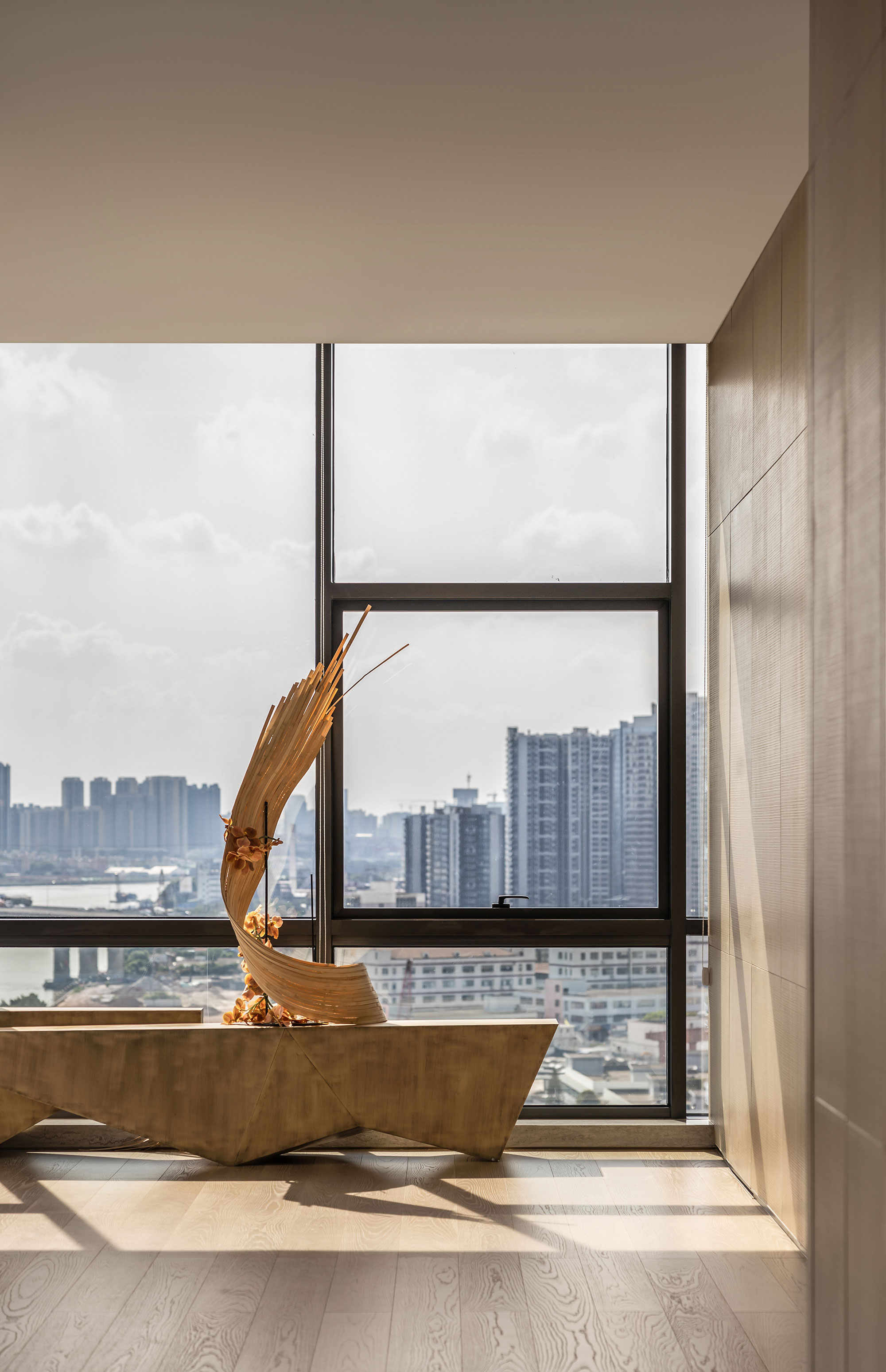 空间布局:在窗外的无界景致与当代空间艺术的相映中,藏纳的尽是顶流圈层的审美品味与先锋意识。游走于其间,无论高低尺度、纯木材质与弧线造型的精致布局,抑或细节处写意层层碧波的地毯、蜿蜒环绕的竹编装置,皆以尊贵轻奢的仪式感,投射出别致的国际化都市格调。