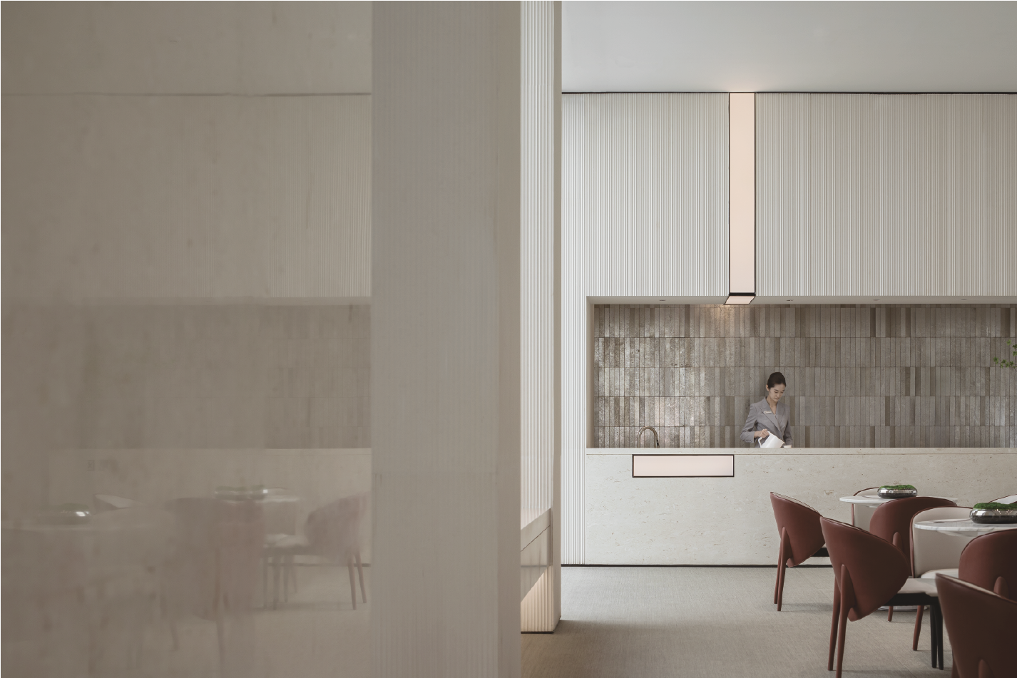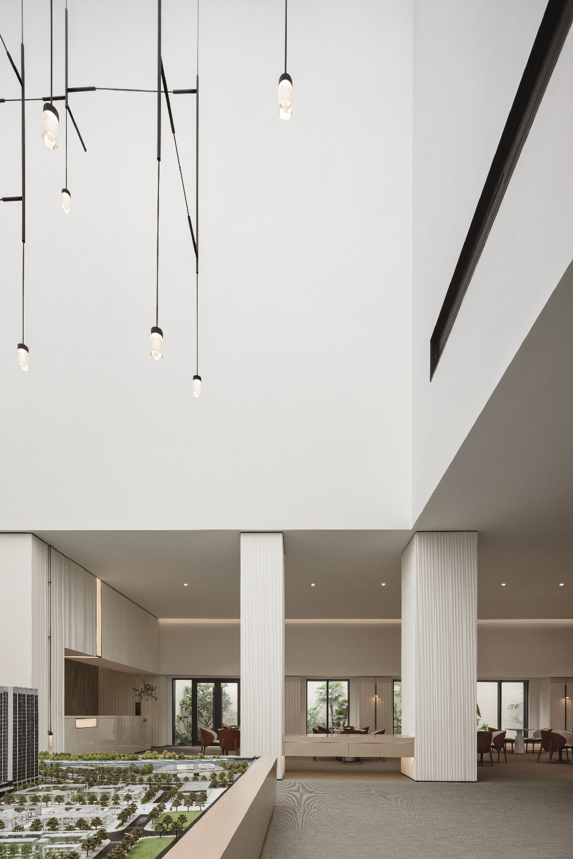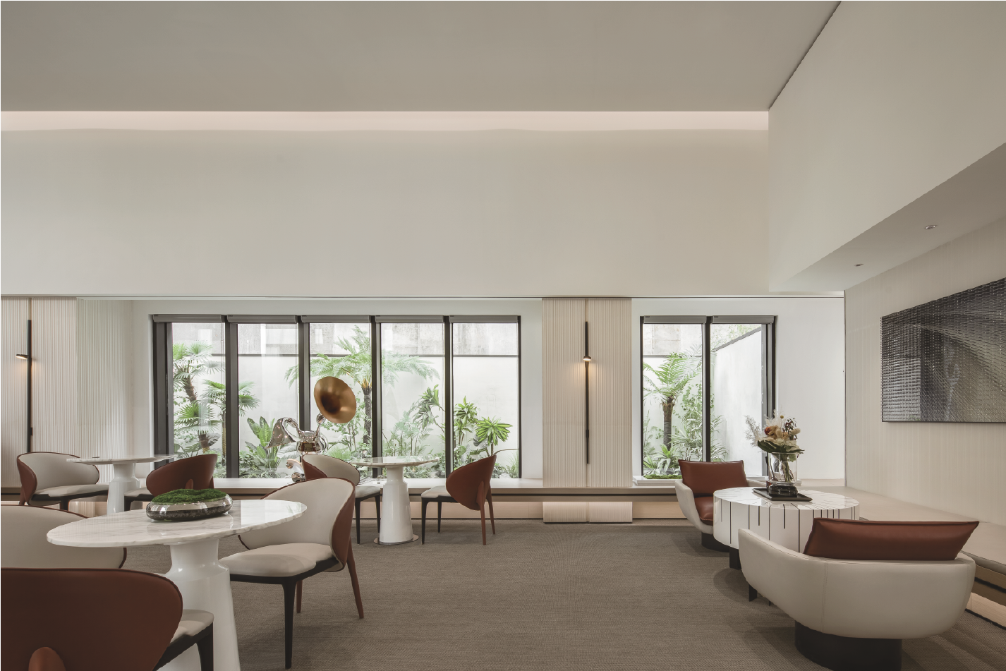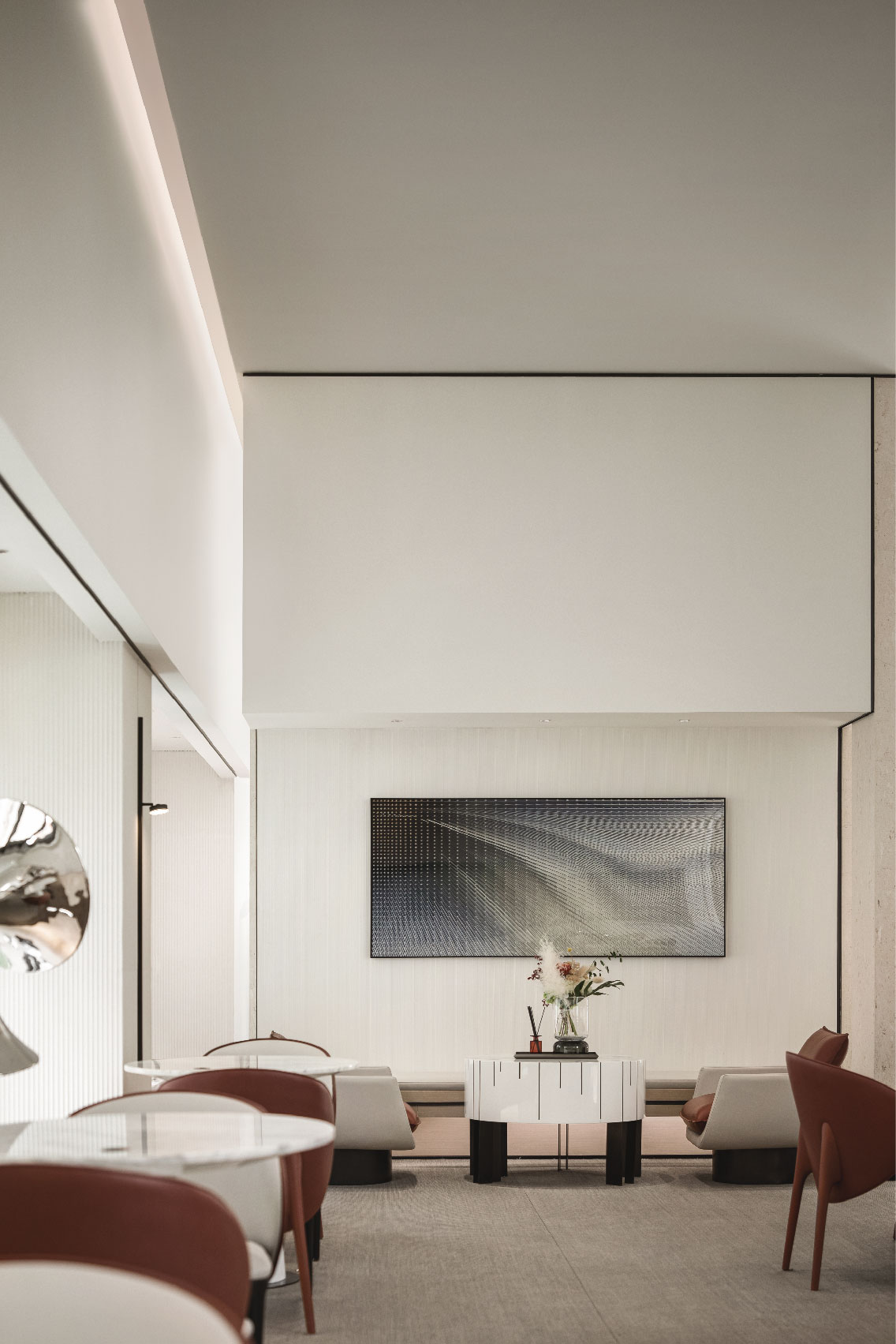 当视角从大场景转入特定的空间场域时,设计师对于空间的构造,开始有了陈设与色调、块面与细节与的变化。“空间的最终落脚点是大众的生活方式,顺延当代都市美学的脉络,洽谈空间所延伸的正是一种艺术内涵与品质的彰显。”