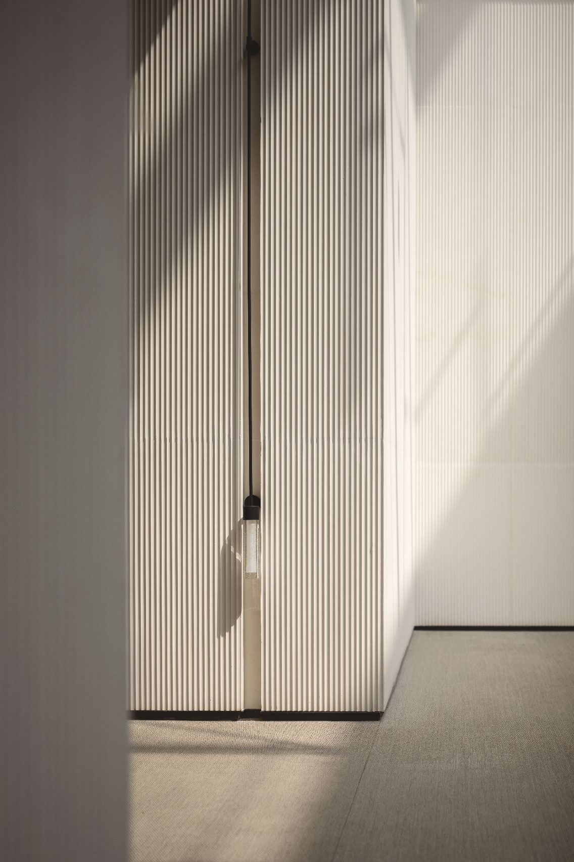 设计选材:考量到材质的呈现,设计师选用了编织地板与富有肌理感的拉槽石材。“在空间骨骼的搭建中,材质的精度是我们于其中反复衡量的一个关键。我们希望空间不仅有艺术化的观感,亦有细节处的品味。”