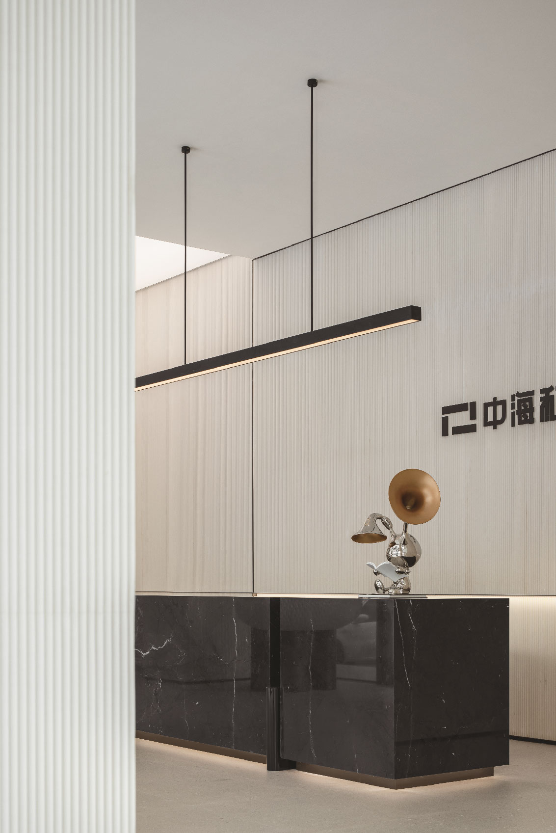 项目定位:在极简主义的前提下,设计如何在一定程度的弱化与克制中,构建空间骨骼,从而凸显恰到好处的艺术氛围?在柘壹设计看来,以点线面的组合方式为切入点,去界定空间秩序,描摹内在的节奏与艺术感,正是一种解题思路。