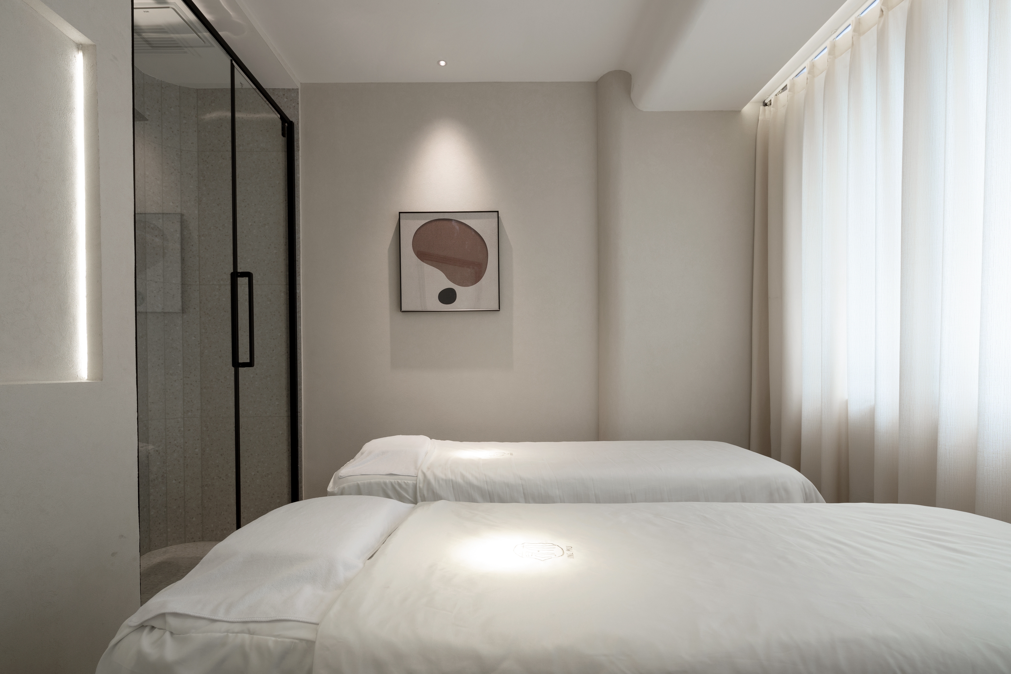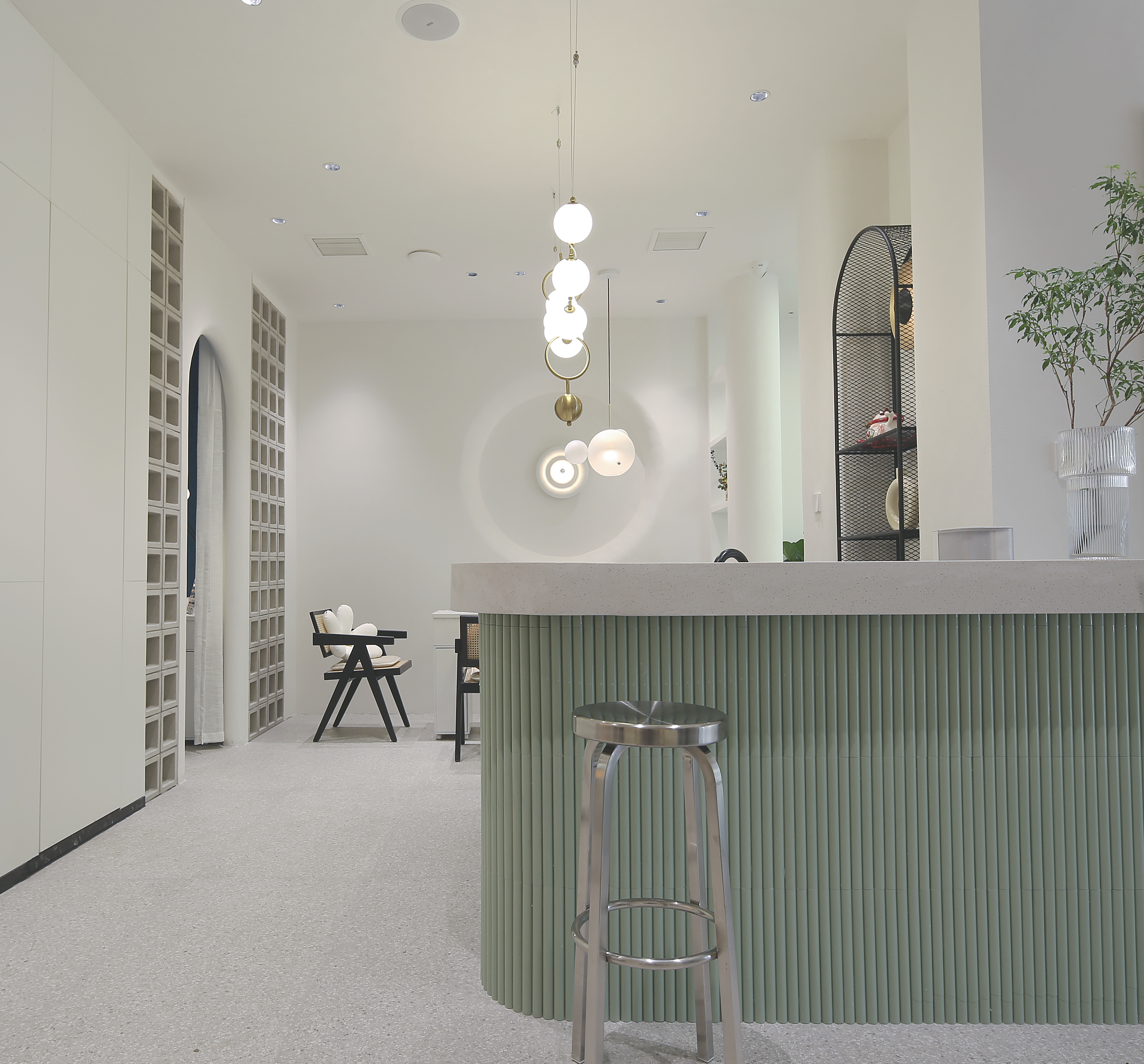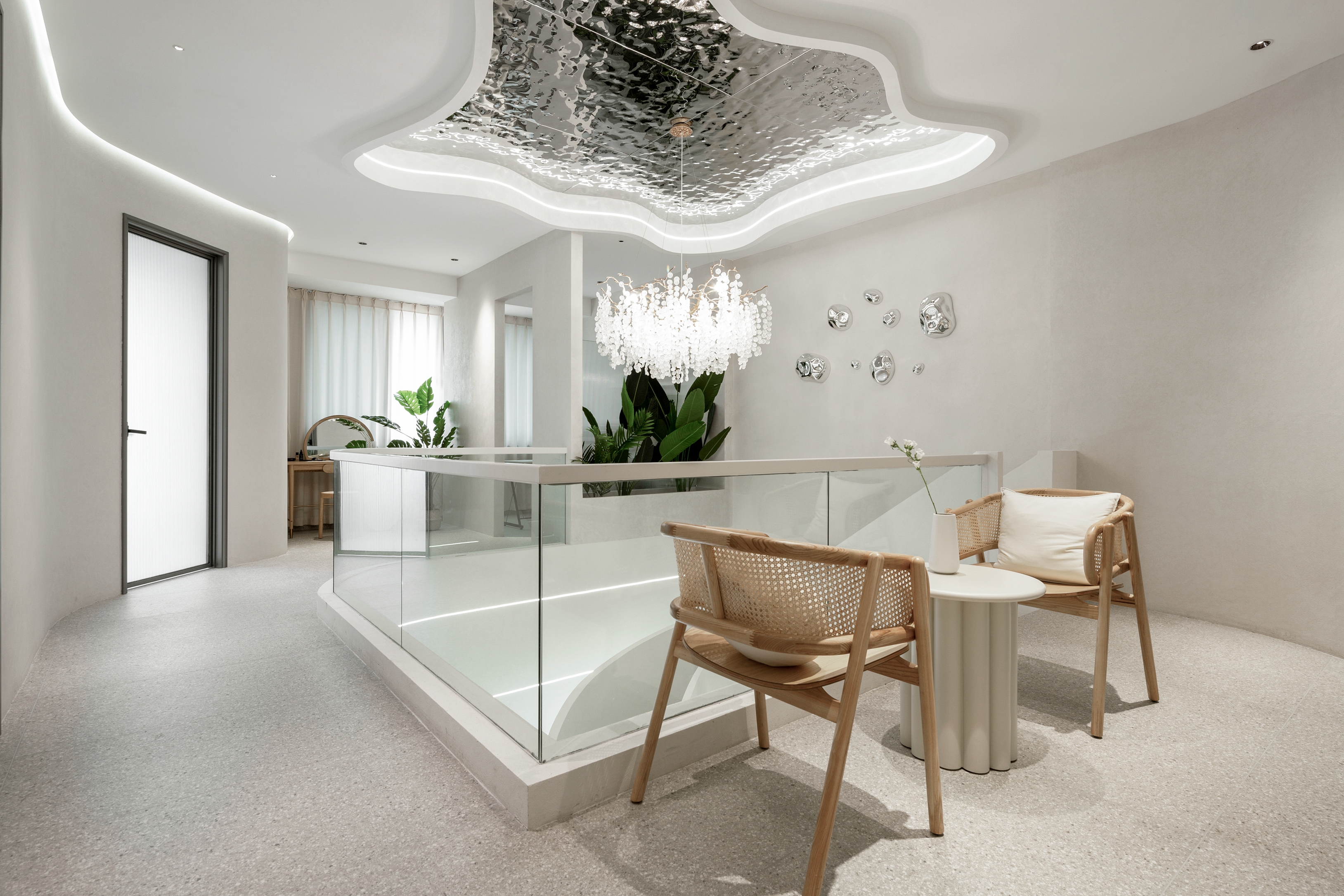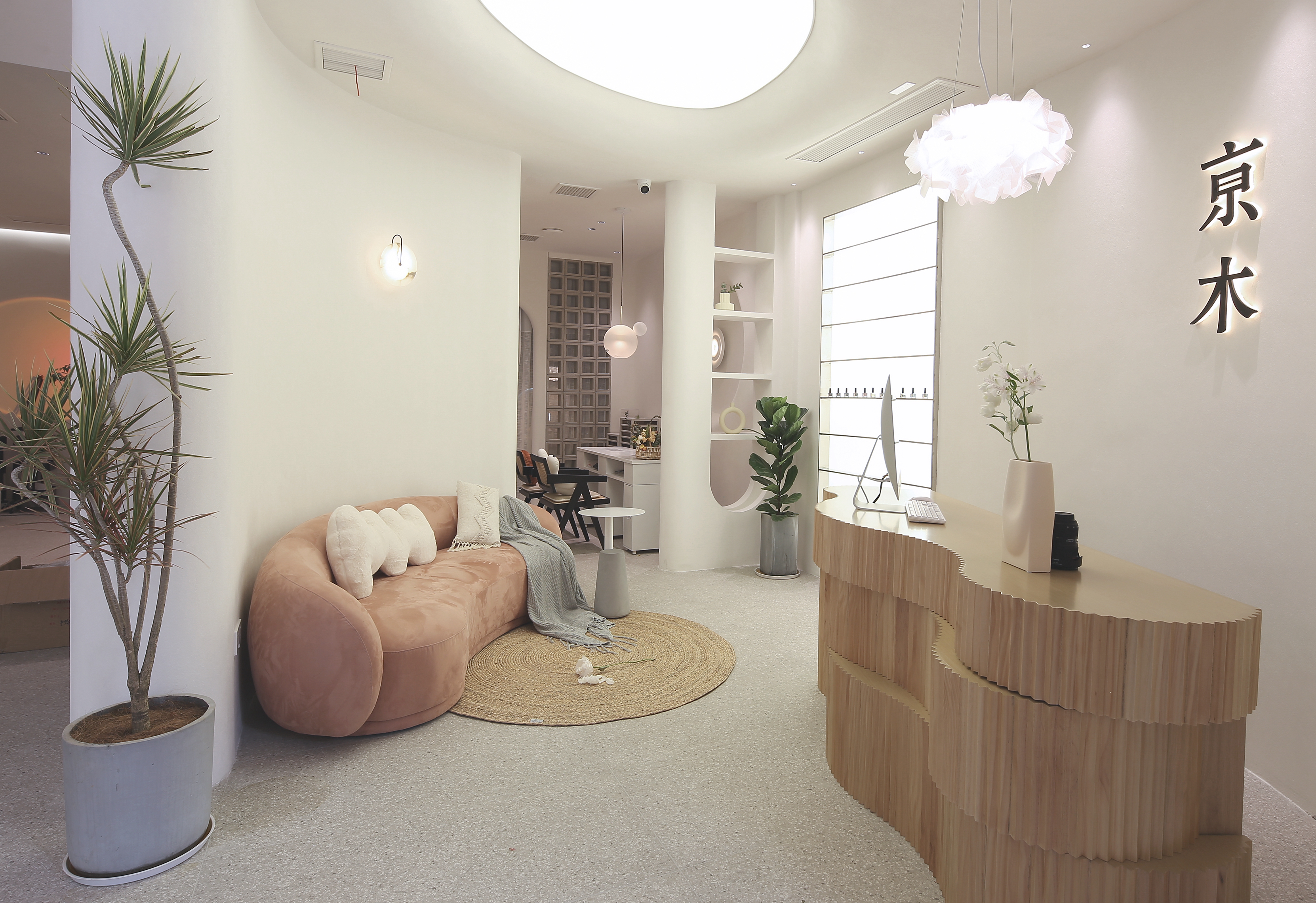 项目定位:该项目是为三个年轻女业主量身定制的商业空间策划,以高定美甲美学中心为定位,完成她们合伙创业的2.0阶段。为该项目取名为“白月光”,其一是该项目本身用色用材上追求自然之美,以原生态的肌理和质感,打动人心,所谓素简入魂、温暖入心。区别于以往繁复的装饰和豪华的镶嵌,该项目给人以一种如月光般皎洁的姿态。而命名的另一个初衷,则是作为设计者和旁观者,我在这三位女孩子身上看到的除了创业踌躇满志、精益求精以外的的一些最打动我的地方,在这个纷繁复杂的社会中,还有这么一份彼此真心对待、完全信任的超越合作和利益之外的真诚和友谊,如皓月清澈不染。设计永远是为人而做的设计,这大概就是我为她们所做的设计的初心,希望这份空间之美,能配得起她们内心对所有美好的追求。