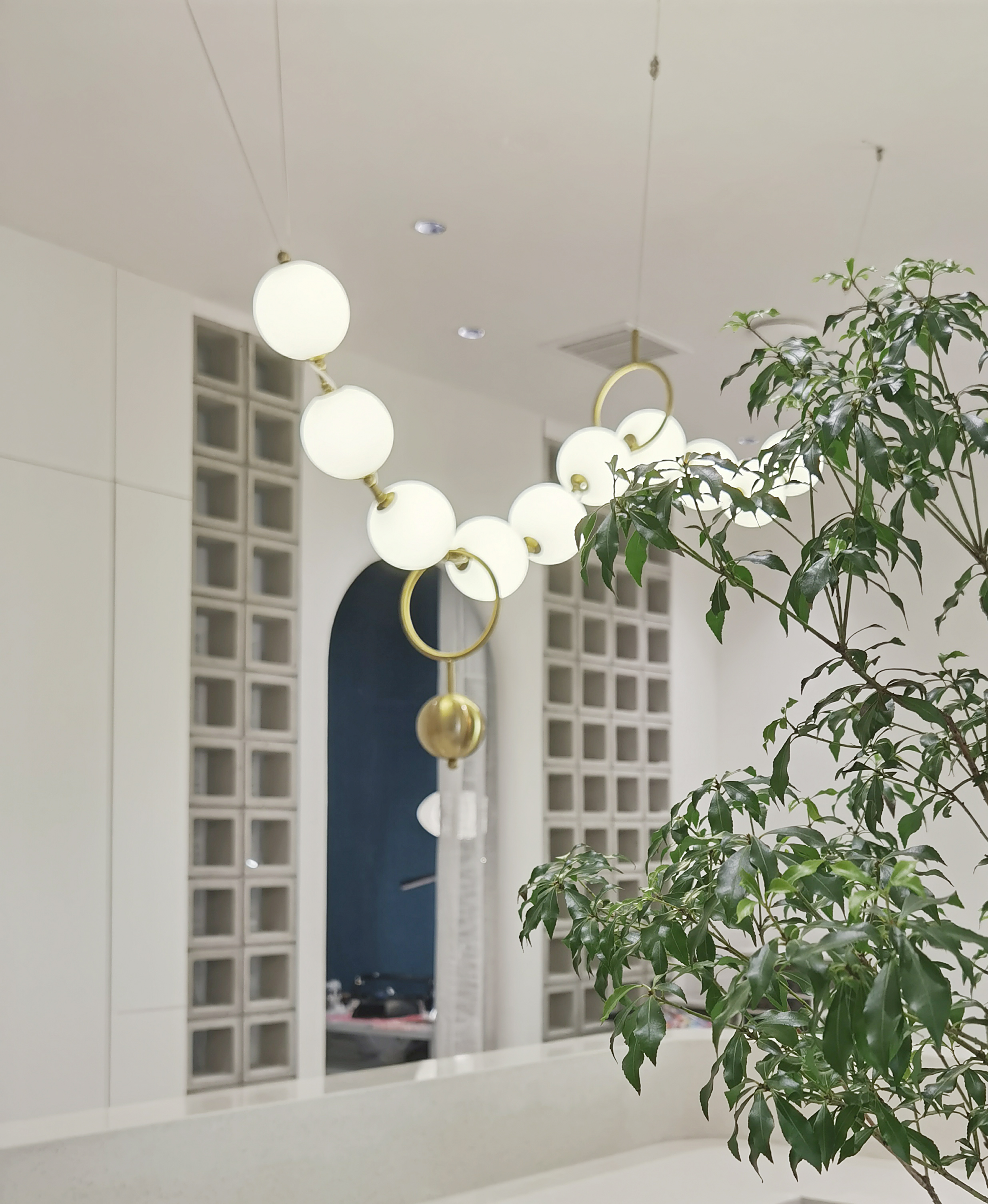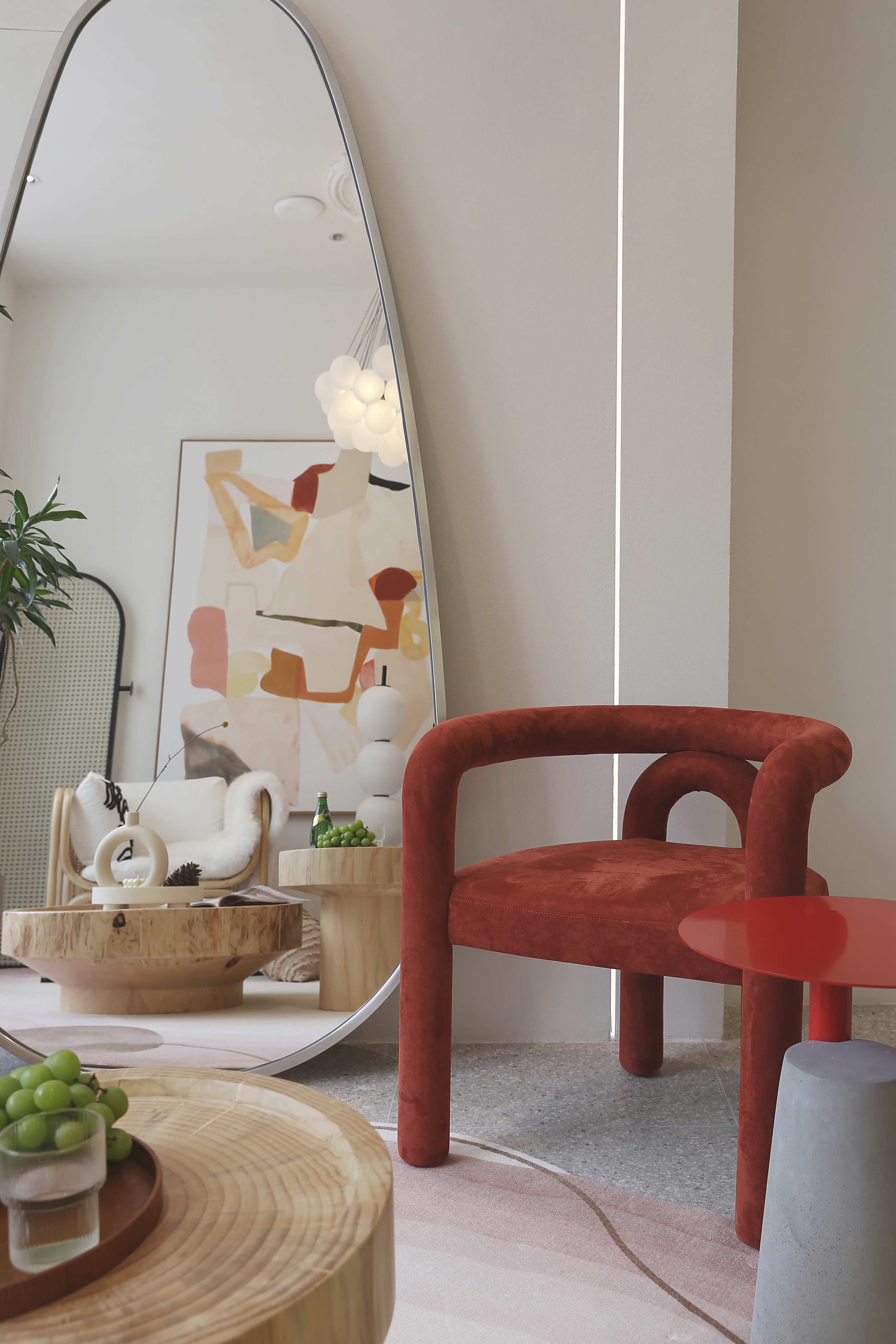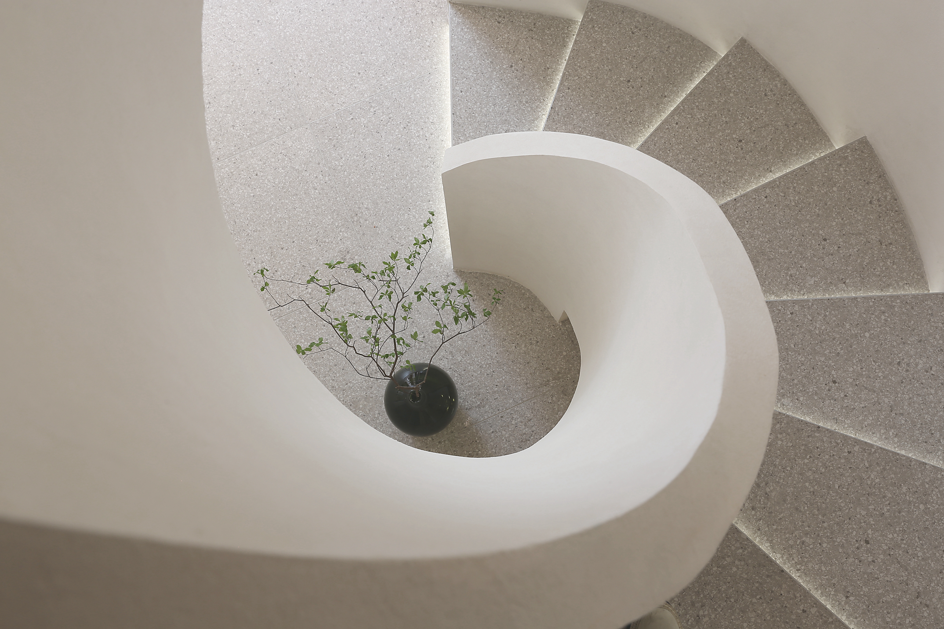 灵动的弧形与圆润的曲面元素由外至内 流畅的楼梯圆弧造型与拱形门洞 摒弃了直线造型的尖锐与死板 传达视觉空间的柔和与纯粹
