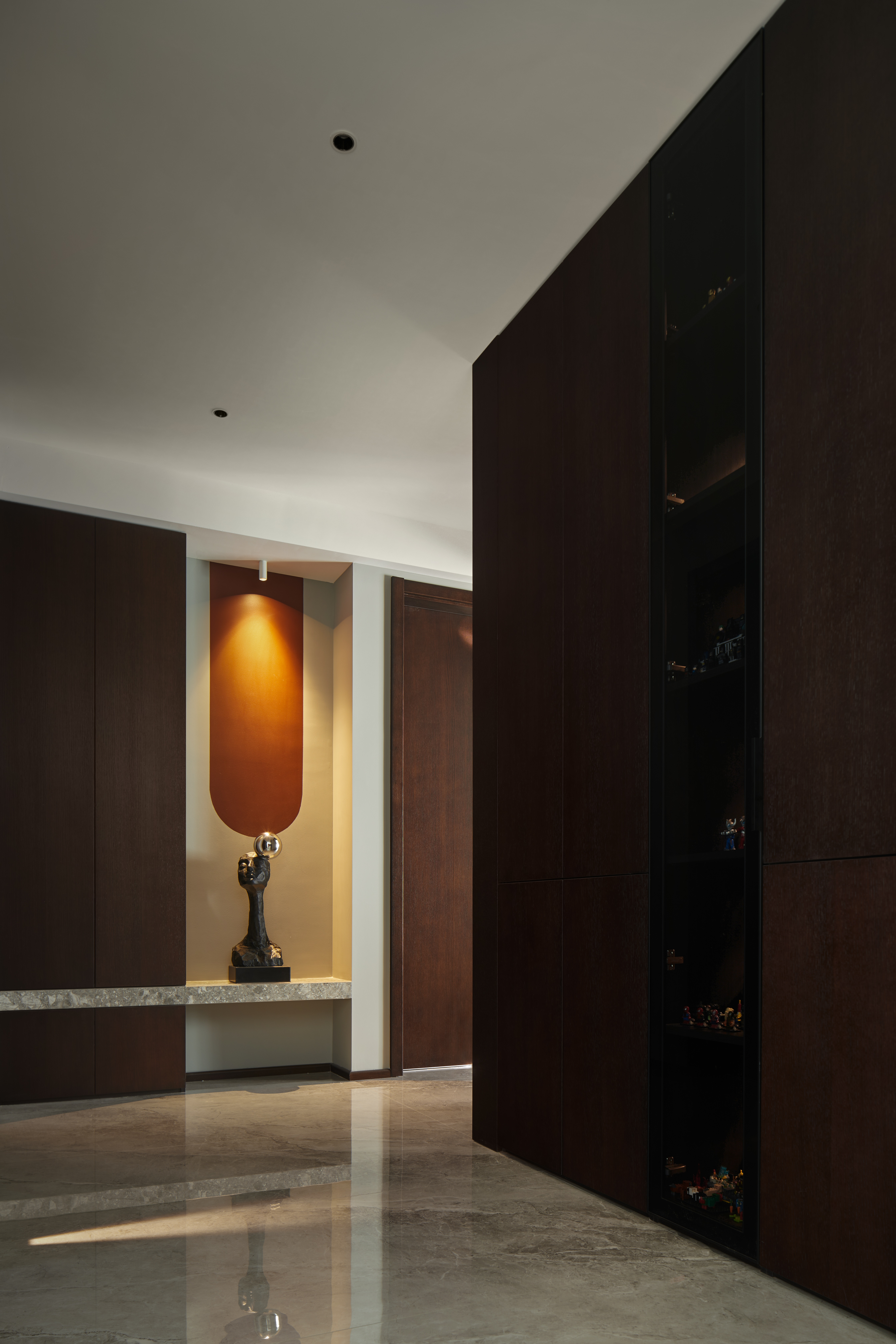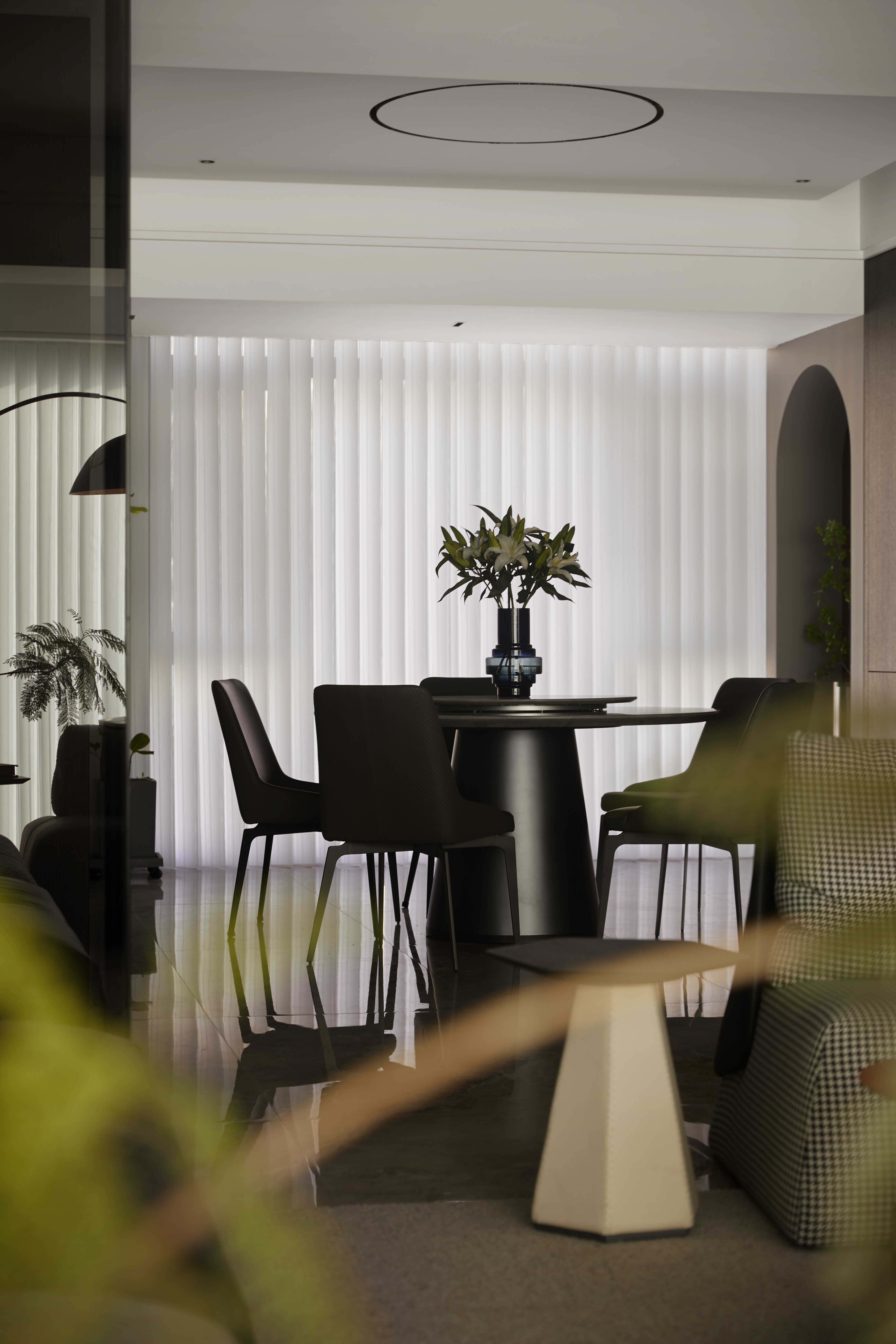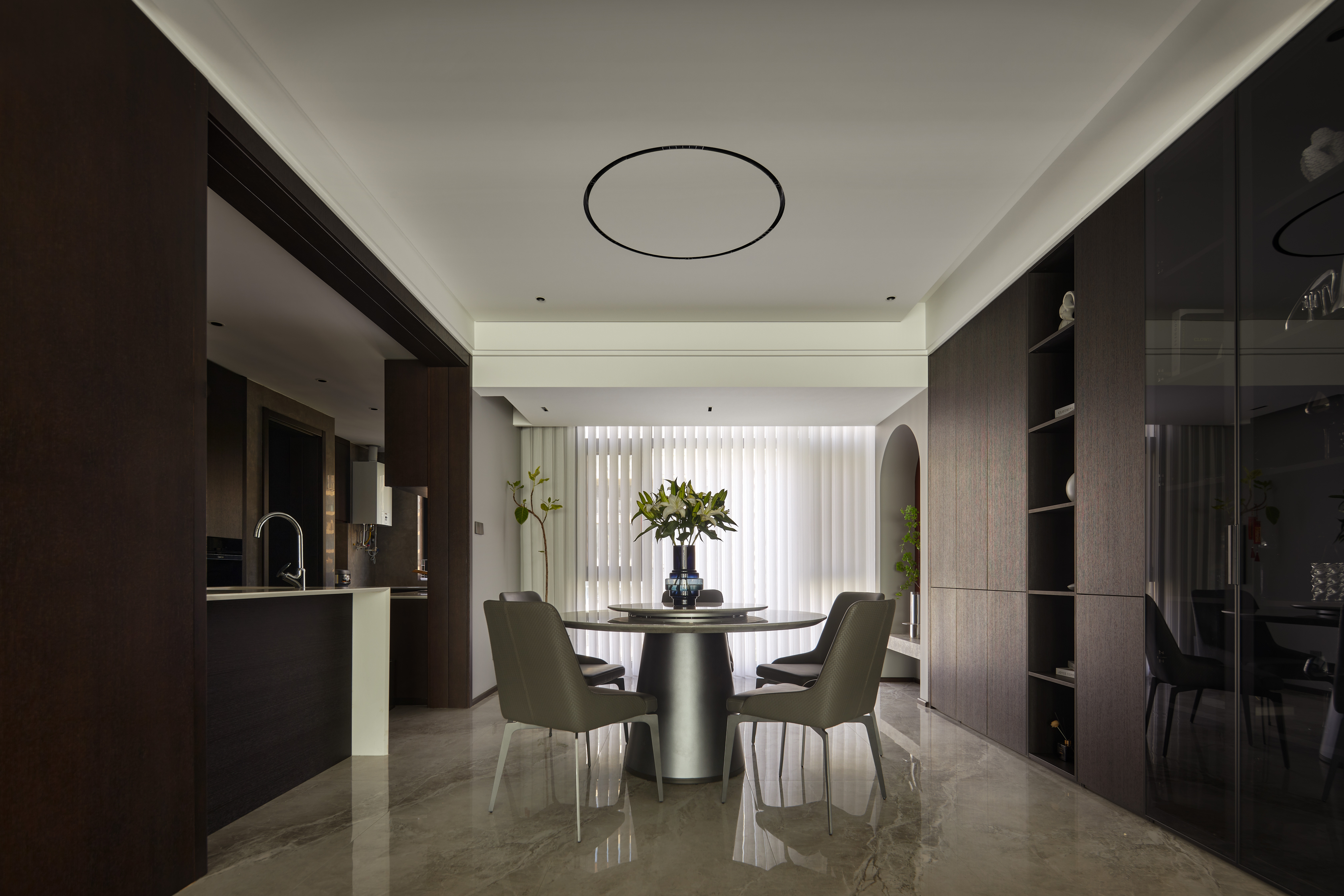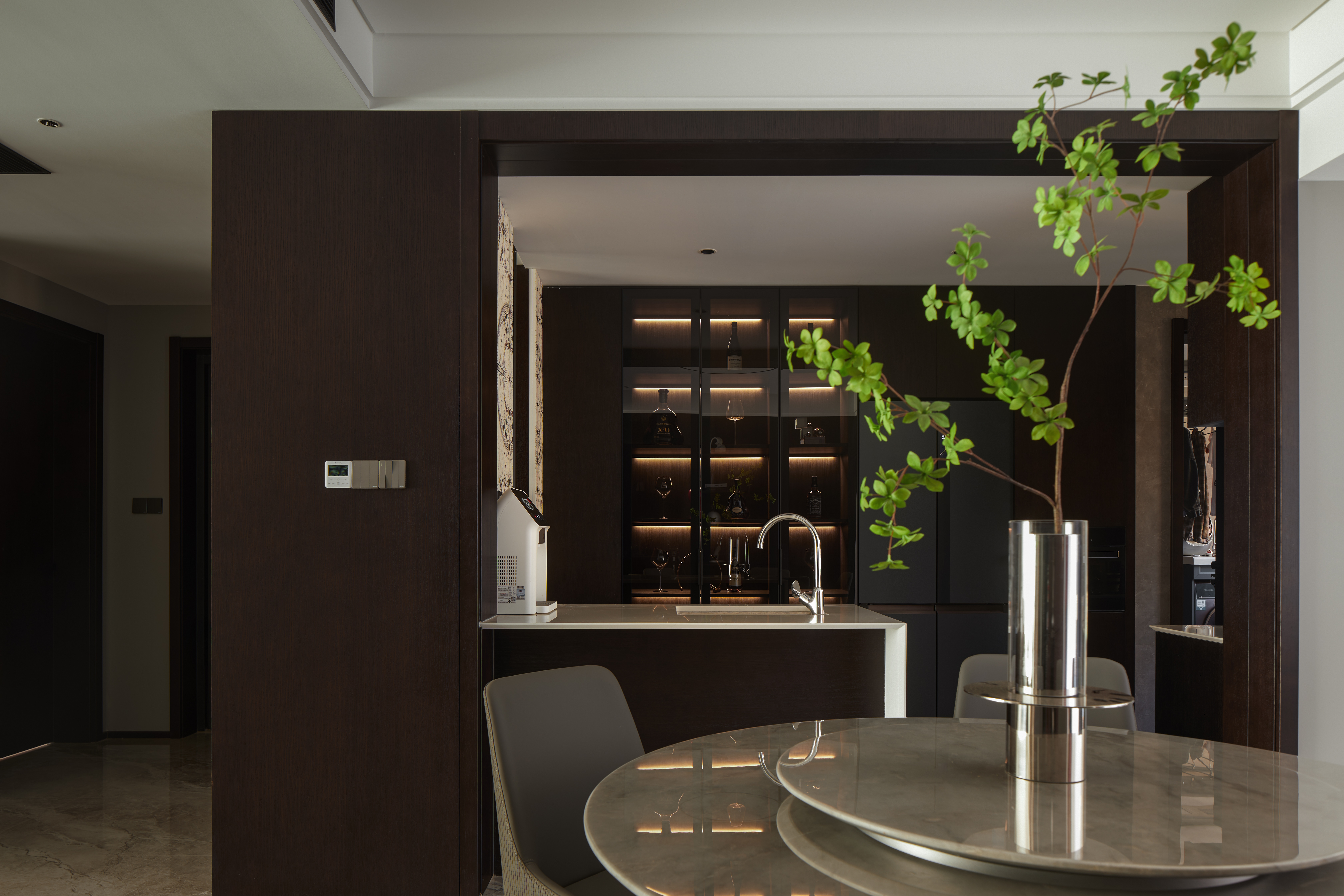 项目定位:以“人本精神”作为住宅设计的核心理念,塑造一方人与空间共融的怡然之居;并借由开放的布局、灵活的动线,以及深色系弥漫开来的深层质感,促成整个空间简约中极具质感的视觉印象。