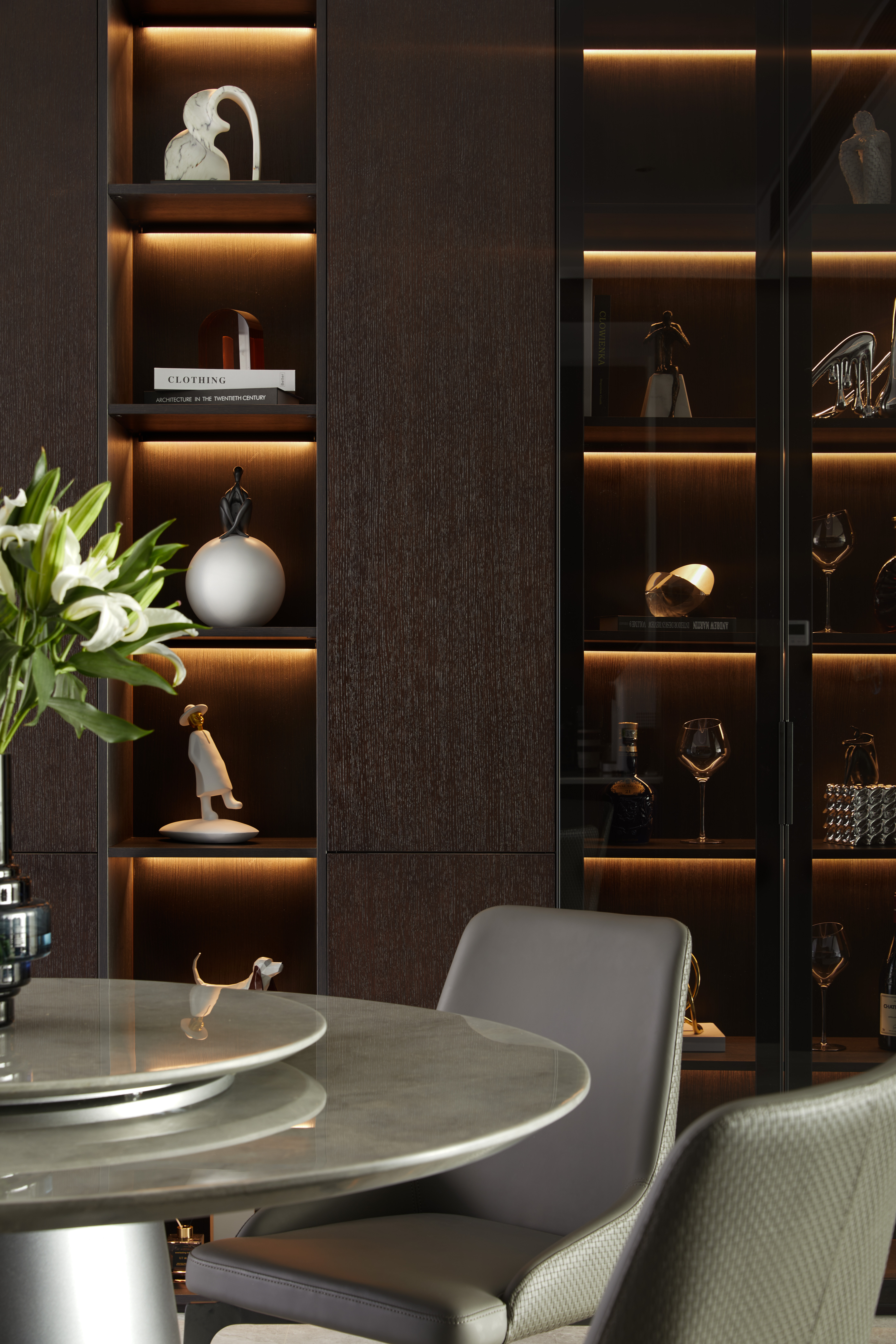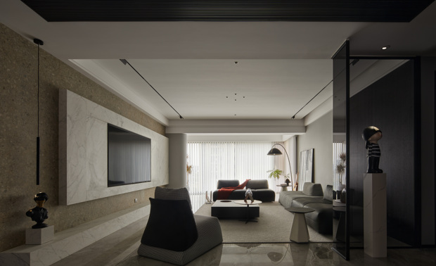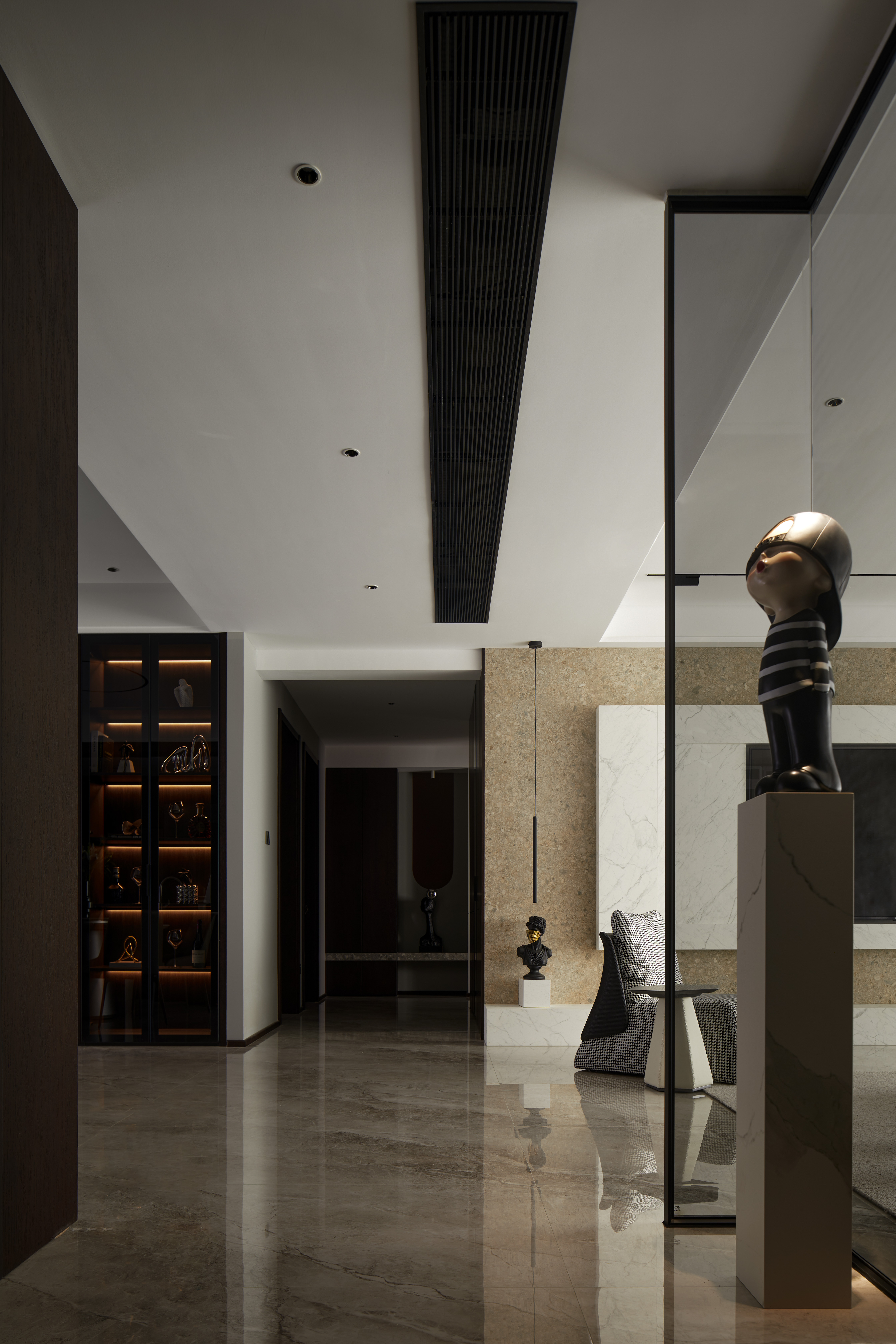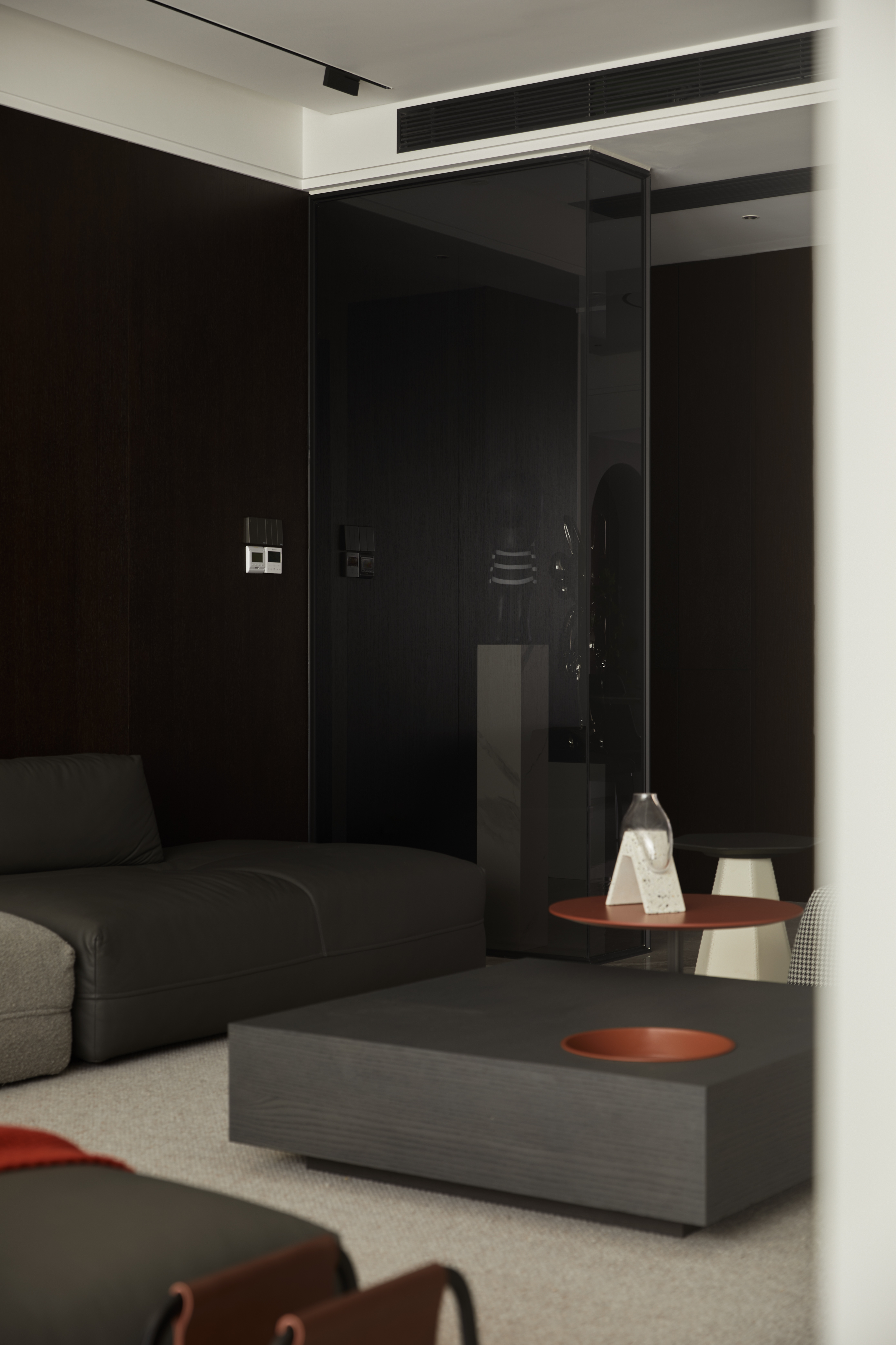 项目定位:以“人本精神”作为住宅设计的核心理念,塑造一方人与空间共融的怡然之居;并借由开放的布局、灵活的动线,以及深色系弥漫开来的深层质感,促成整个空间简约中极具质感的视觉印象。