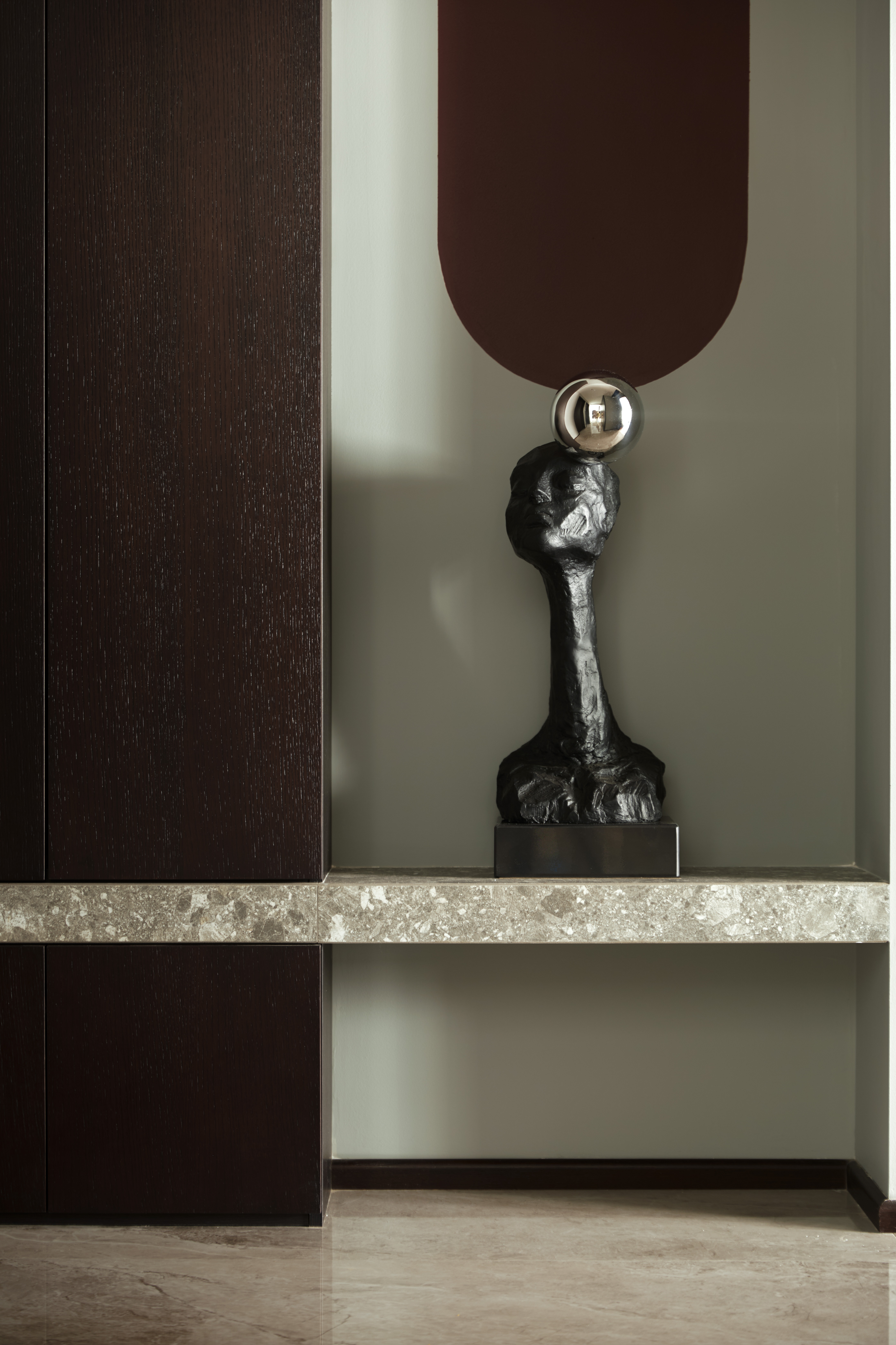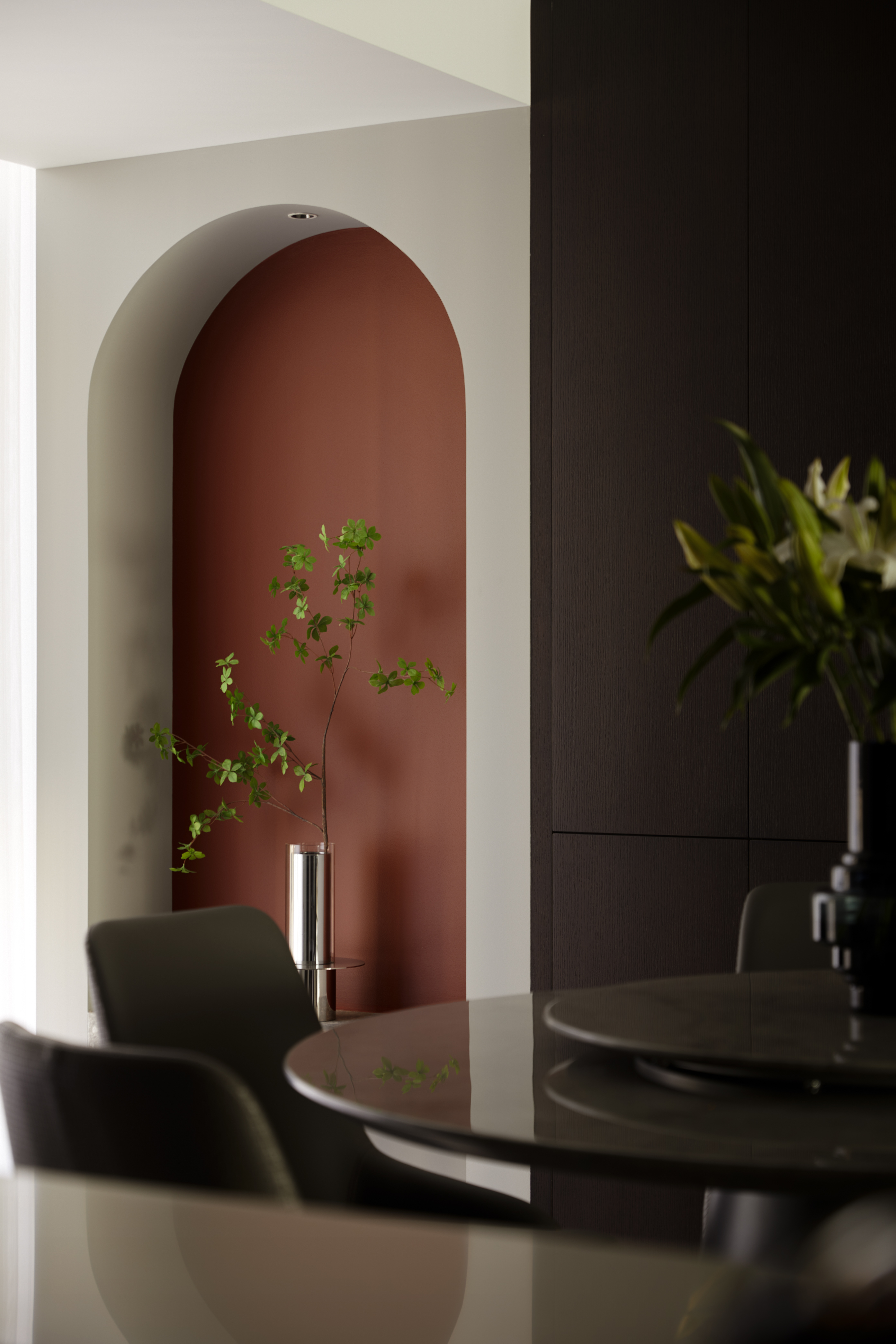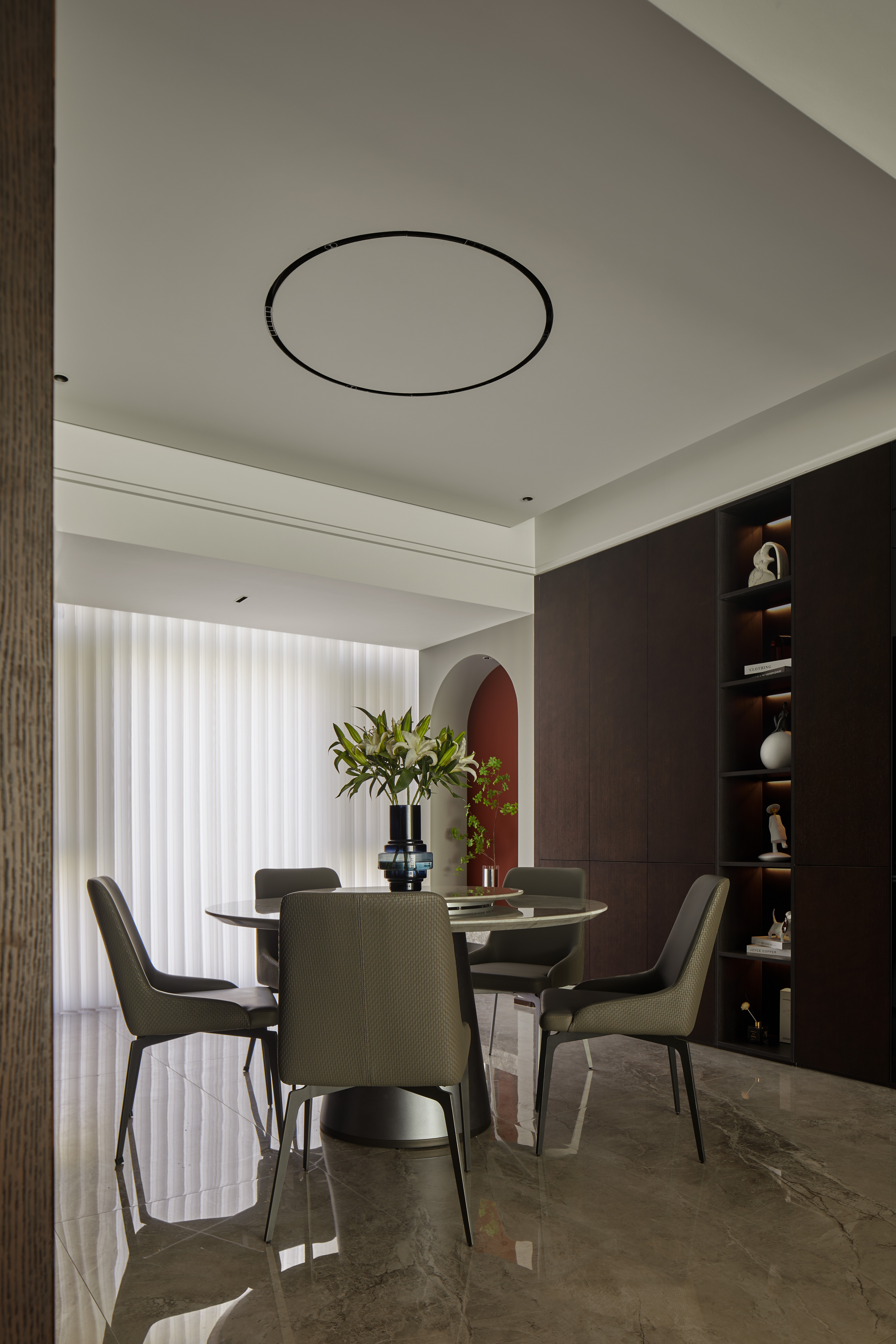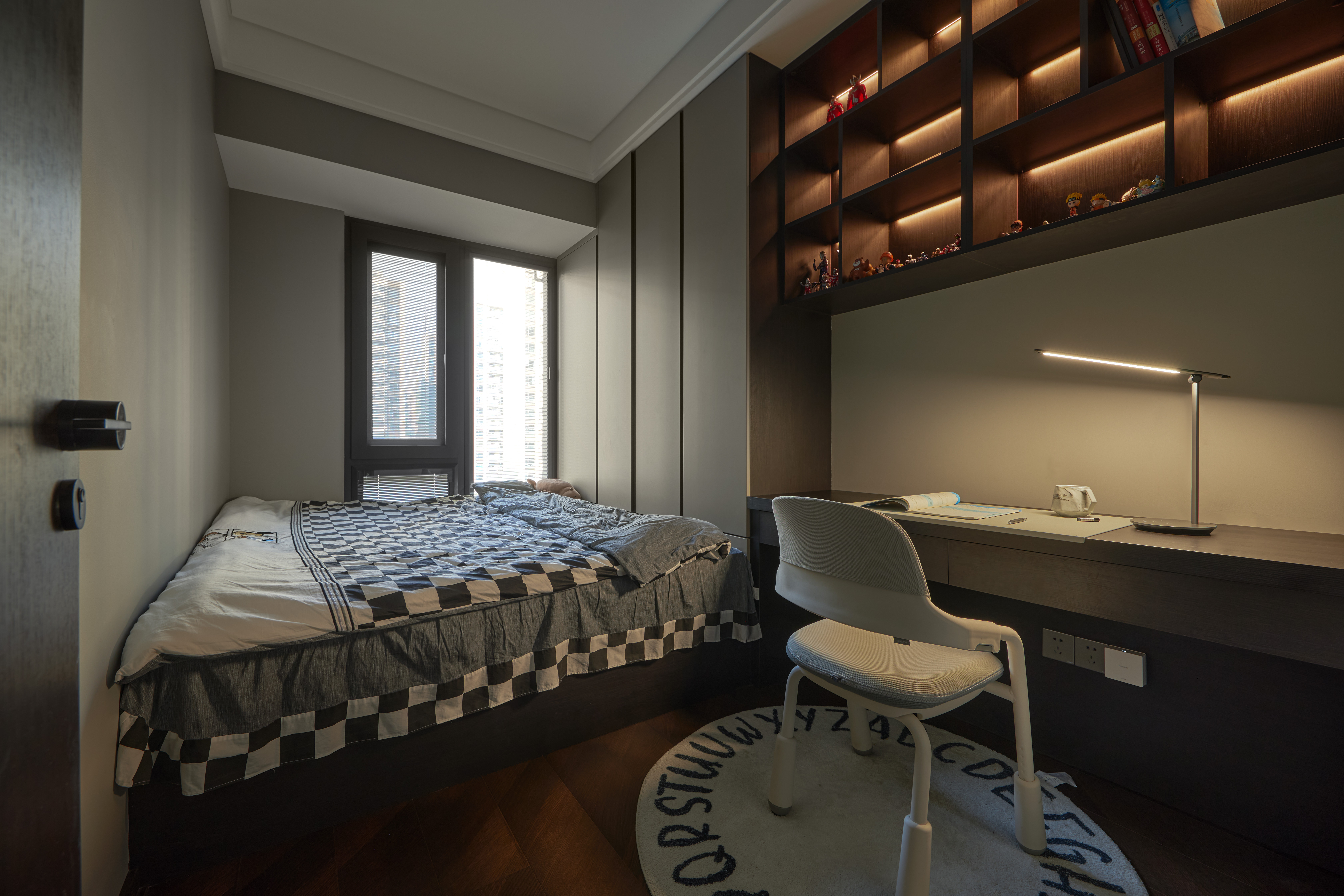 项目定位:以“人本精神”作为住宅设计的核心理念,塑造一方人与空间共融的怡然之居;并借由开放的布局、灵活的动线,以及深色系弥漫开来的深层质感,促成整个空间简约中极具质感的视觉印象。