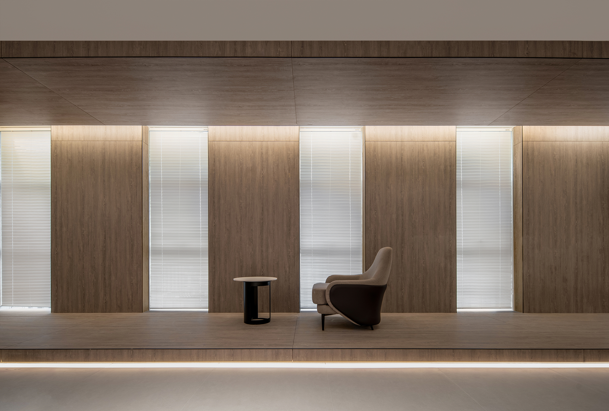 但这是一个错层挑高的空间,那座连接上下的楼梯往上就可以开启两个端口,从初始到结束形成一条不走回头路的流畅动线。 -