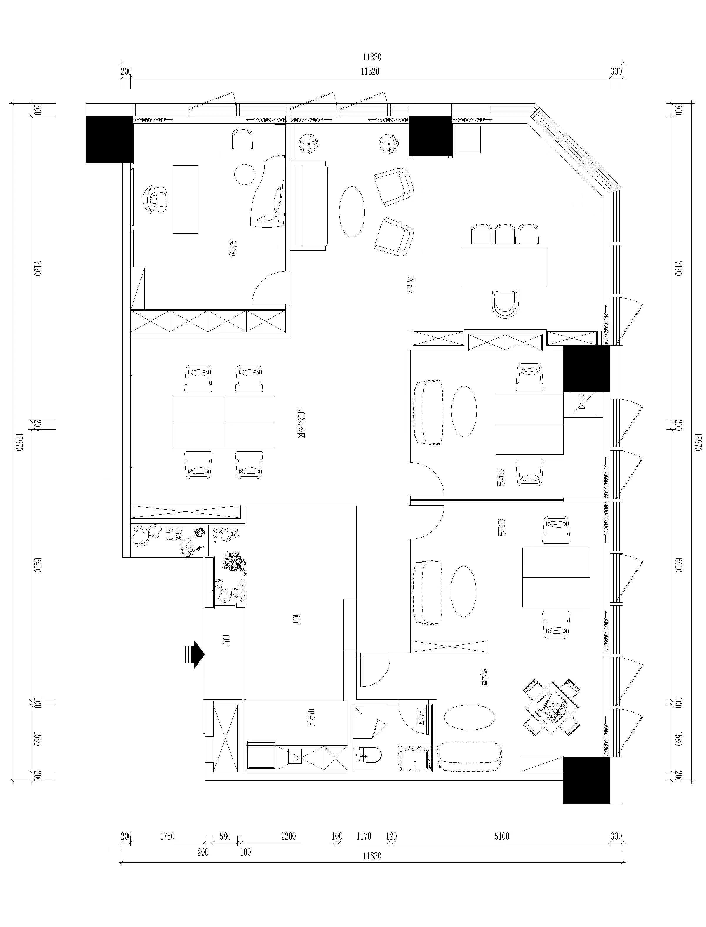 空间布局:因本案业主对空间要求的特殊性,改变了惯有思维的办公区开放而会议、接待区封闭的设计,相反的把办公区域相对封闭,而会议、品茗区相对开放;办公区在虚实结合中适当使用透光玻璃,使空间更有纵深感穿透感.
