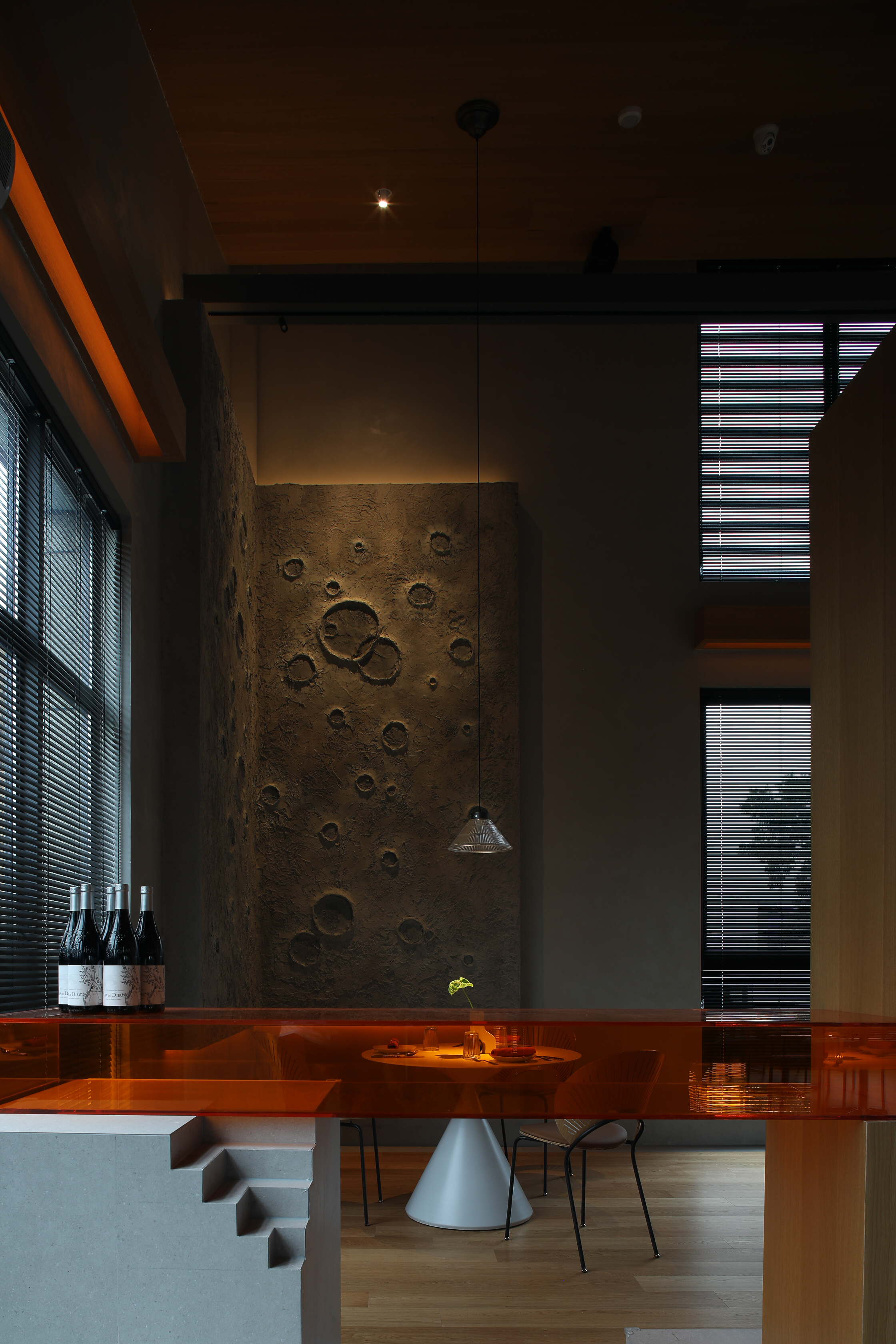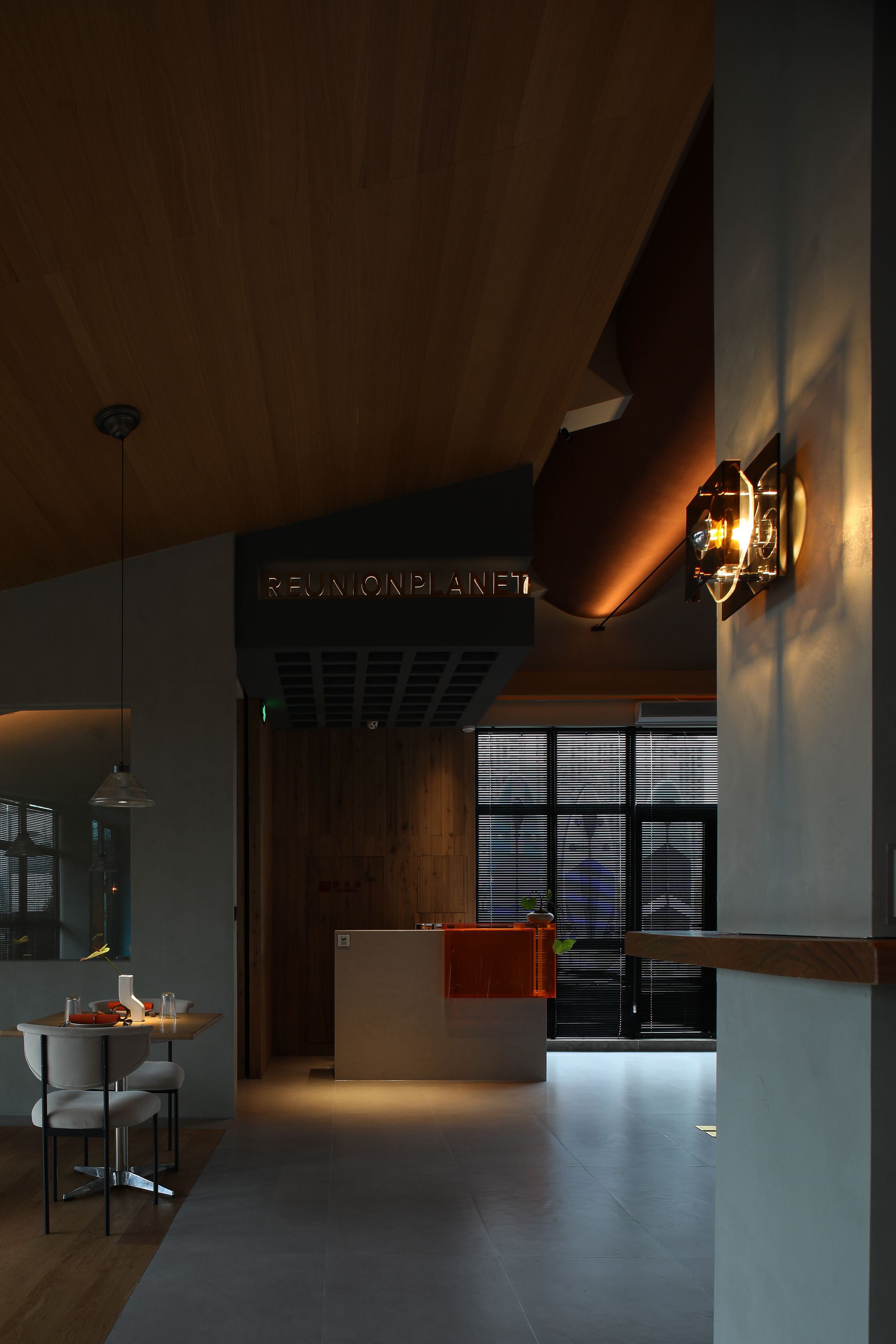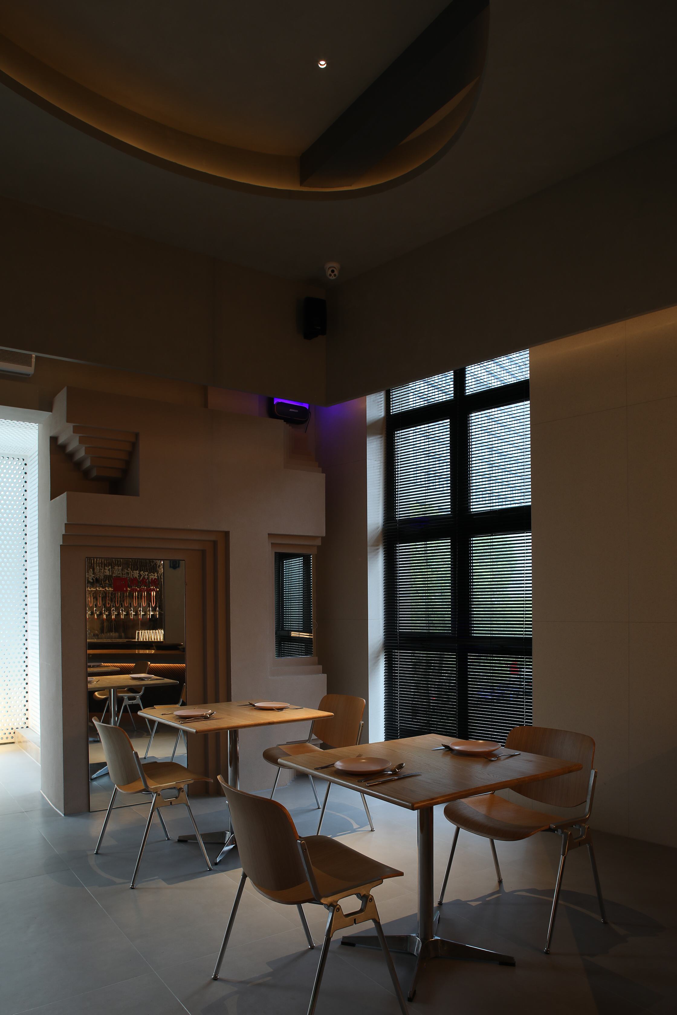 本案坐落在黄岩的永宁江畔,永宁江是黄岩的母亲河,做为江畔边的一个独立建筑,建筑本身具有独立及层高的先天优势 。设计团队在初期便与甲方建立起的共识便希望这不仅仅是一间餐厅,更希望打造的是一个集成生活的美学空间,将法餐的浪漫和精酿个性包容其中