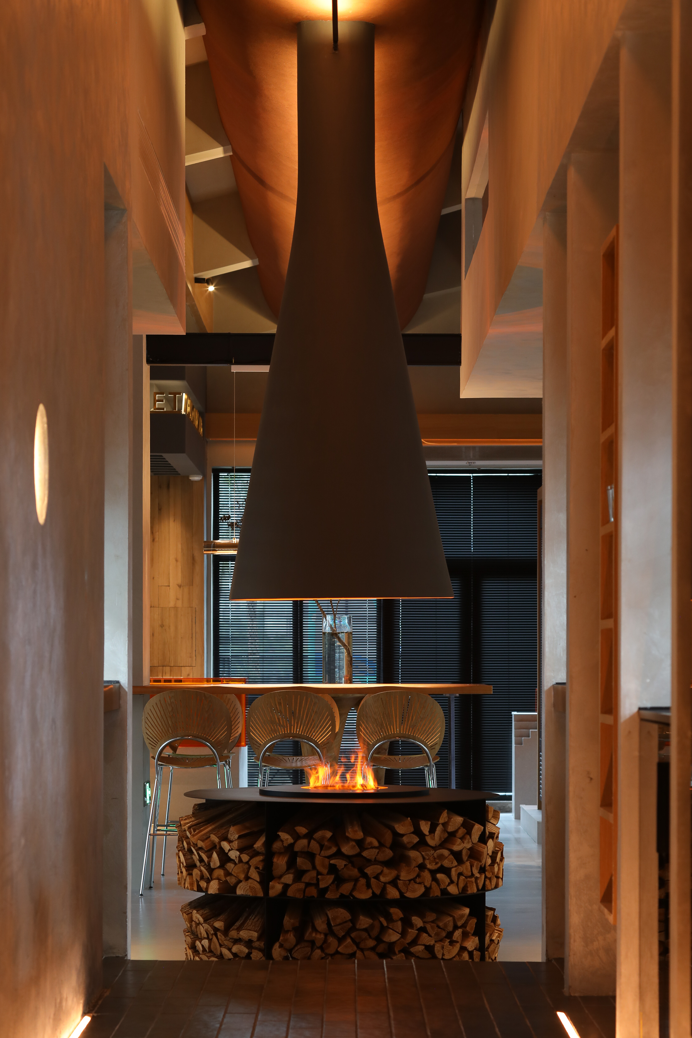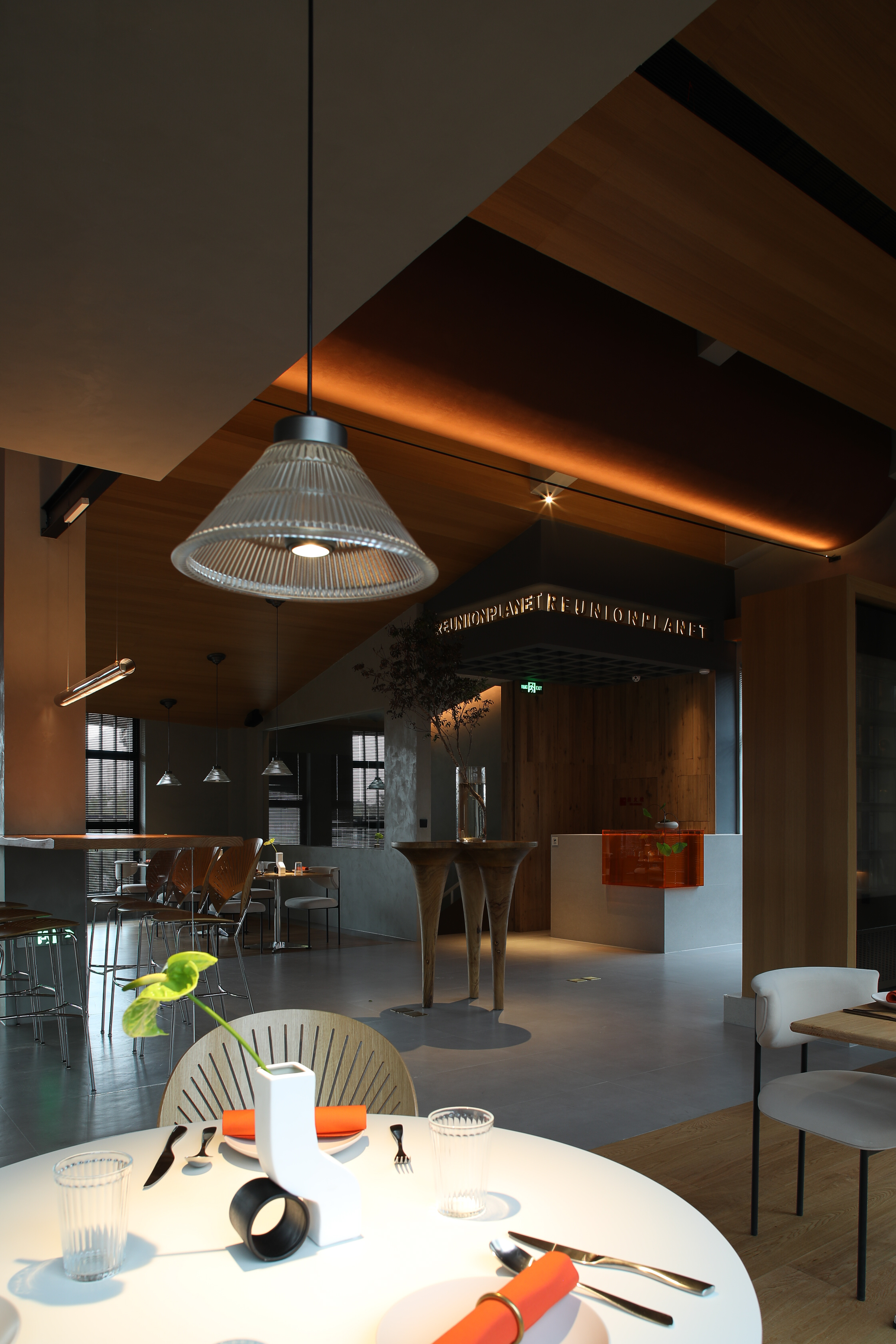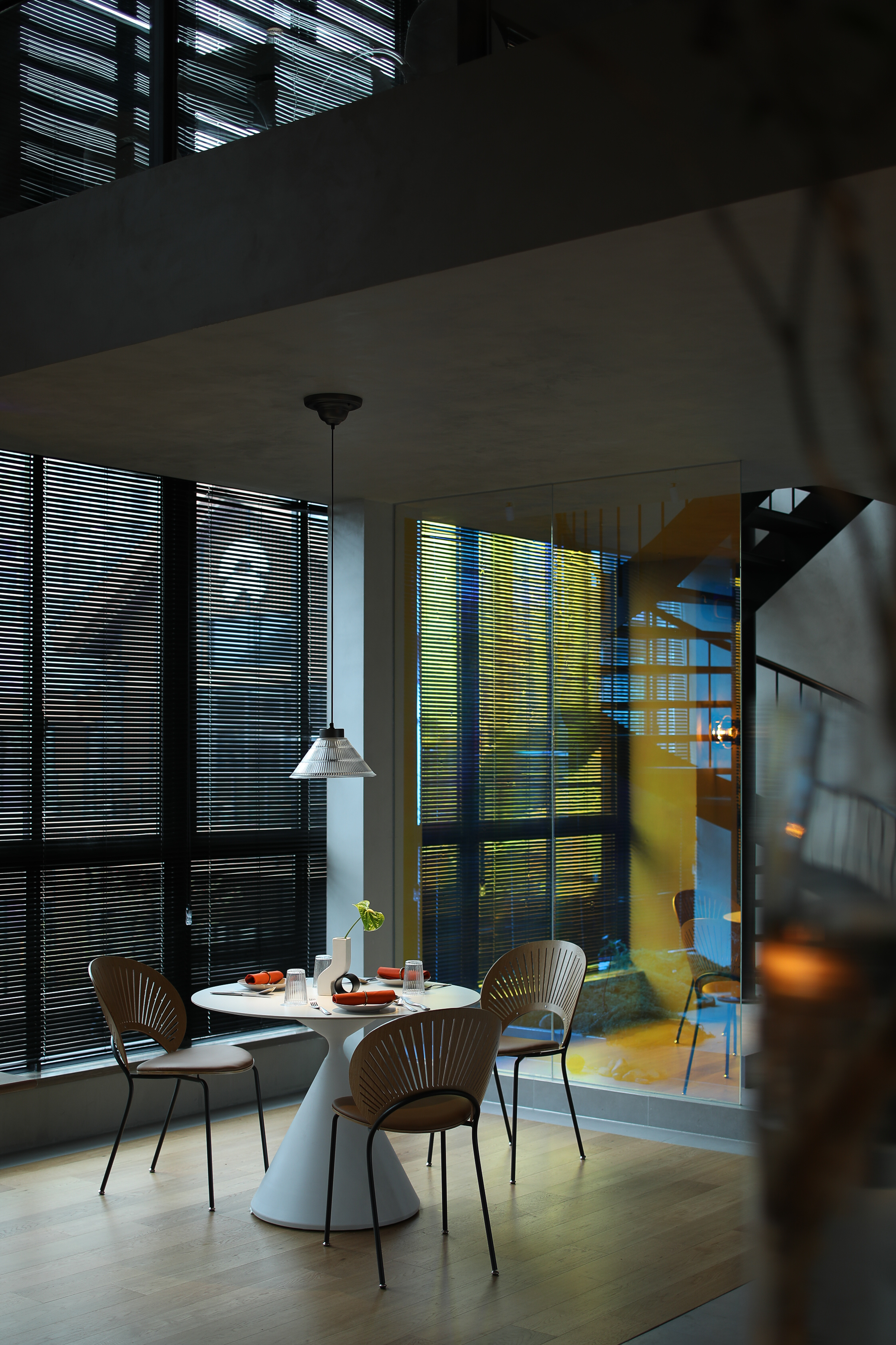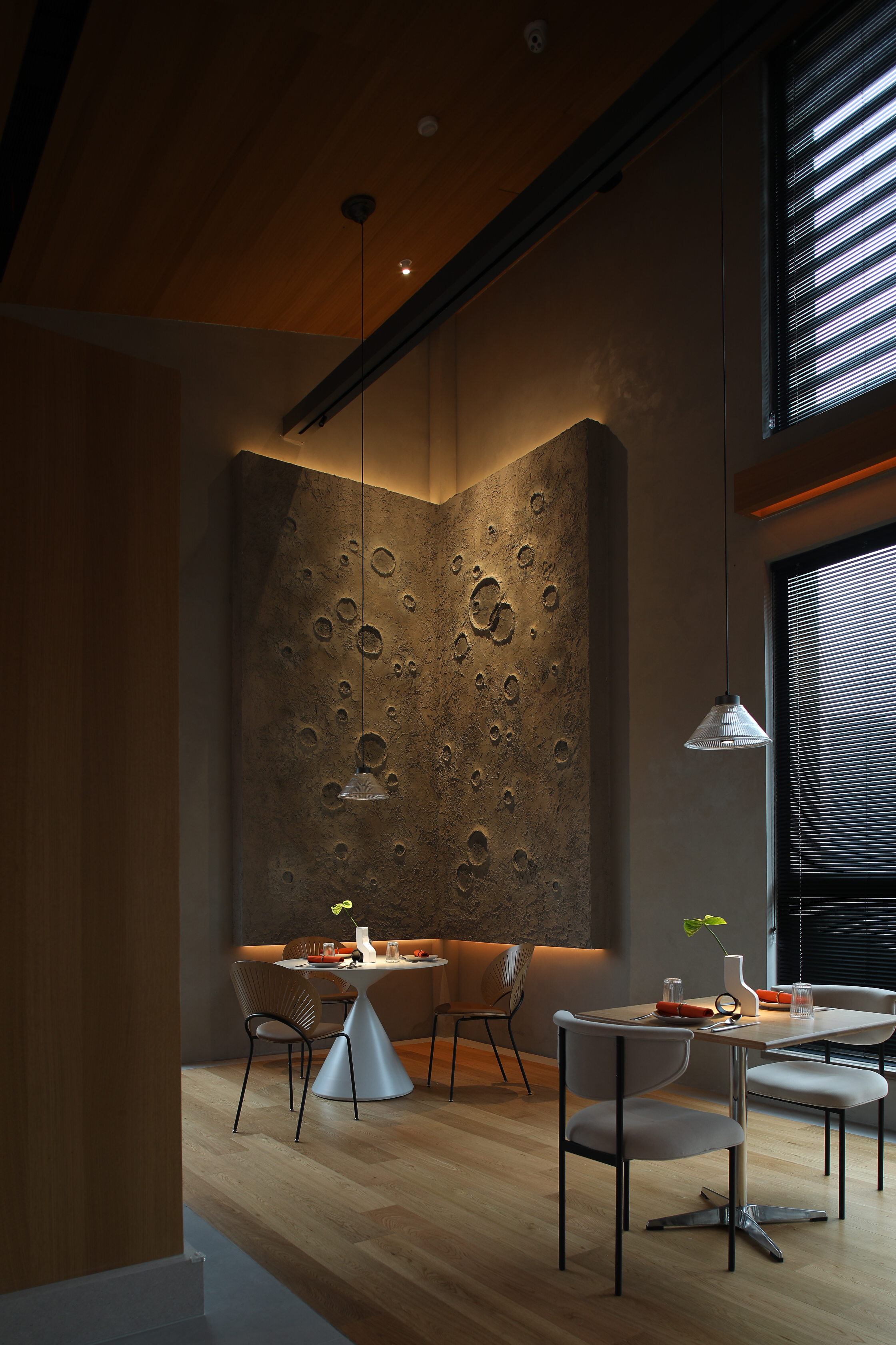 本案坐落在黄岩的永宁江畔,永宁江是黄岩的母亲河,做为江畔边的一个独立建筑,建筑本身具有独立及层高的先天优势 。设计团队在初期便与甲方建立起的共识便希望这不仅仅是一间餐厅,更希望打造的是一个集成生活的美学空间,将法餐的浪漫和精酿个性包容其中