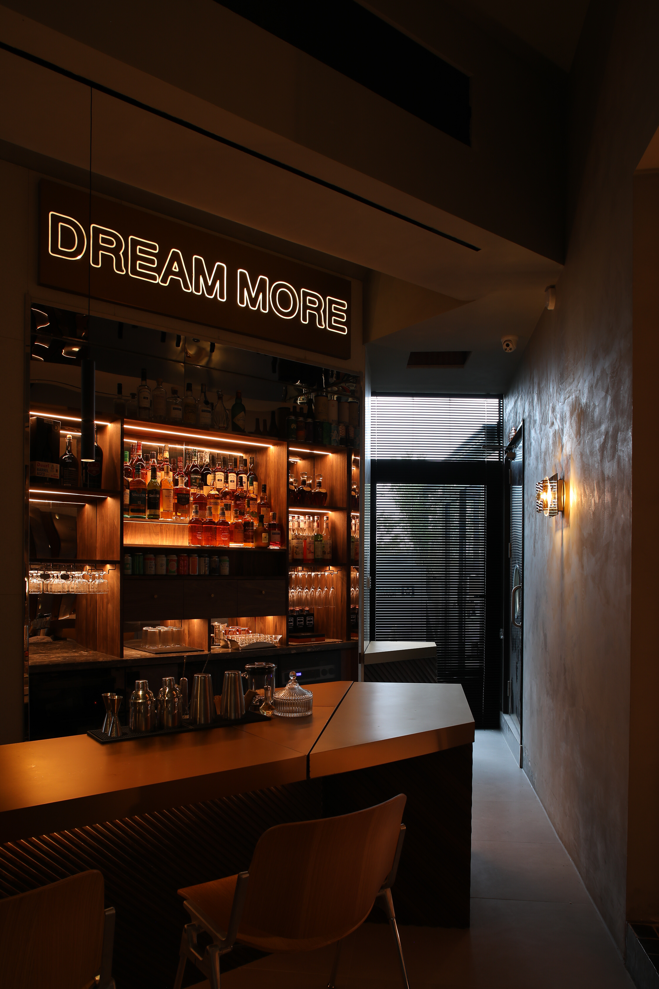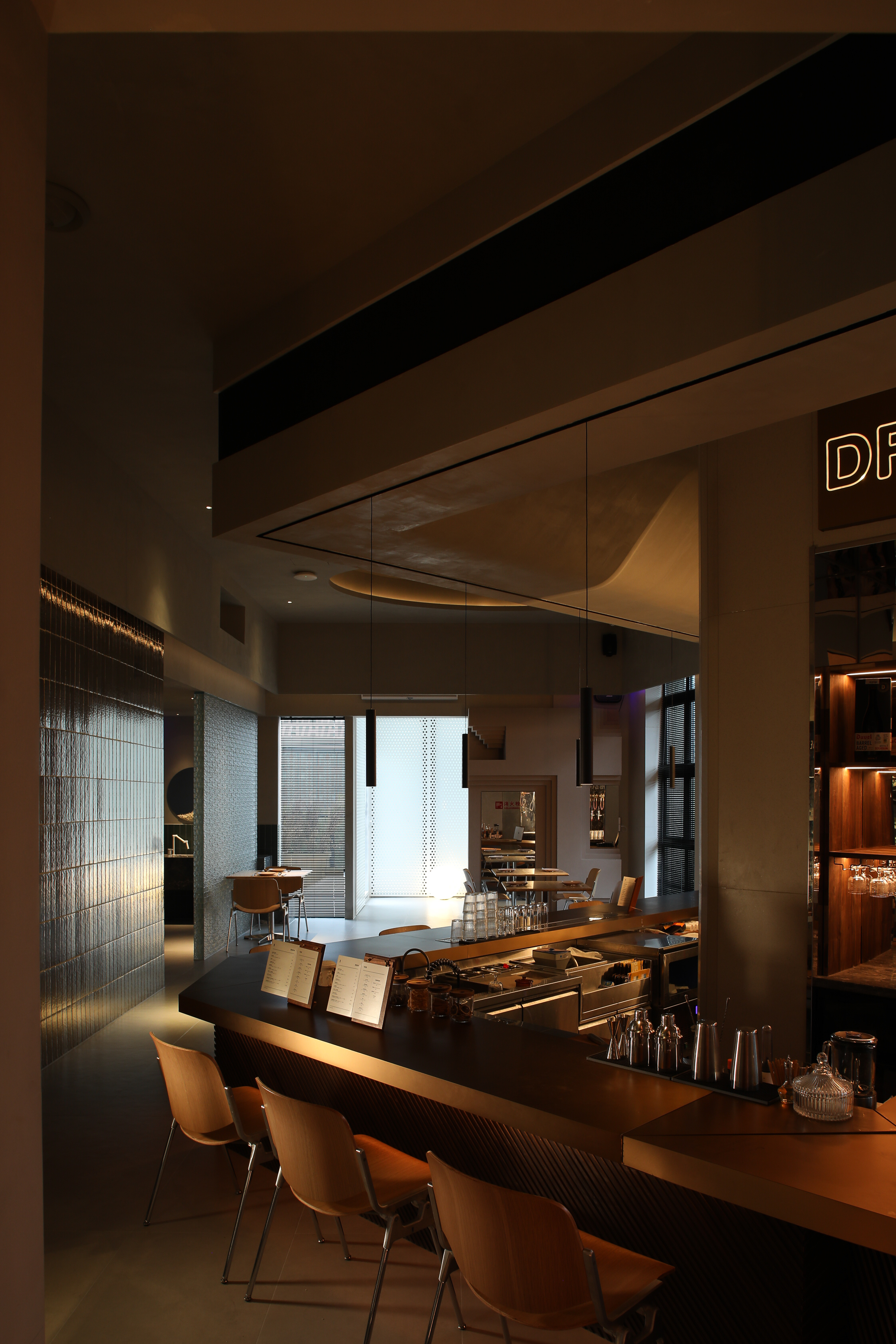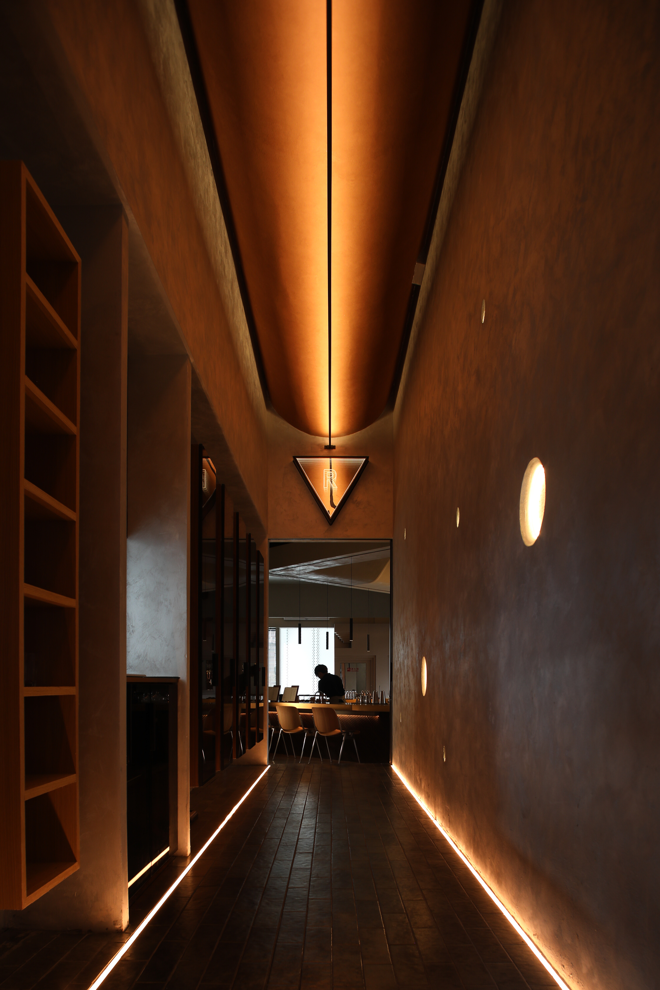 本案原建筑是长条形的进深空间,在同一空间的两种经营属性,我们希望保留西餐的精致,也同样希望体现精酿的个性,便将两个经营空间分别放在两端,在中间过道用时光隧道的概念将其连接,在经营时间上互不影响,在空间功能上又相辅相成。