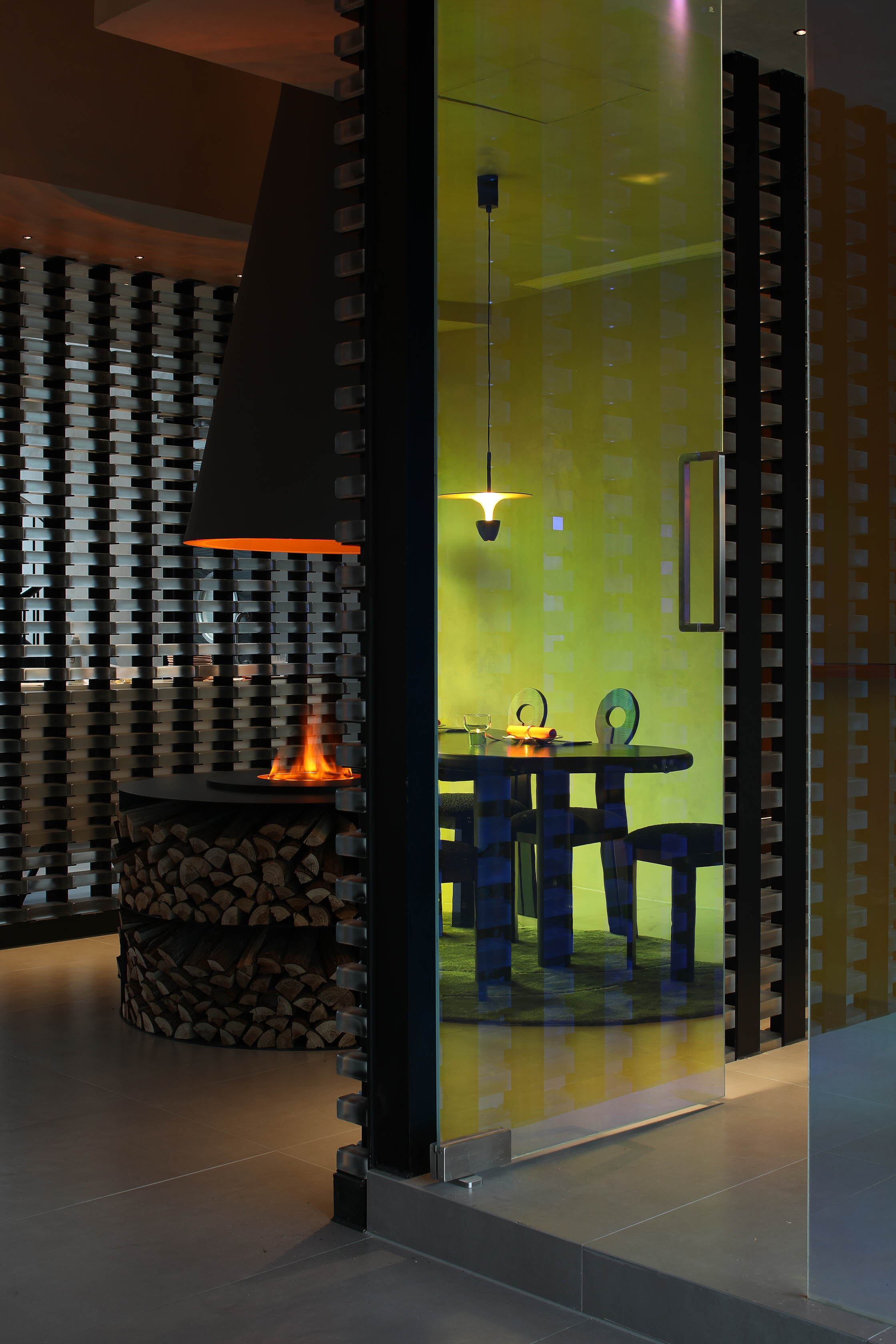 设计选材上选用一些非常规的玻璃砖块、炫彩玻璃、炫彩亚克力等材料,空间梦幻变动,整体追求完美、新颖又休闲的概念去释放灵感上的自由。