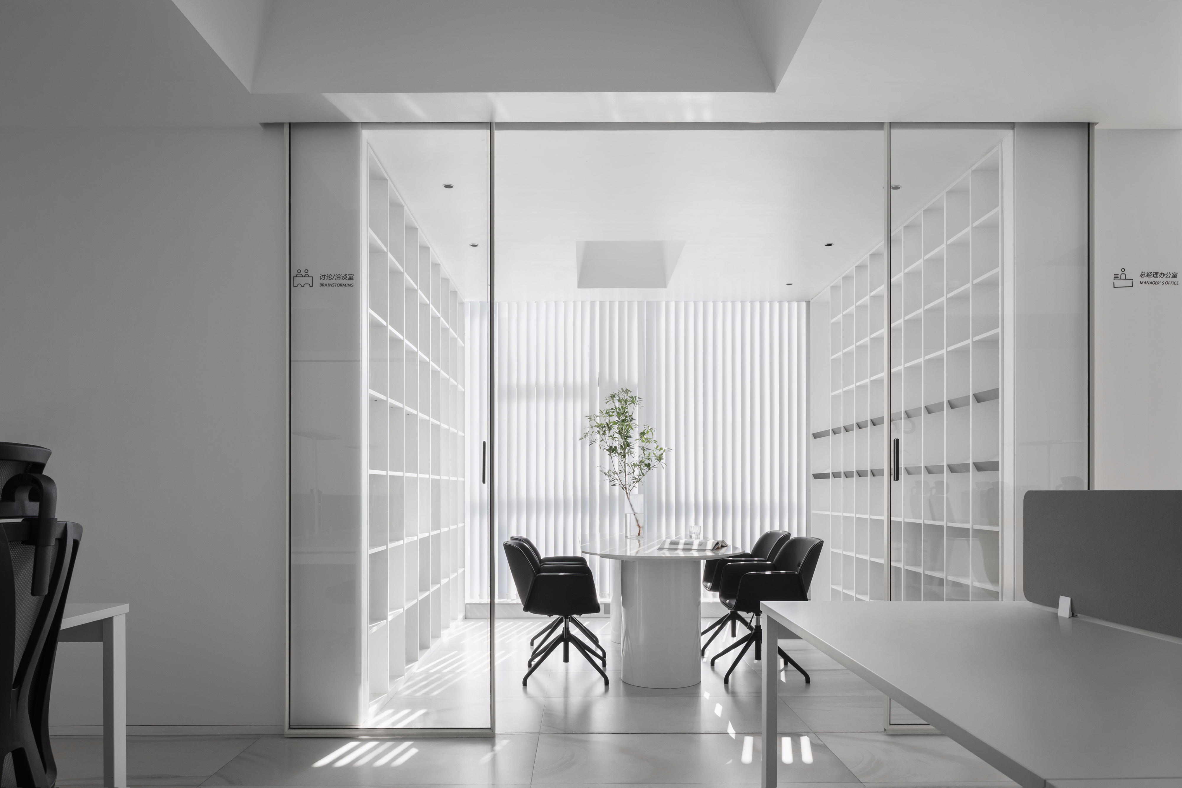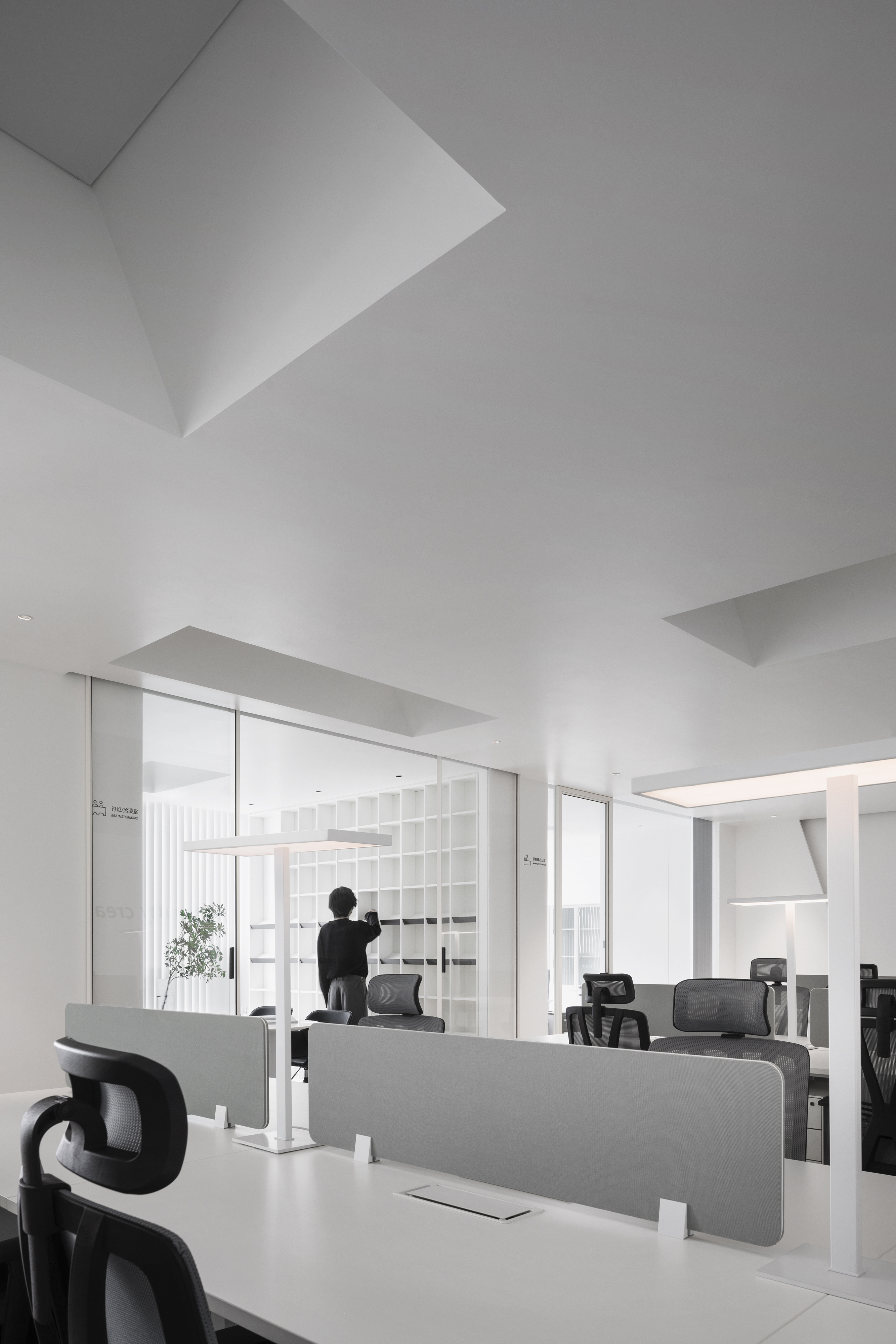 项目定位:以山峰洞穴为灵感,把高楼大厦喻为山峰群落,室内空间喻为洞穴,万物的向光性为设计理念,室内的物和人向光而生,窥看世界。