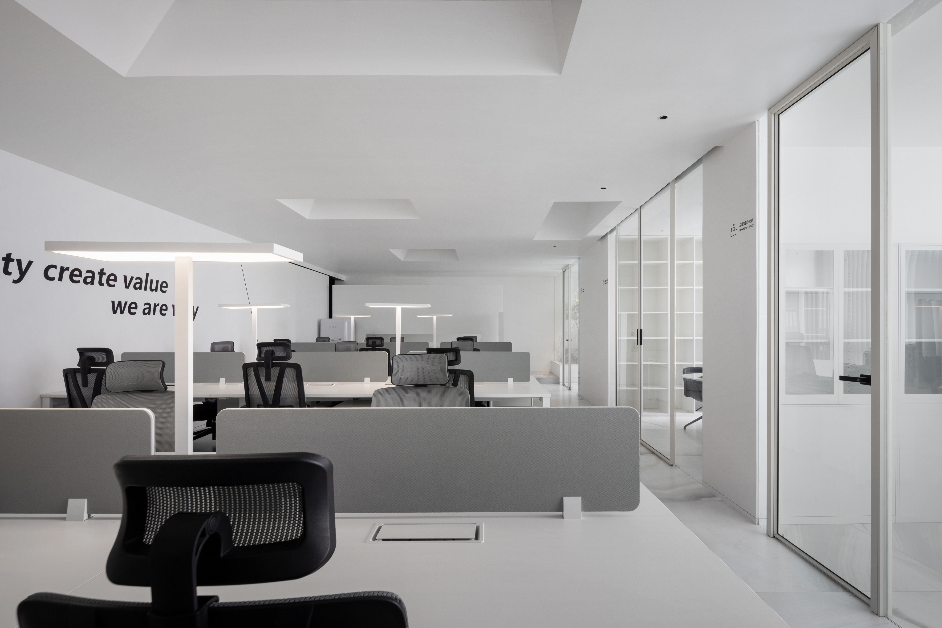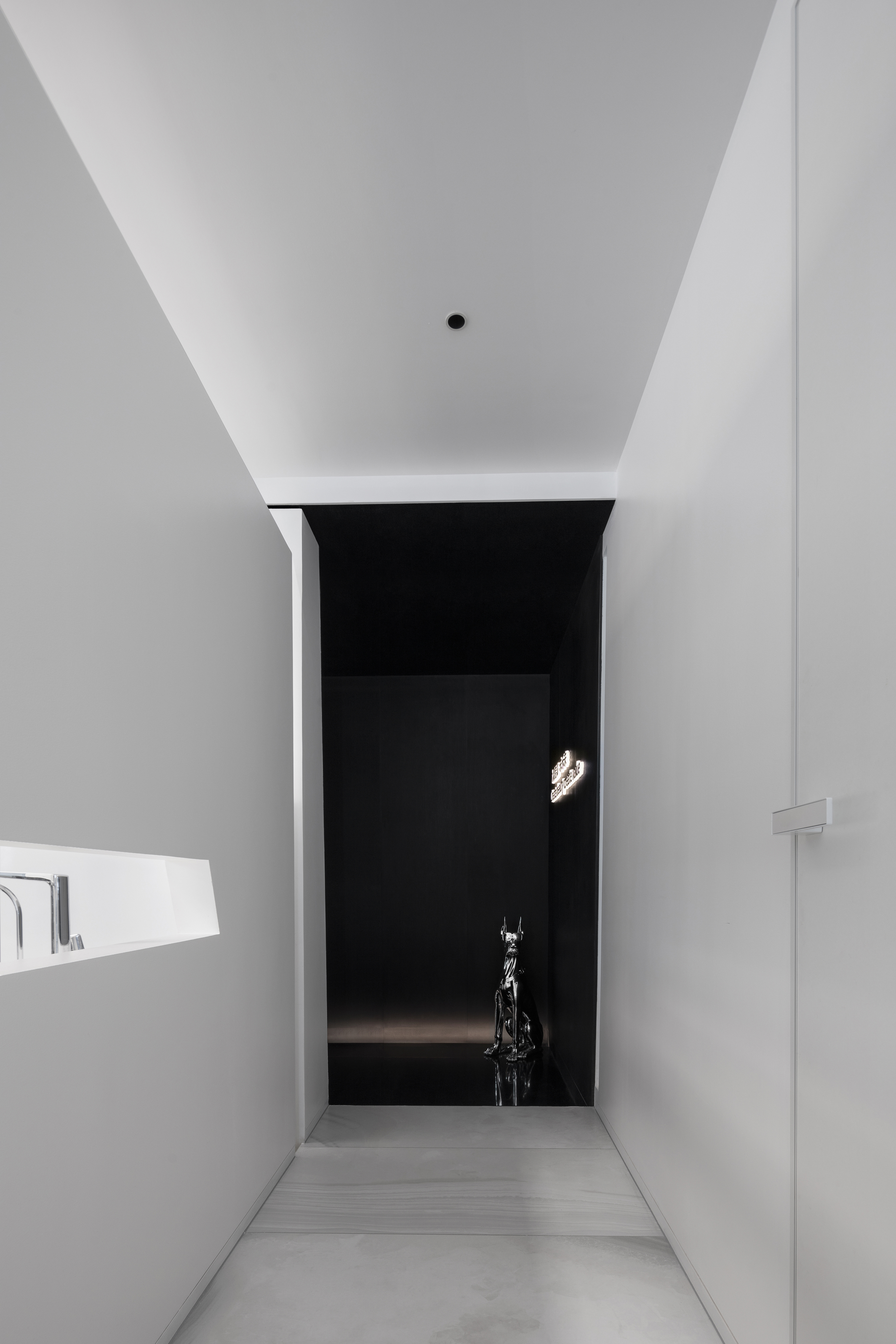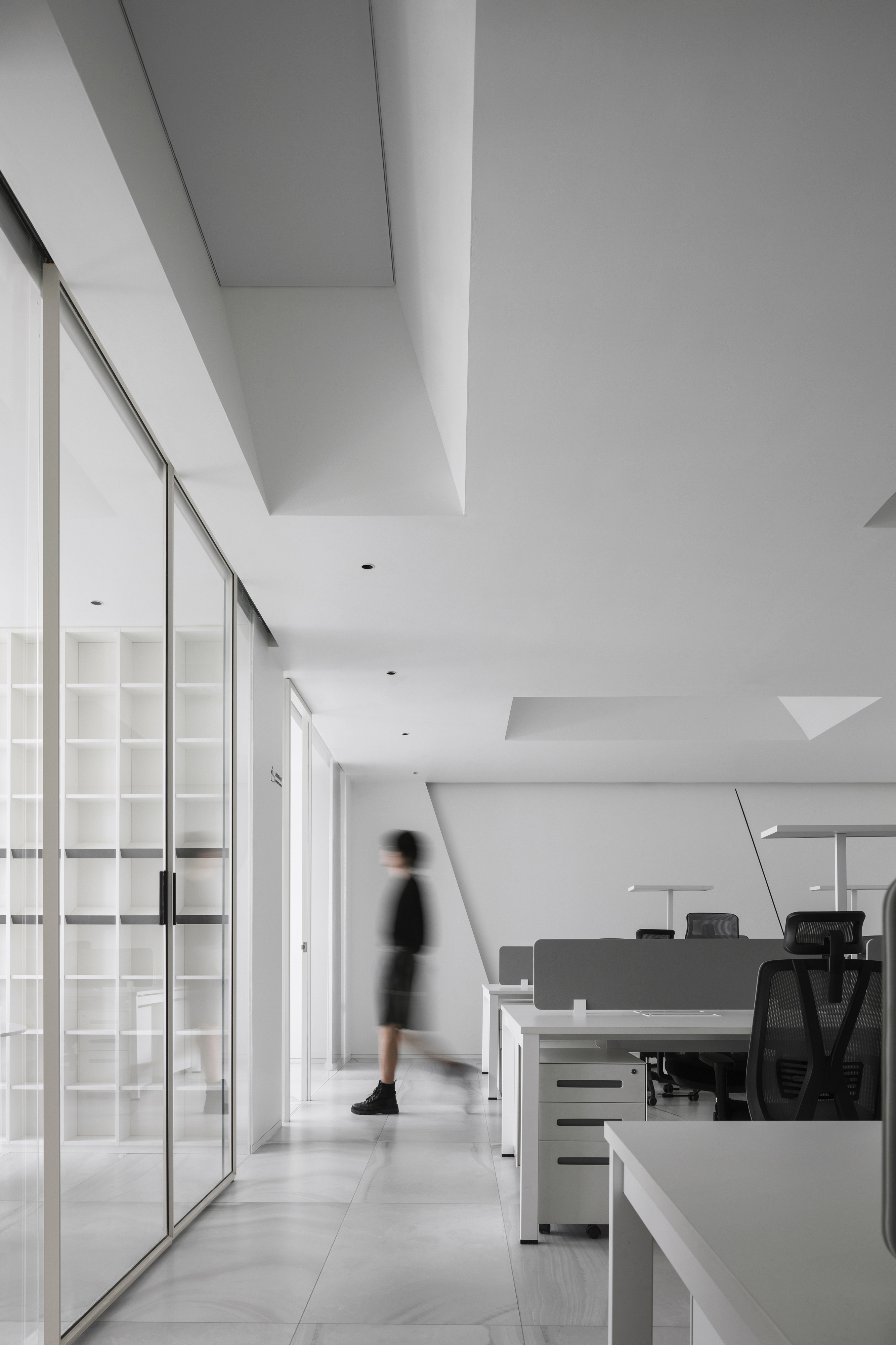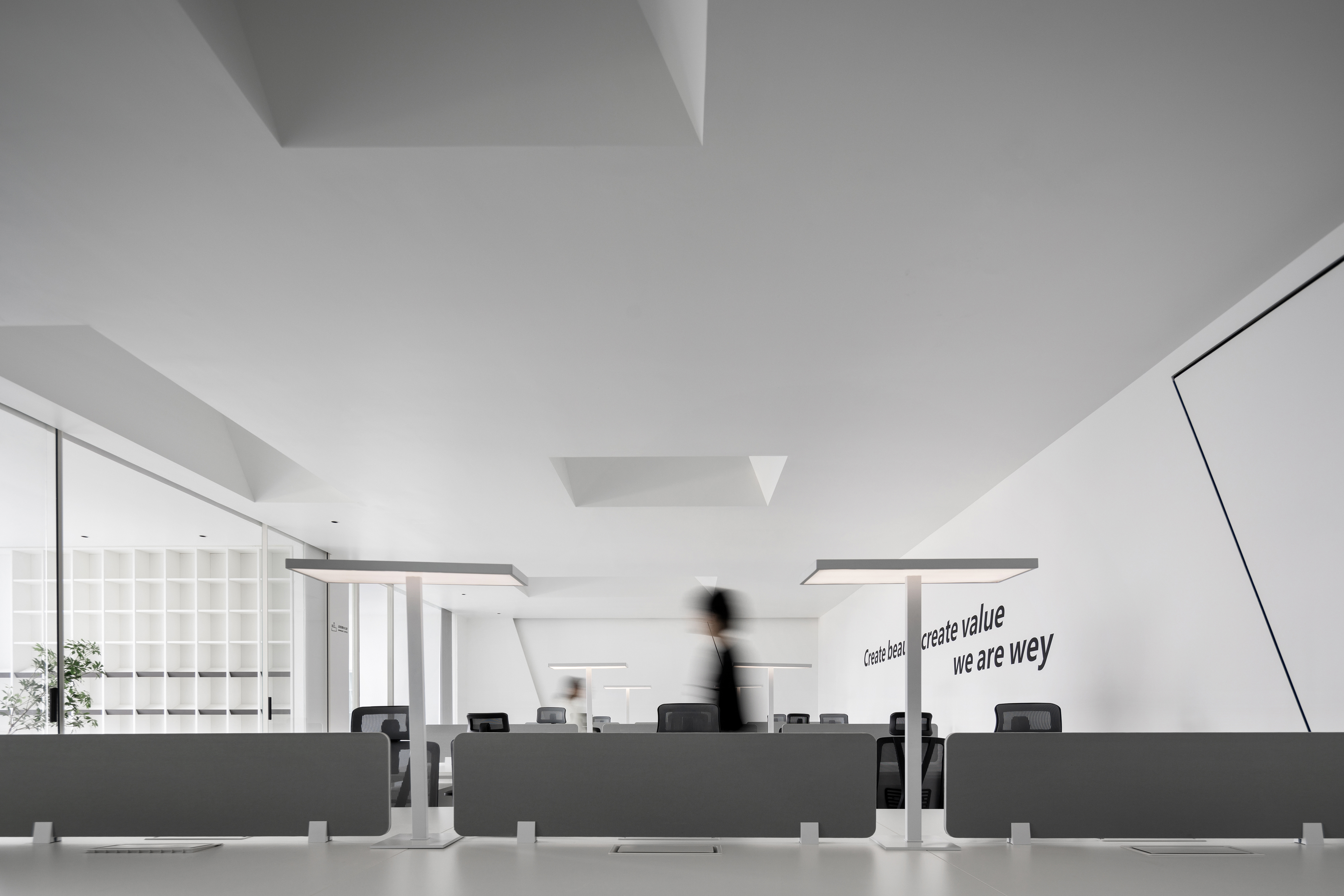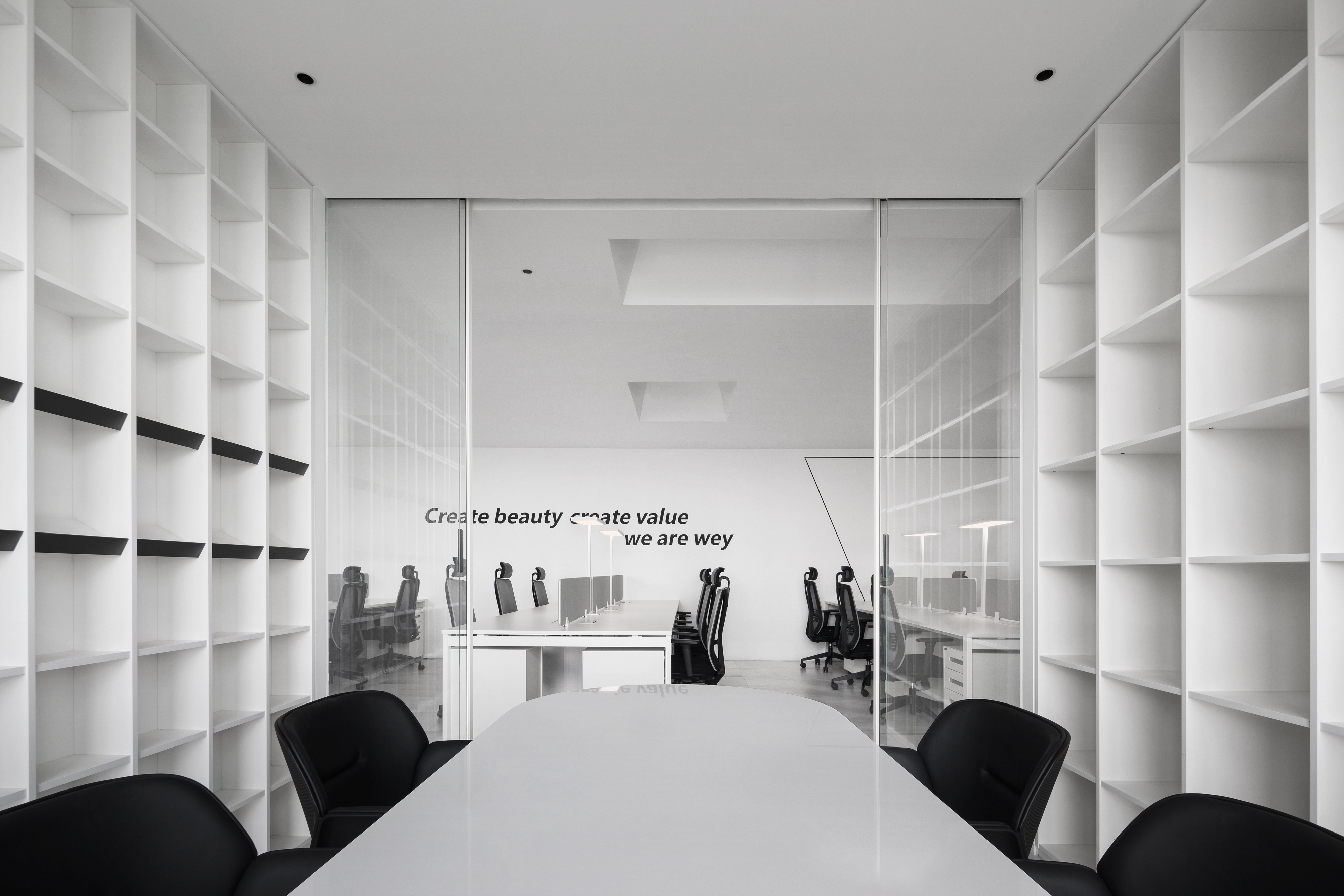 空间意境:以现代的直线和斜线为设计语言,营造出倾斜的,向光的,现在洞穴空间感受
