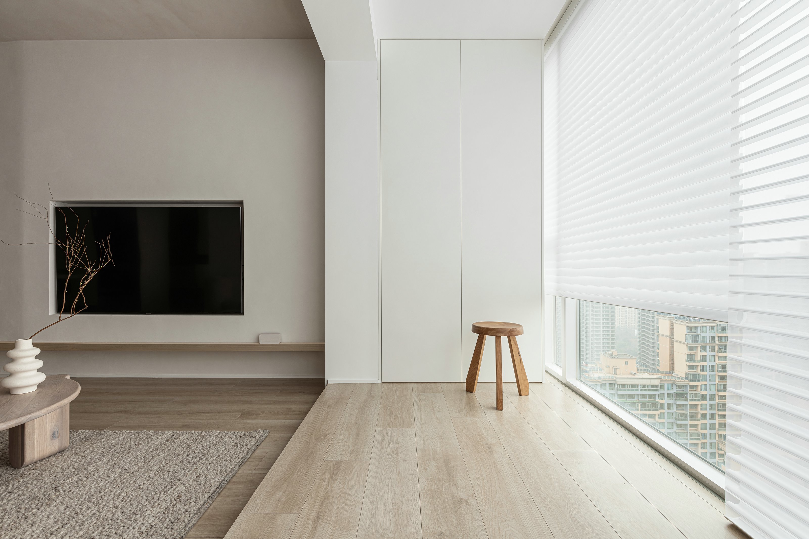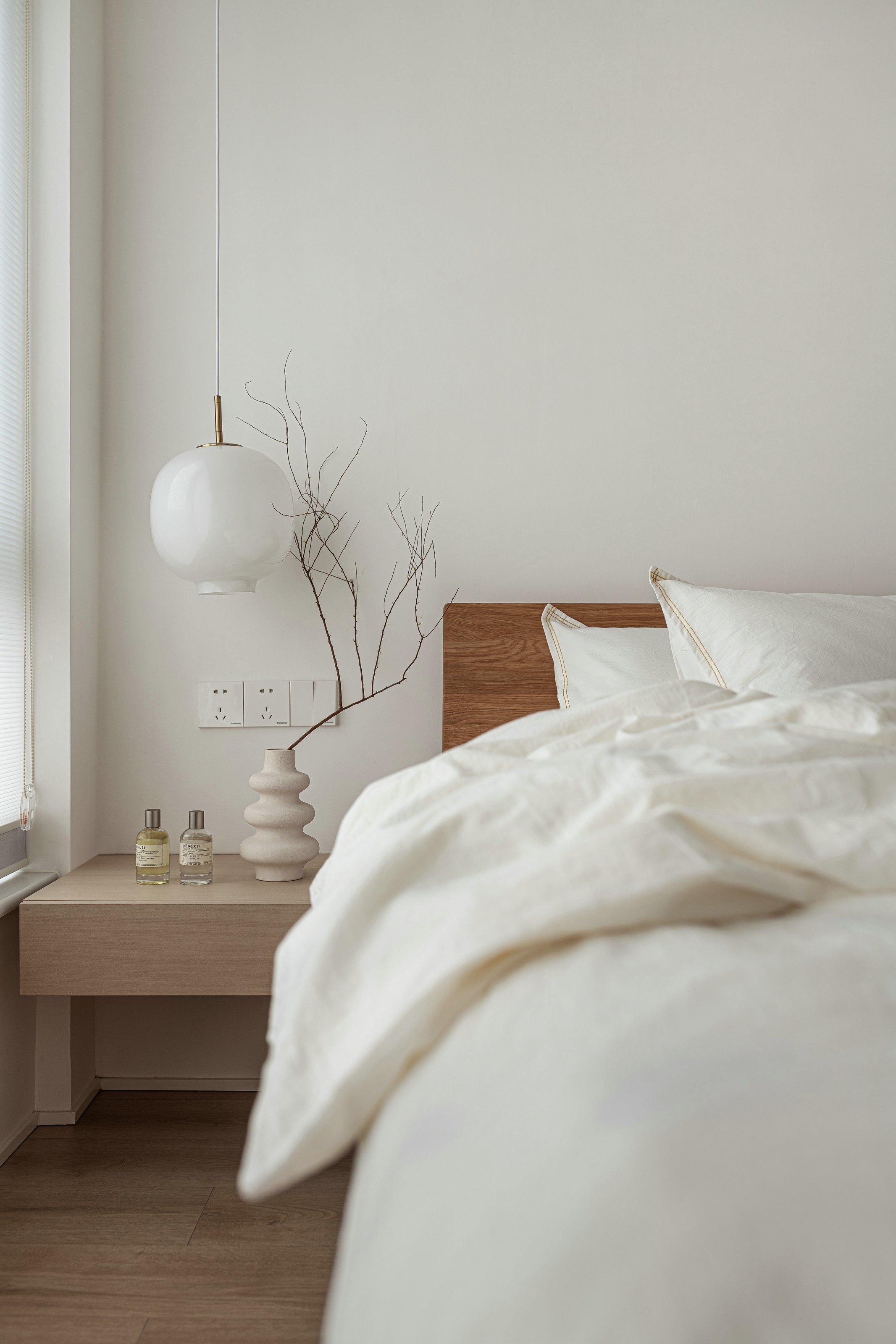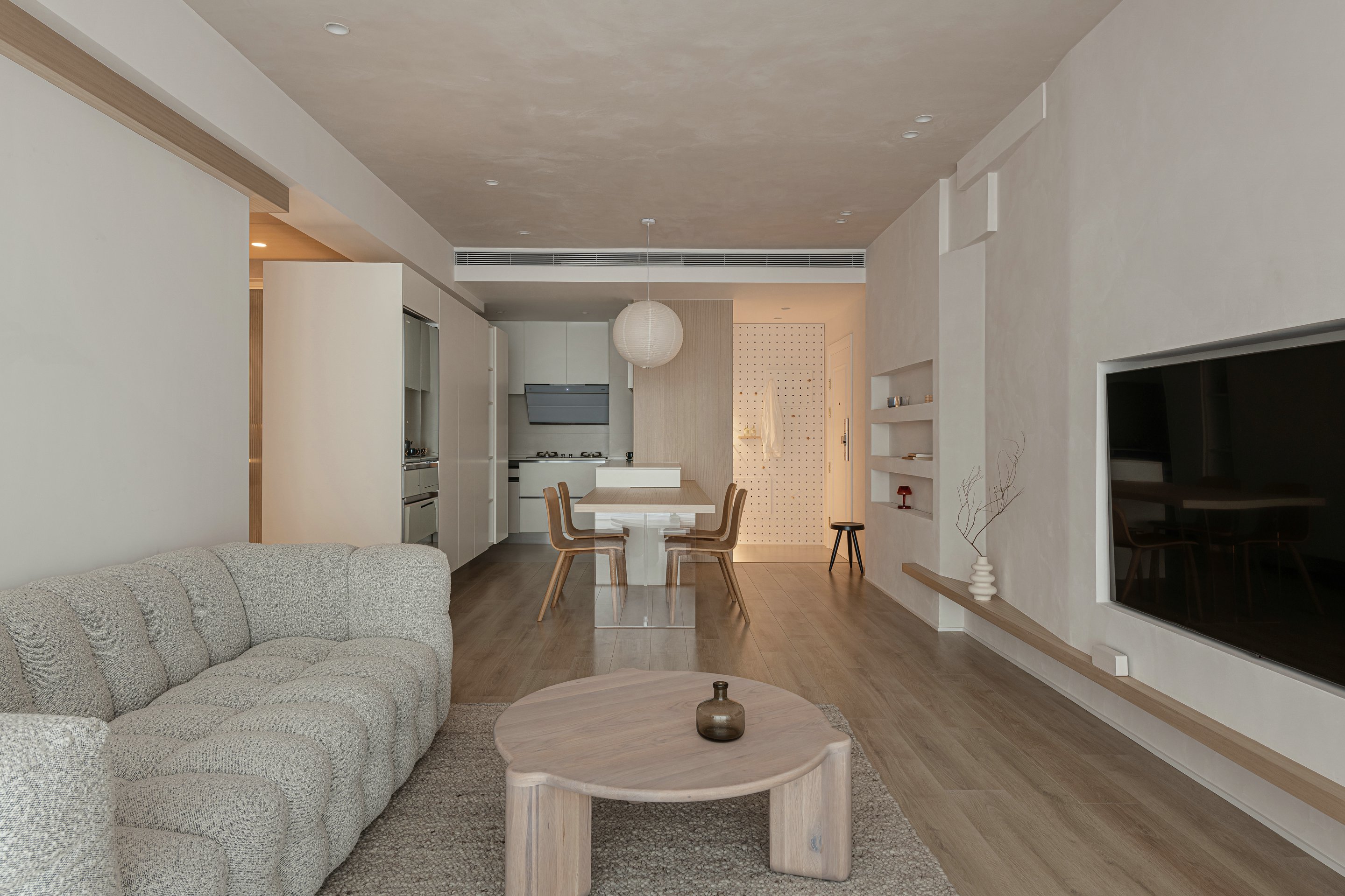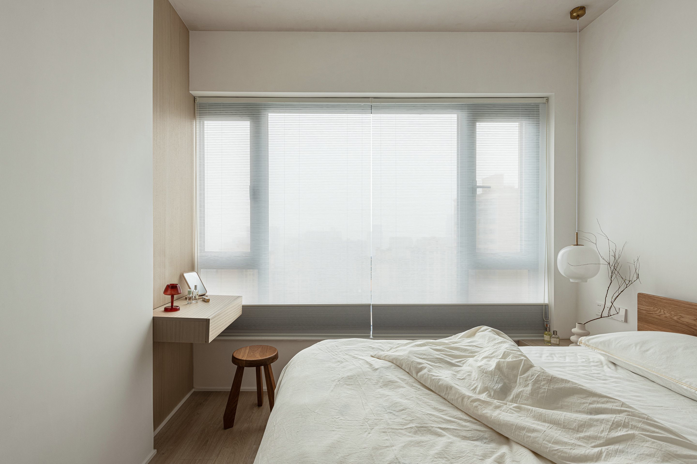 设计选材:选用适度的色彩,白色乳胶漆、微水泥涂料、温润的木质作为本案的主要基调。 家具造型、布艺、窗帘、灯具等材质也都依附于空间结构、硬装质感、做到前后呼应。