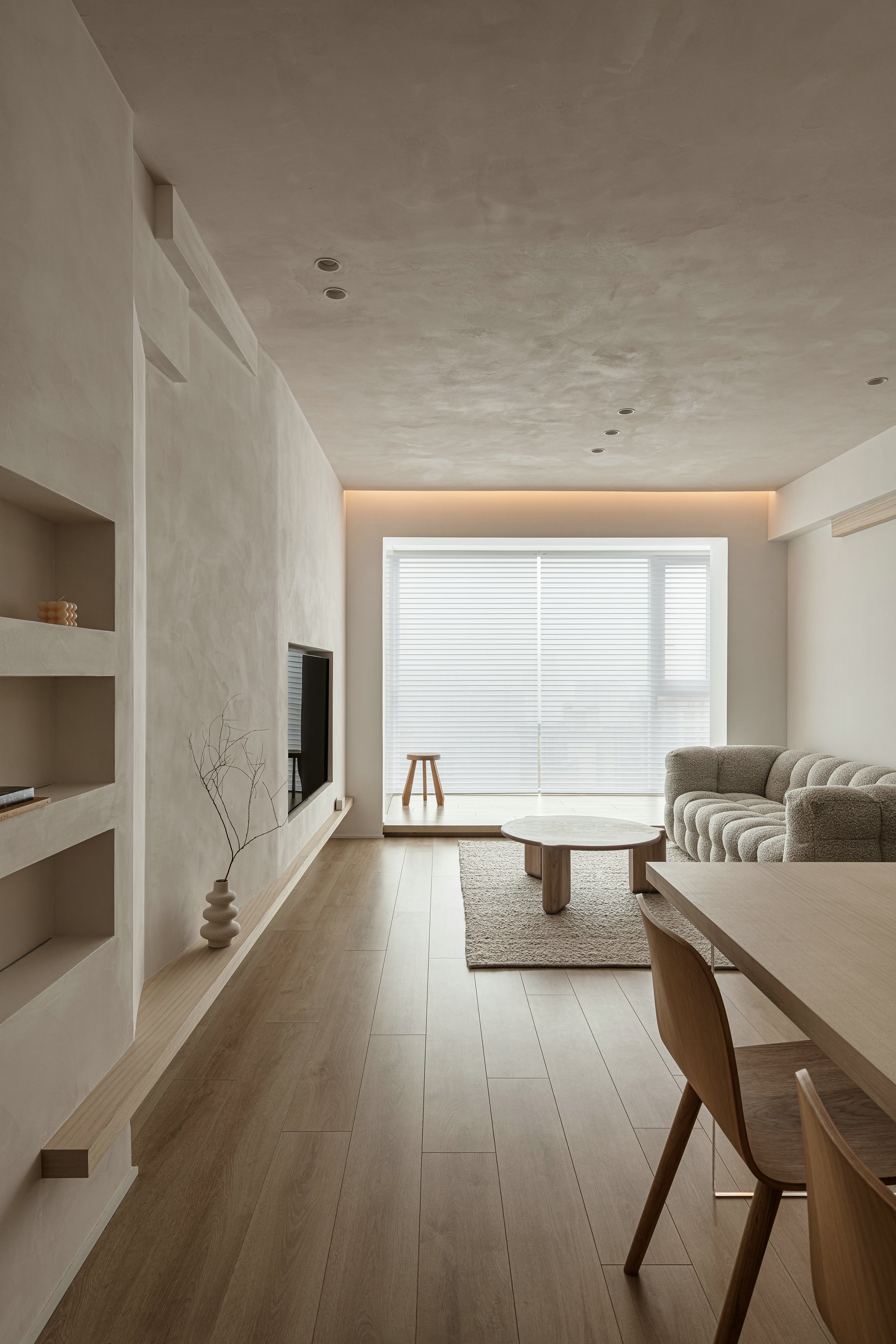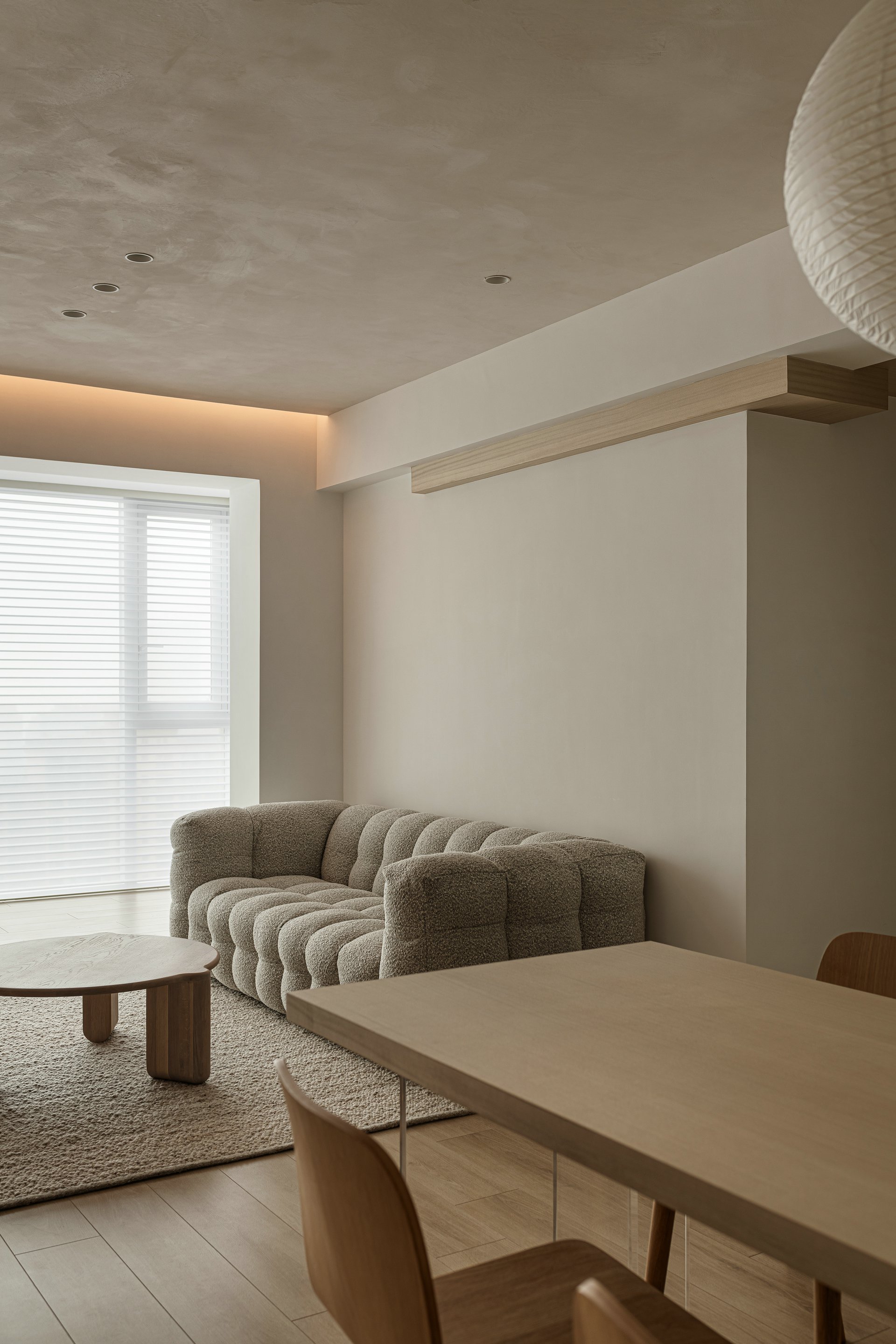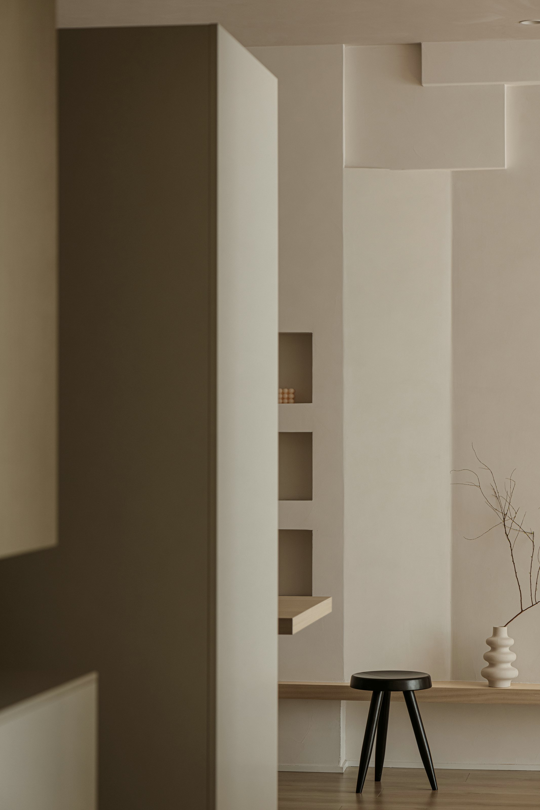 因地制宜,把户型劣势以布局方式和墙、顶、地面独有处理方式变优势。此案致力于顺应结构,自然生长,强调体验感。 -