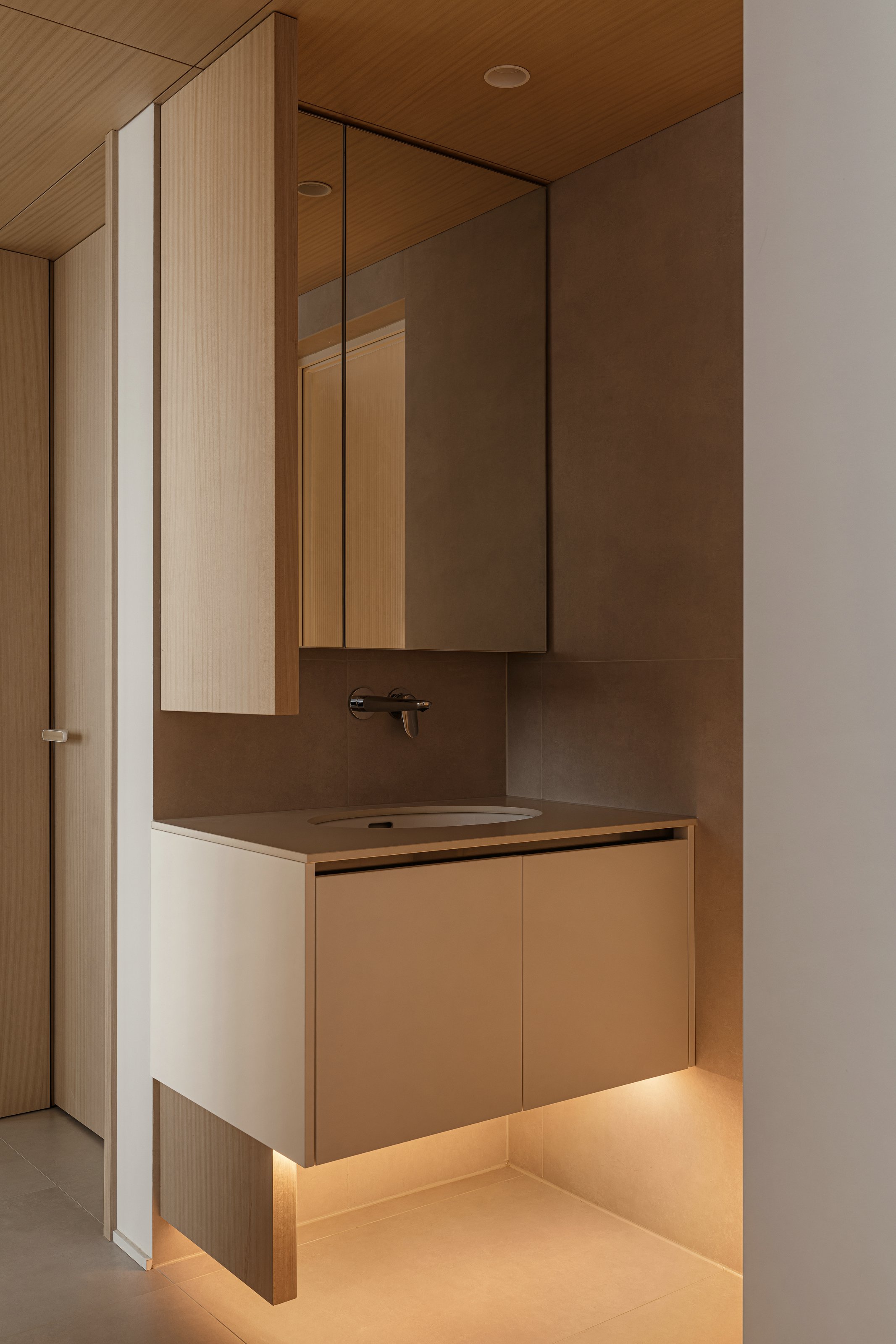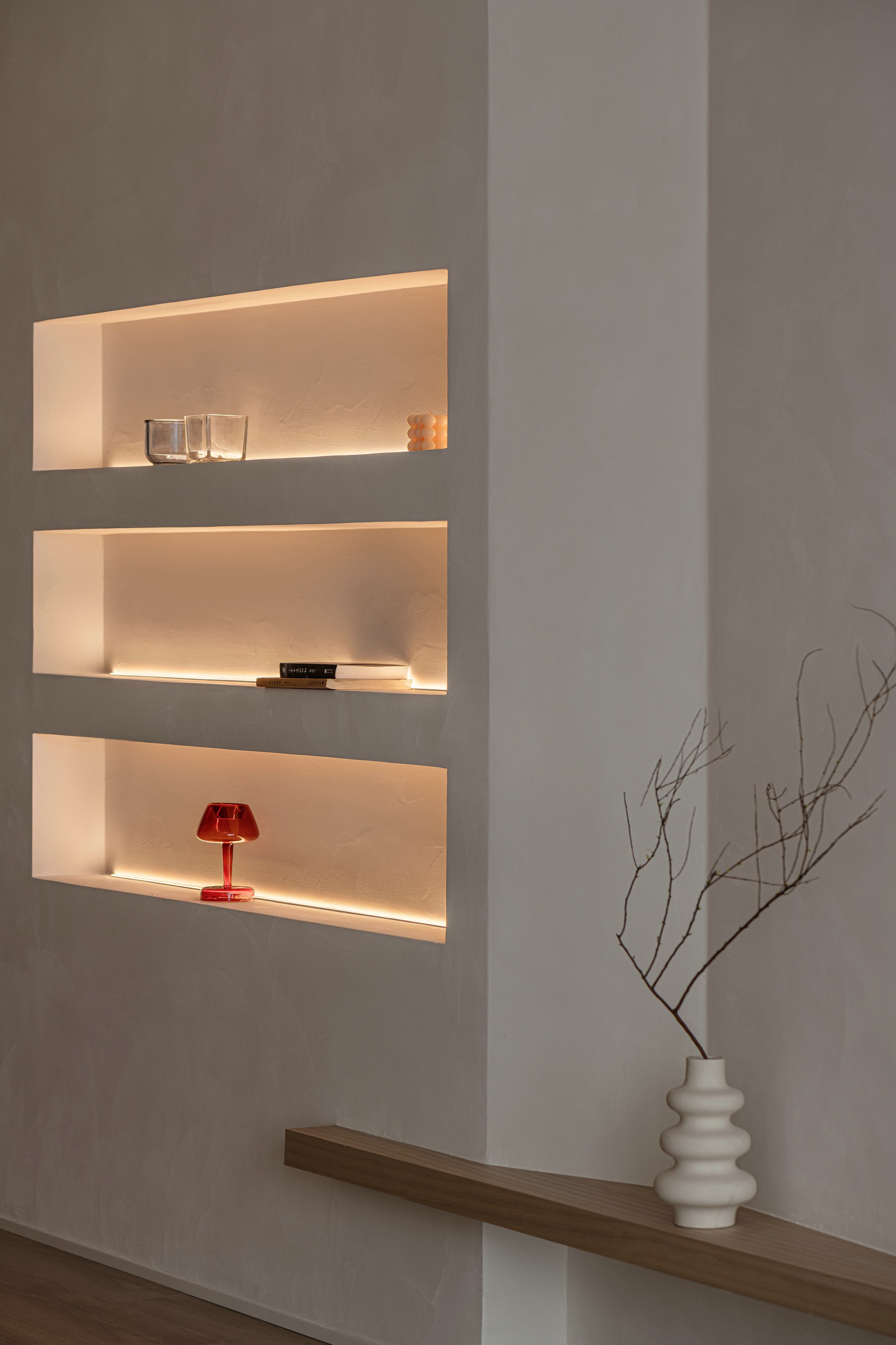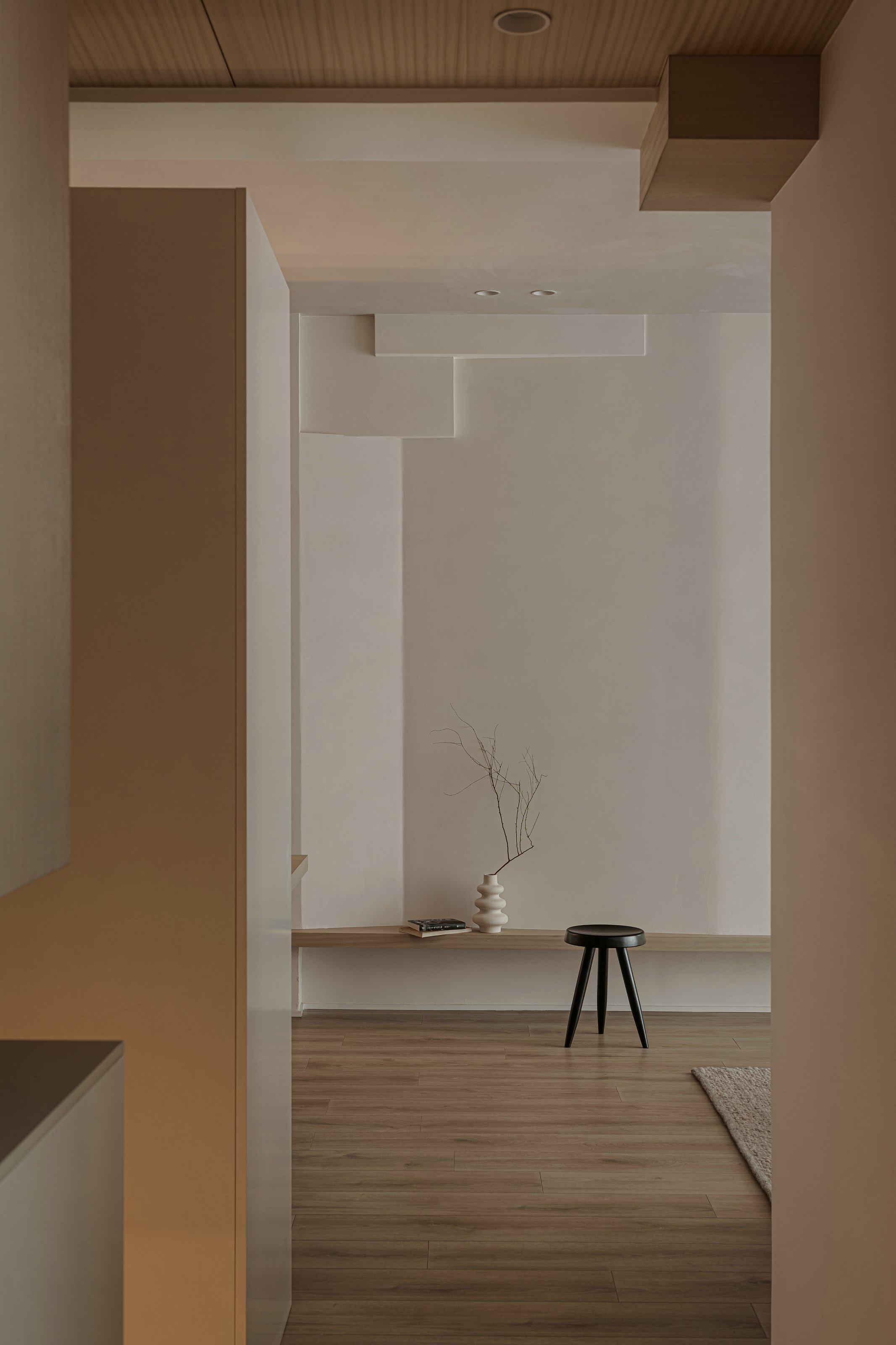 因地制宜,把户型劣势以布局方式和墙、顶、地面独有处理方式变优势。此案致力于顺应结构,自然生长,强调体验感。 -