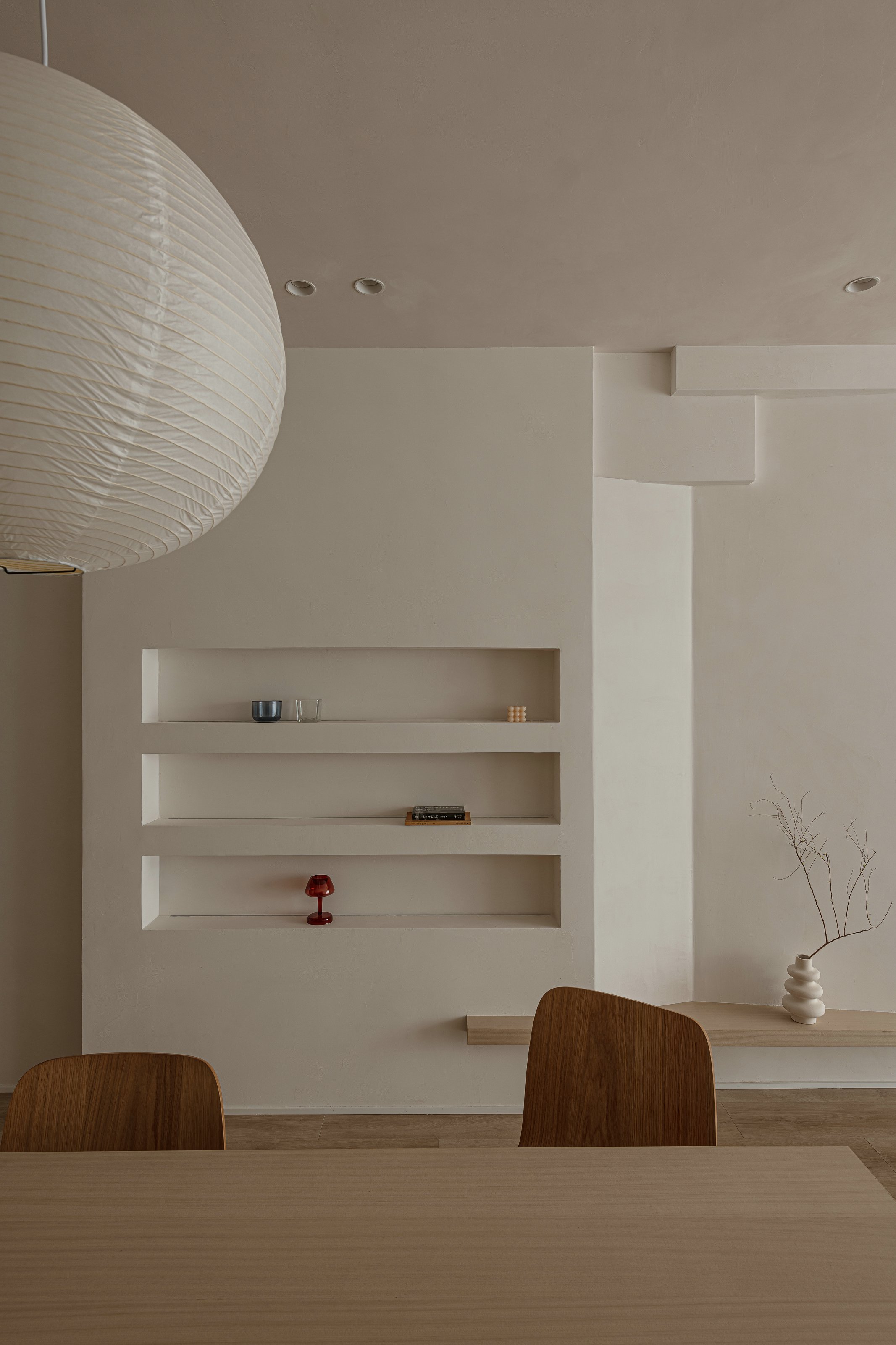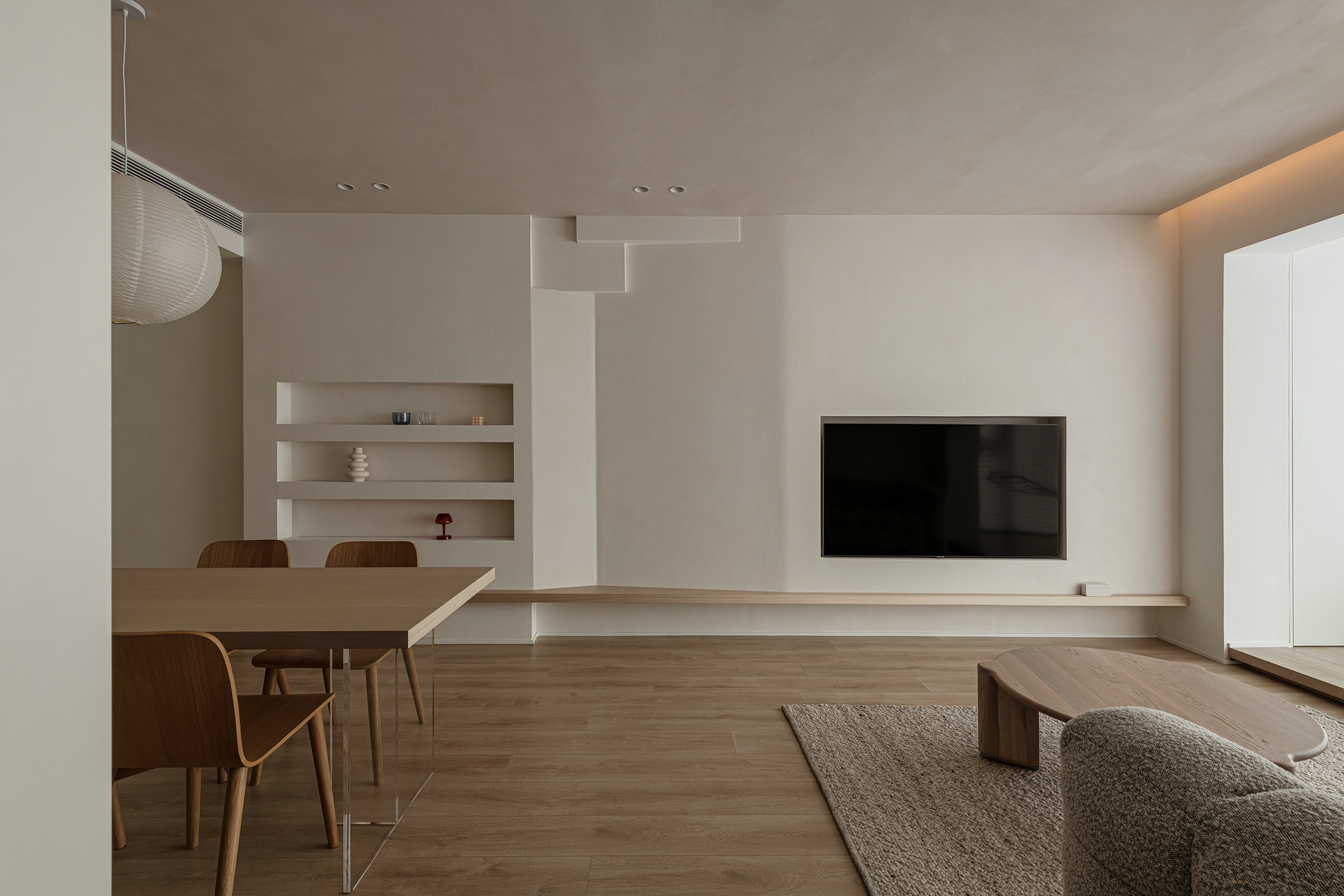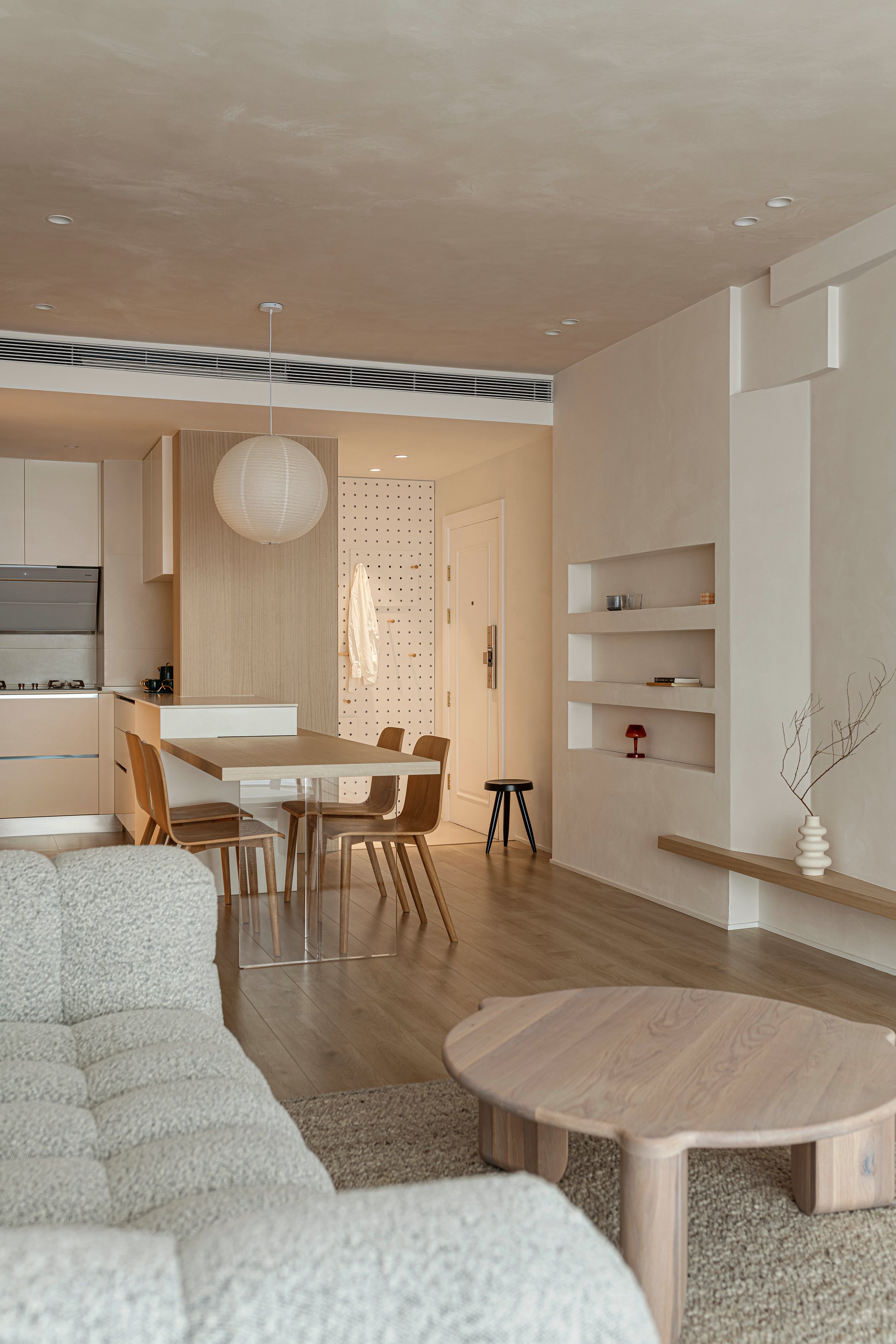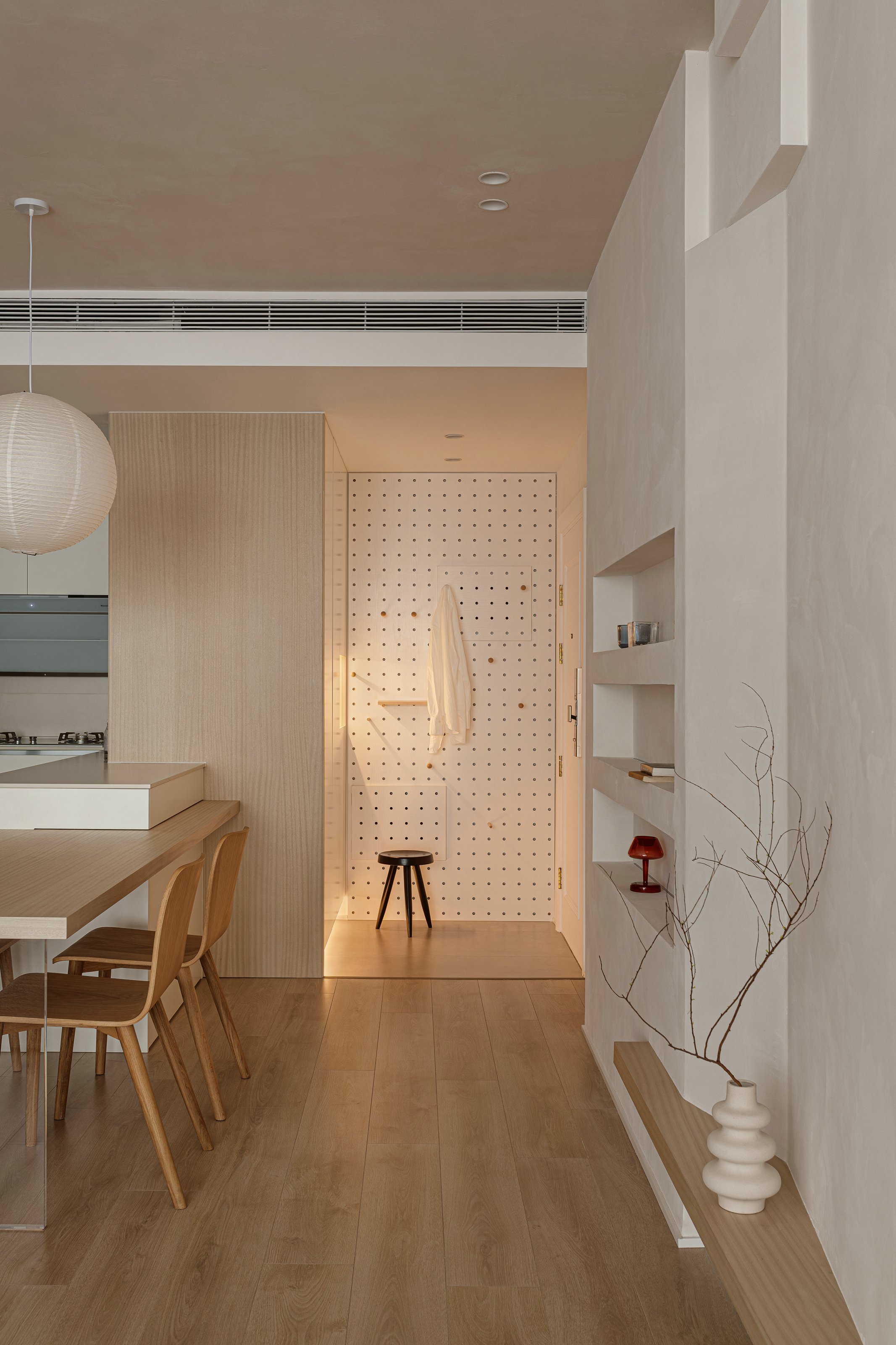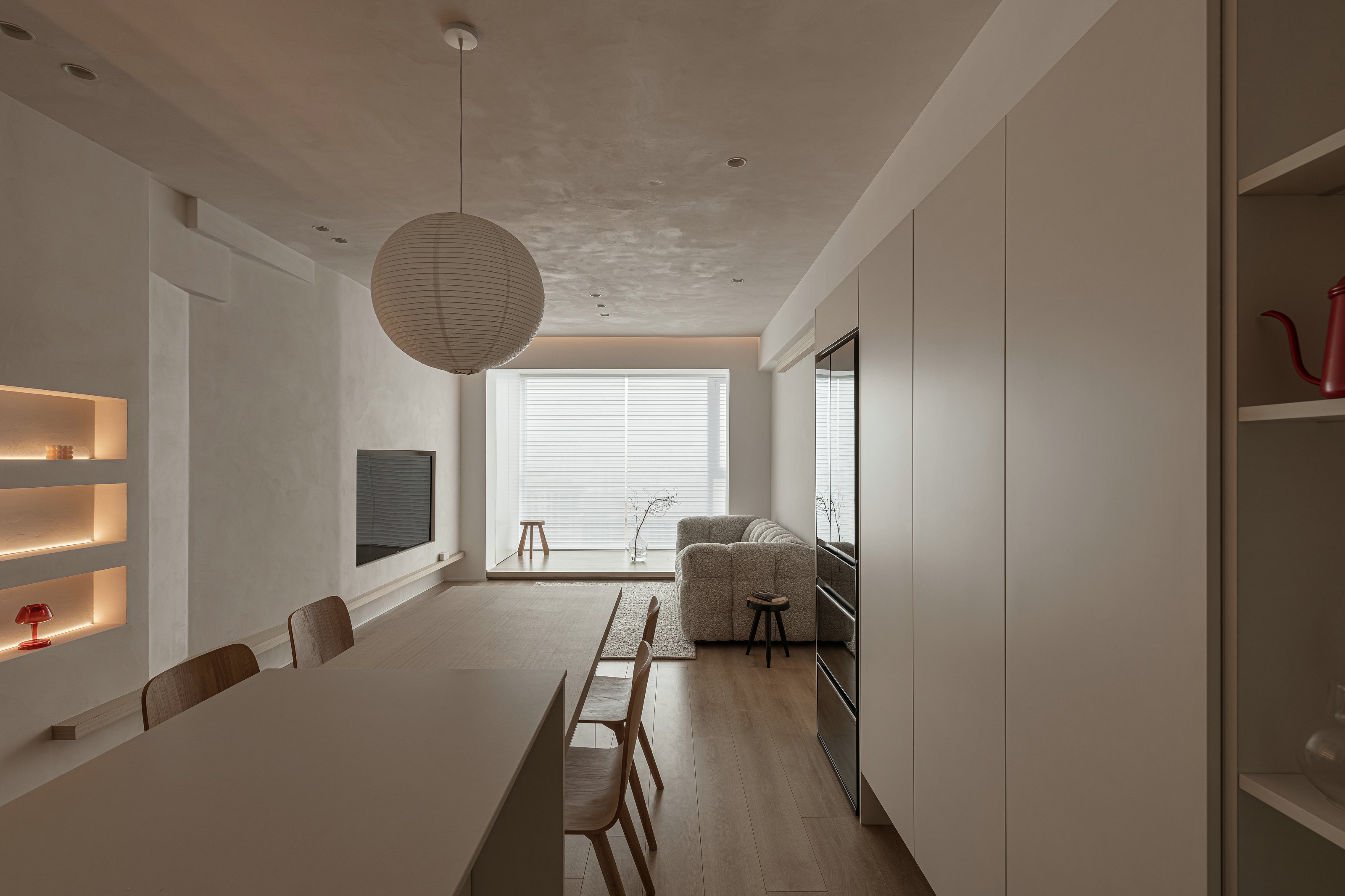 项目定位:1.本案屋主现在的家庭成员是夫妻二人,男主人有在多国的生活经历,女主人是韩国人,有咖啡、茶道、花艺的喜好,两人曾经经营一家咖啡店,两人工作性质长时间在家办公。 2.喜欢做冷餐,希望有做简餐、料理、咖啡、茶道,花艺的空间,希望实现LDK一体化设计,想要更多更实用的收纳空间, 3.预留小孩房。 4.因户型面积偏小,承重墙较多,希望有好的设计手法打破原户型布局,开拓视野、增加空间多样性和趣味感。