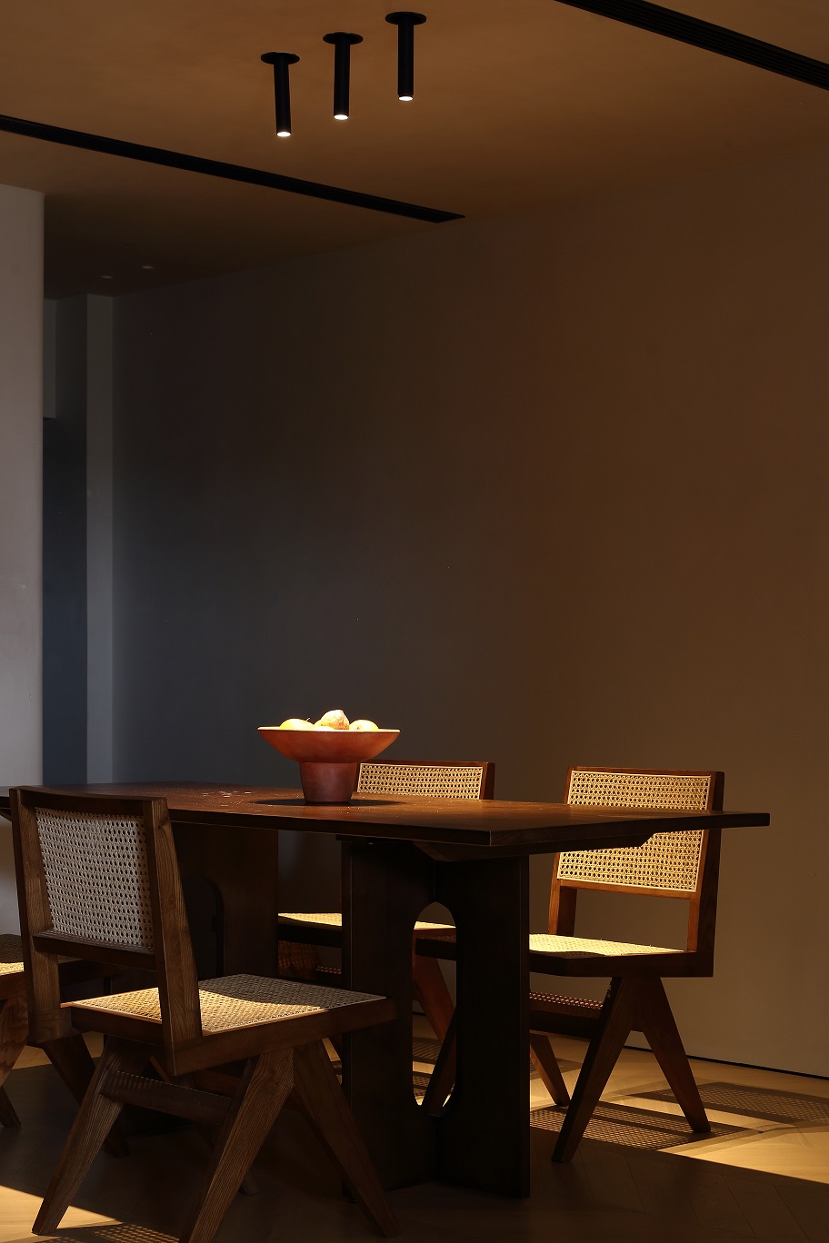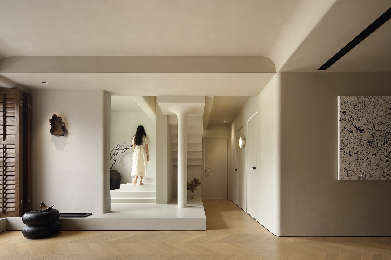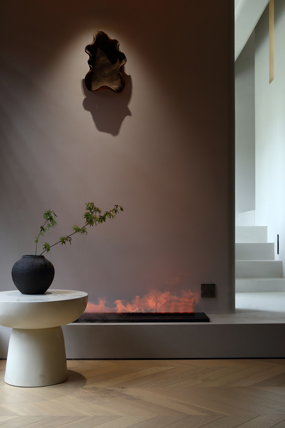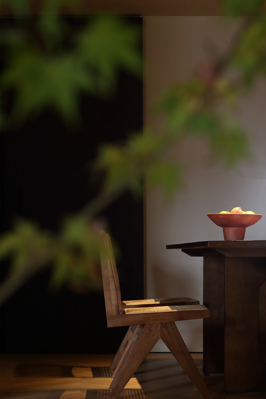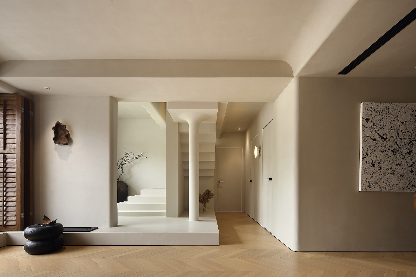 设计选材:除回归空间本质,亦衬托出空间器物,以及窗外打造的一花一木。器物虽不言,但仿佛又诉说着故事,微水泥搭配原木地板,细腻的材质肌理与光线相互交叠。