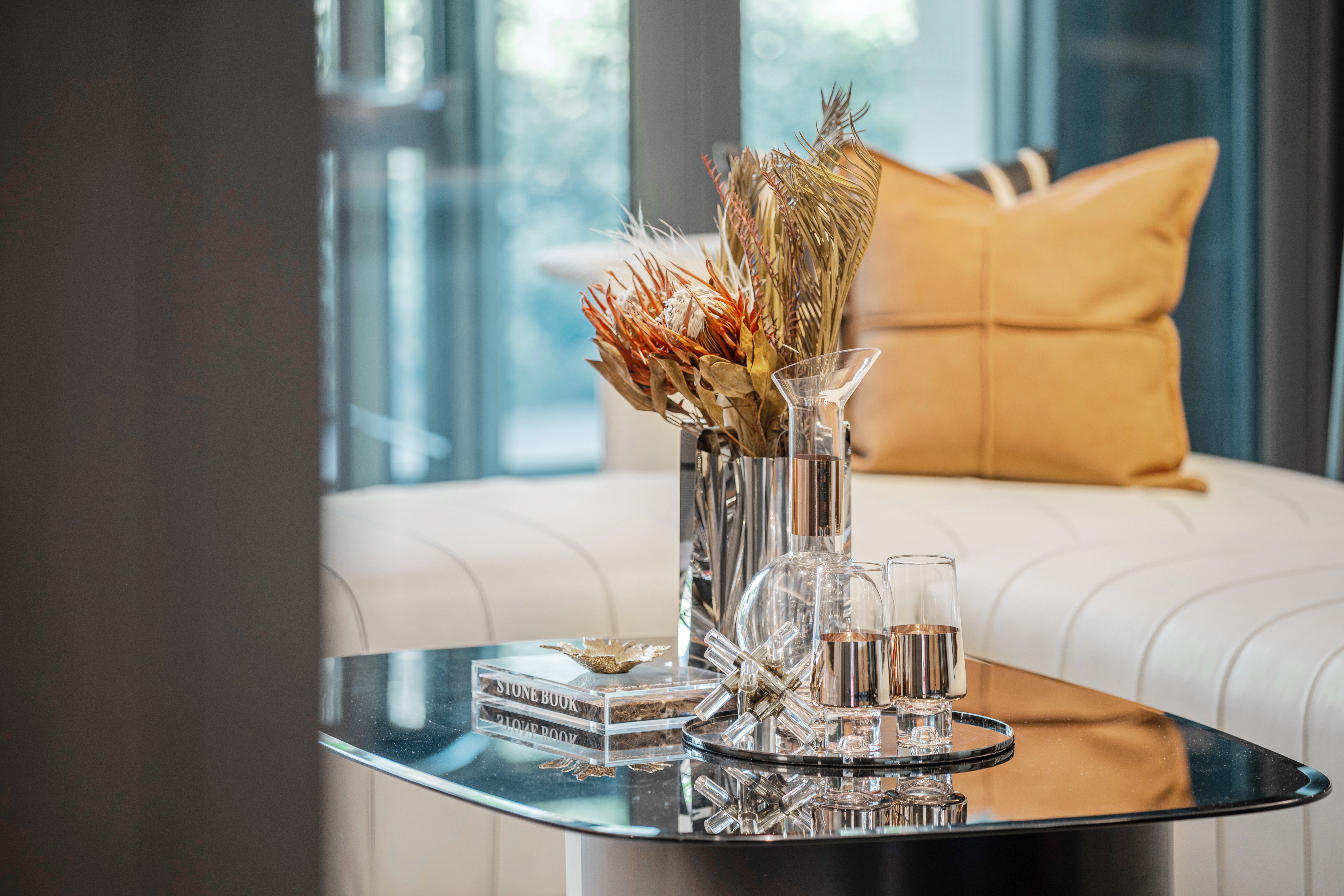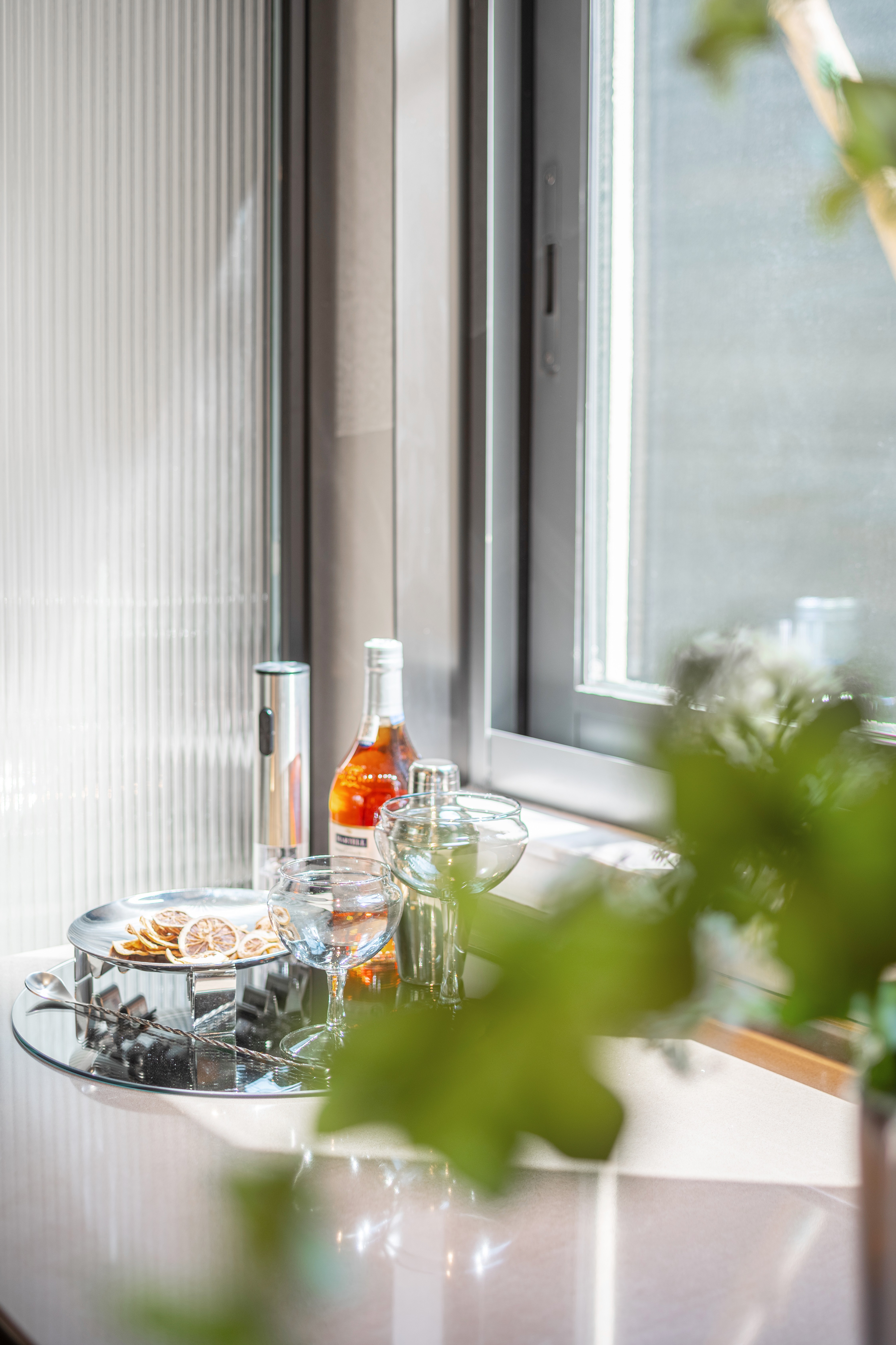 设计师摒弃高饱和的色彩,大面积保留皮革与木质为高级的原生态,同时嵌入金属、玻璃等细节,优雅与奢华共生的质感袭面而来。金属元素,不经意间与洒落空间的各个角落,在整体高级调性中多出几抹张力,让沉稳的空间流光溢彩,似两个时空的对话,也将意式美学得以完美呈现。