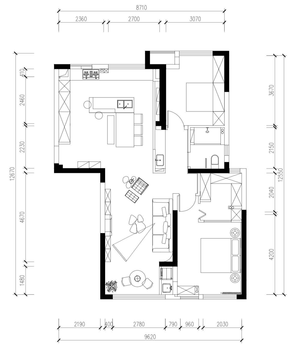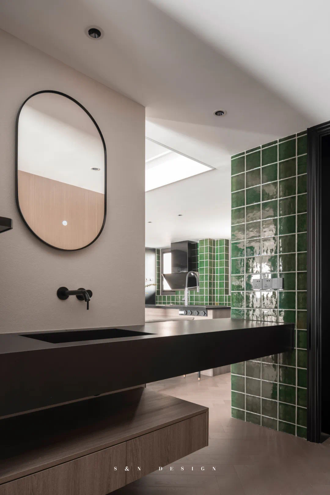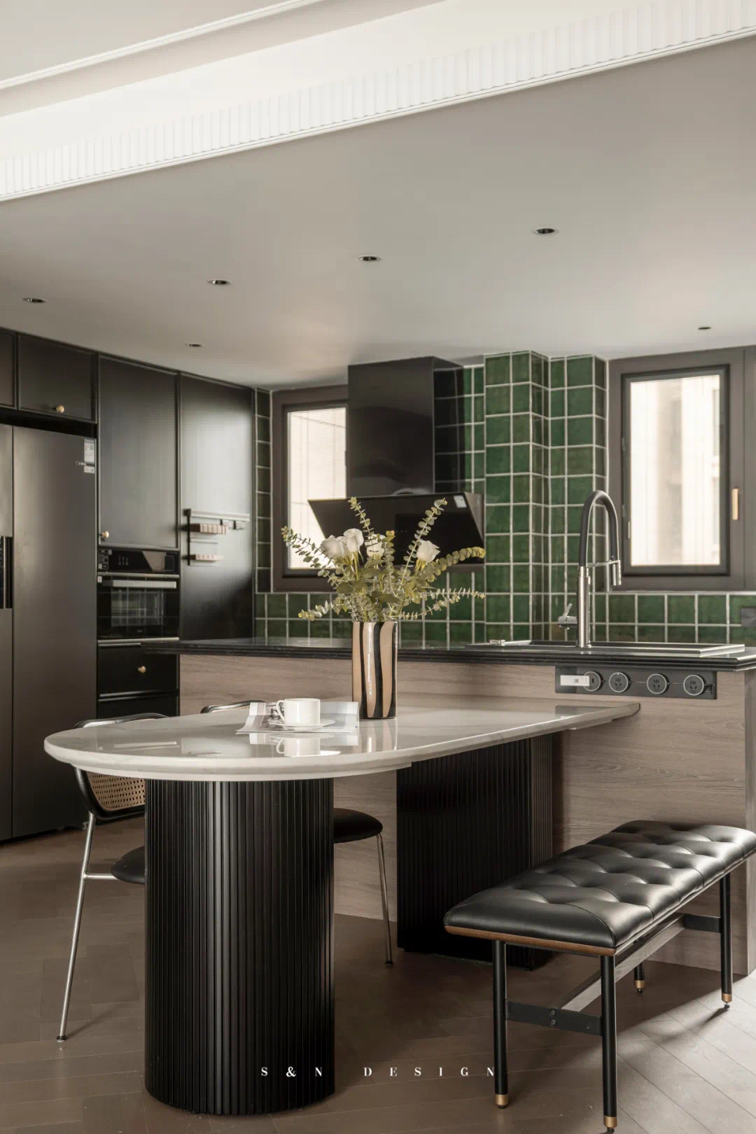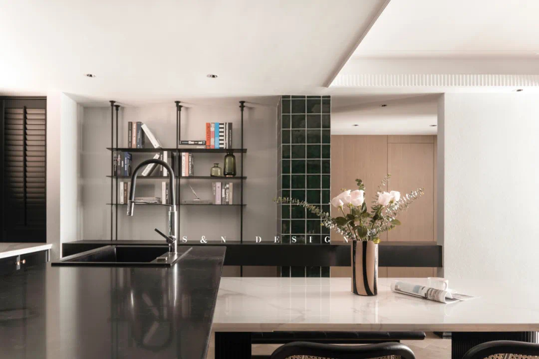厨房与北边空中花园打通合并成大的餐厨空间。周围动线流畅。