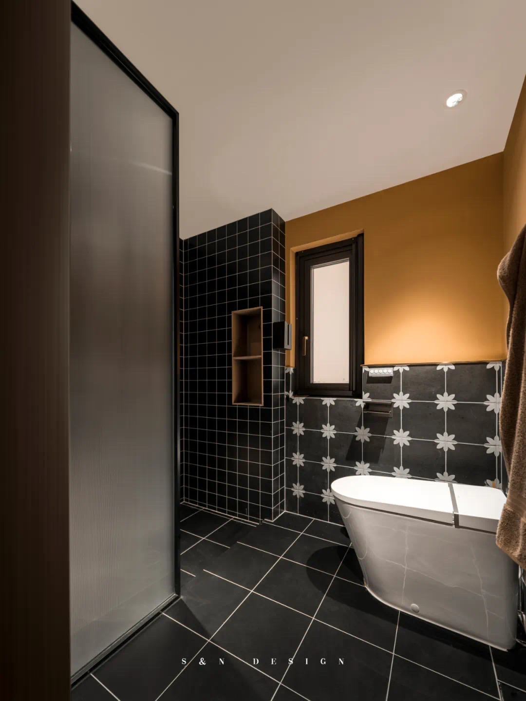 卫生间南瓜橙与黑的碰撞,复古不失时尚。