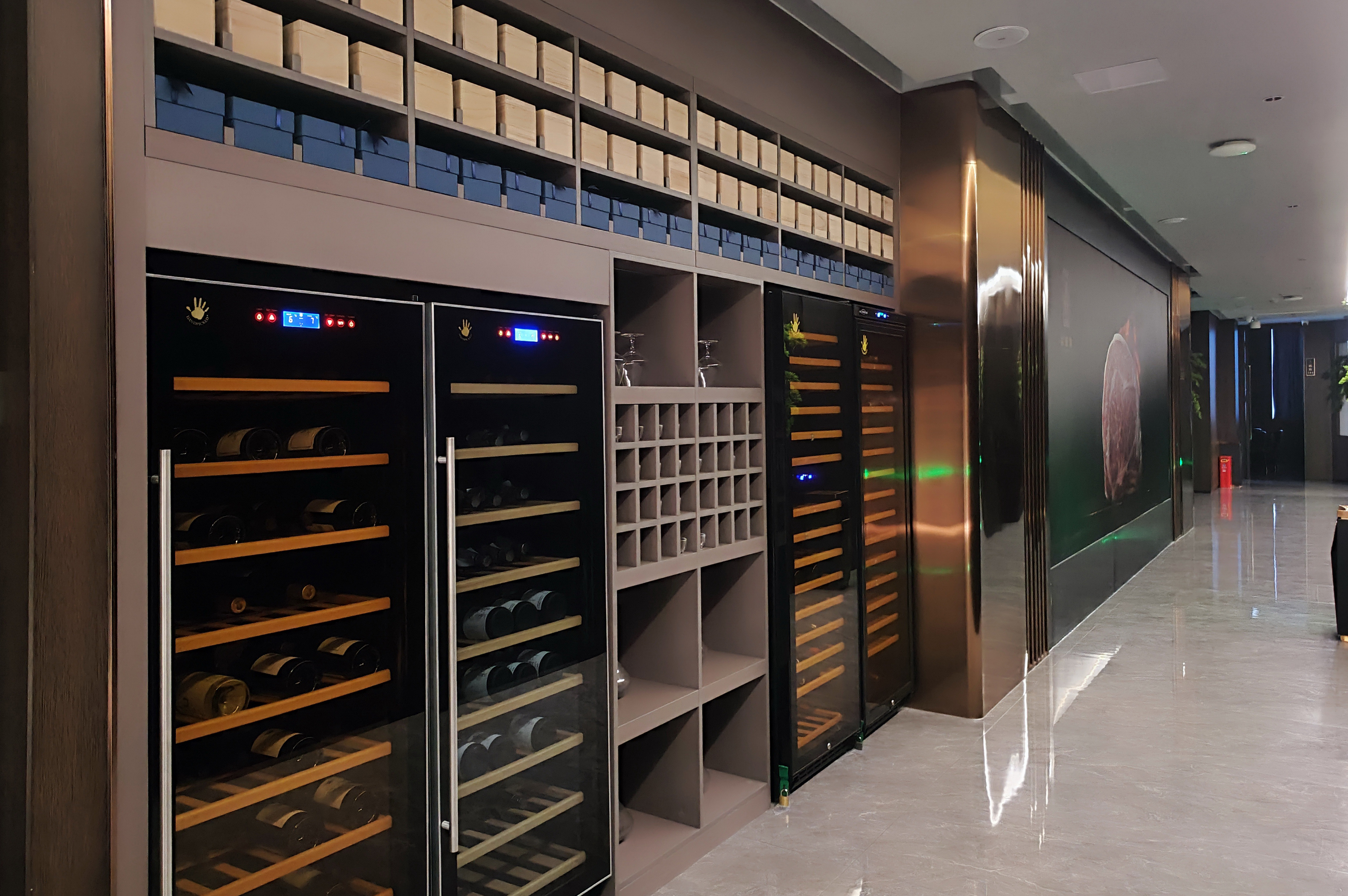 本案火锅房间和烧烤房间同时采用两种不同颜色的生态板,使不同功能的房间从材质上达到了协调统一,景观配置也是根据房间功能在整案统一基础上又有小区别。。