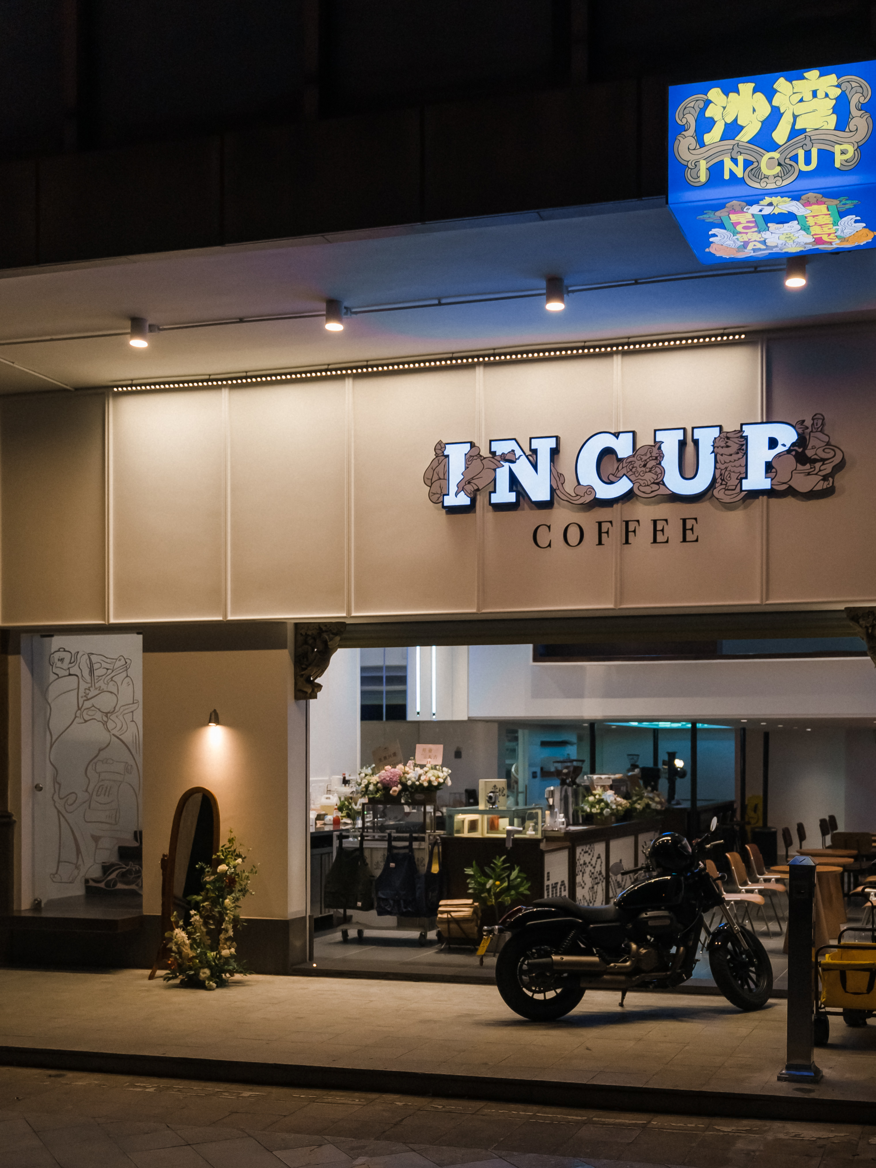 项目定位:我们持续观察内卷的咖啡行业,从1.0精品咖啡—2.0早C晚A—3.0 咖啡简餐,但更深层的。本次的店铺位于社区内,我们与咖啡品牌"INCUP"联名打造了这个集“咖啡、精酿、简餐、传统文化、潮流派对”于一体的空间。