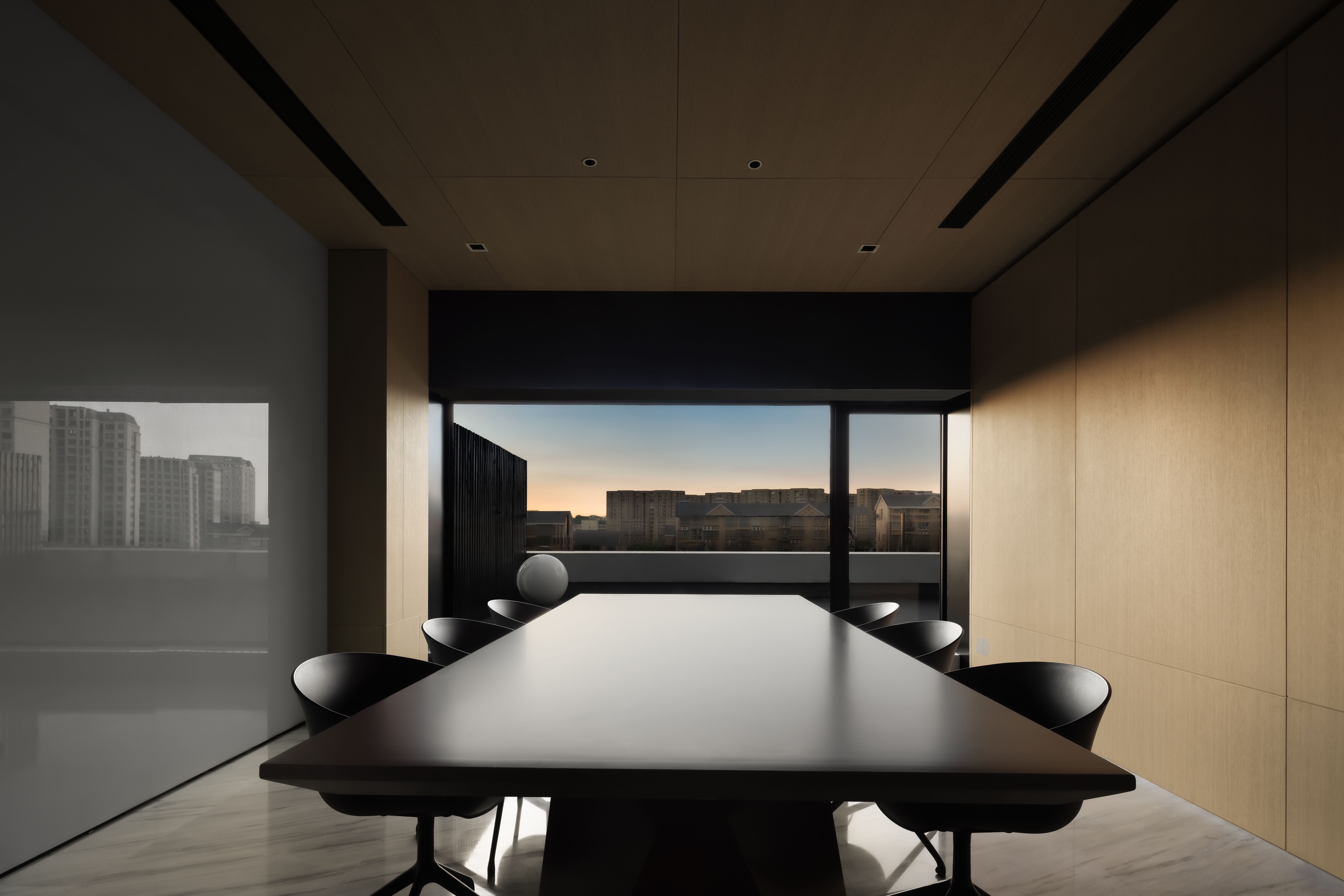 空间布局:1、打造会议室露台为一体的交互空间