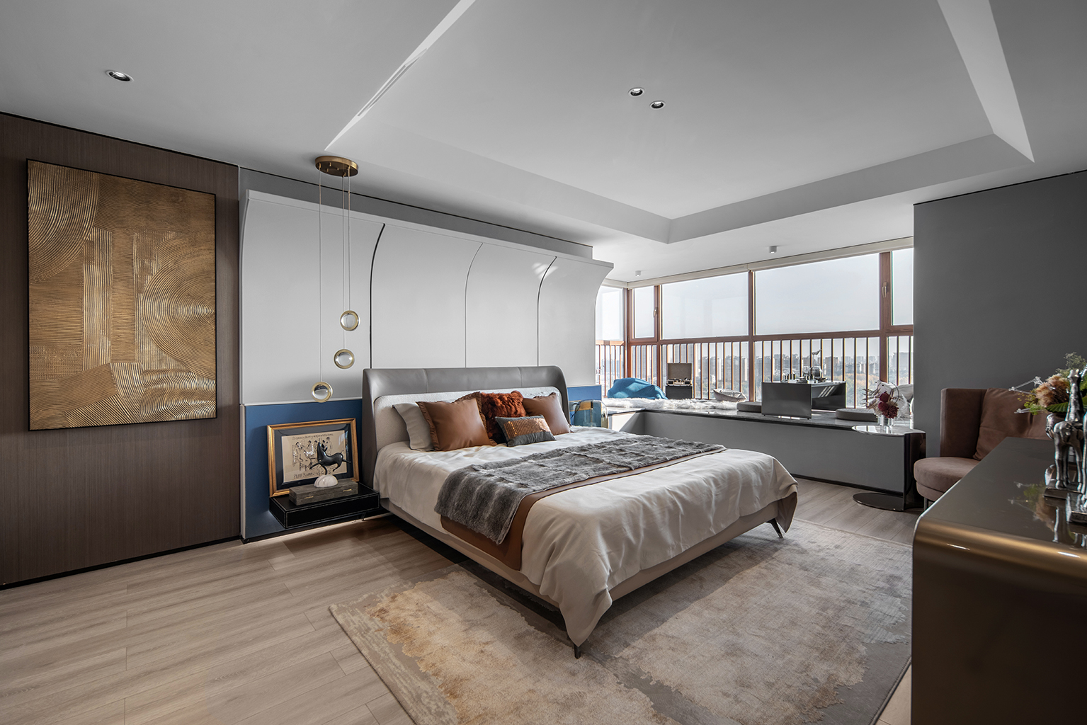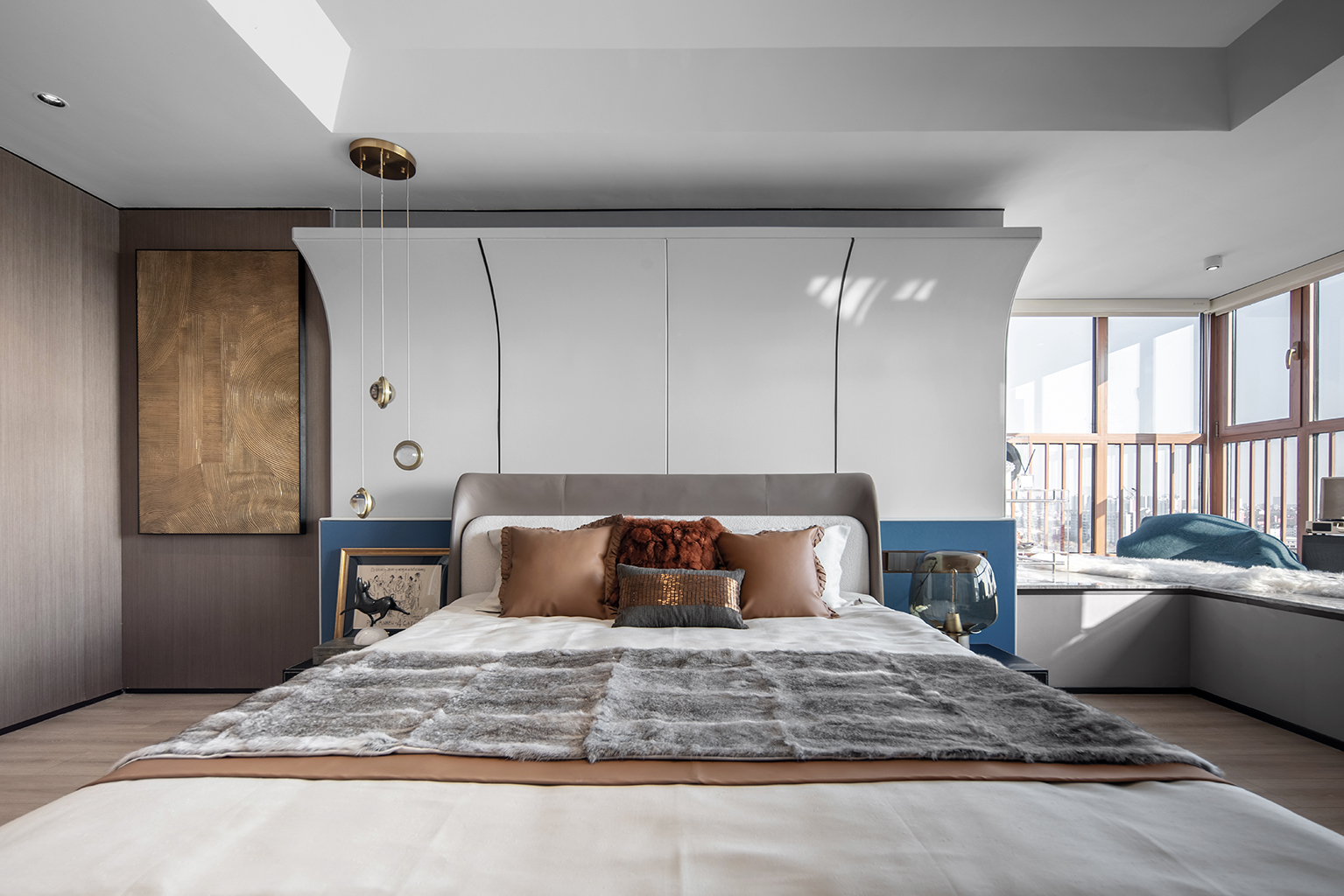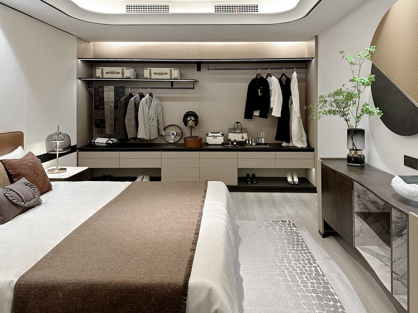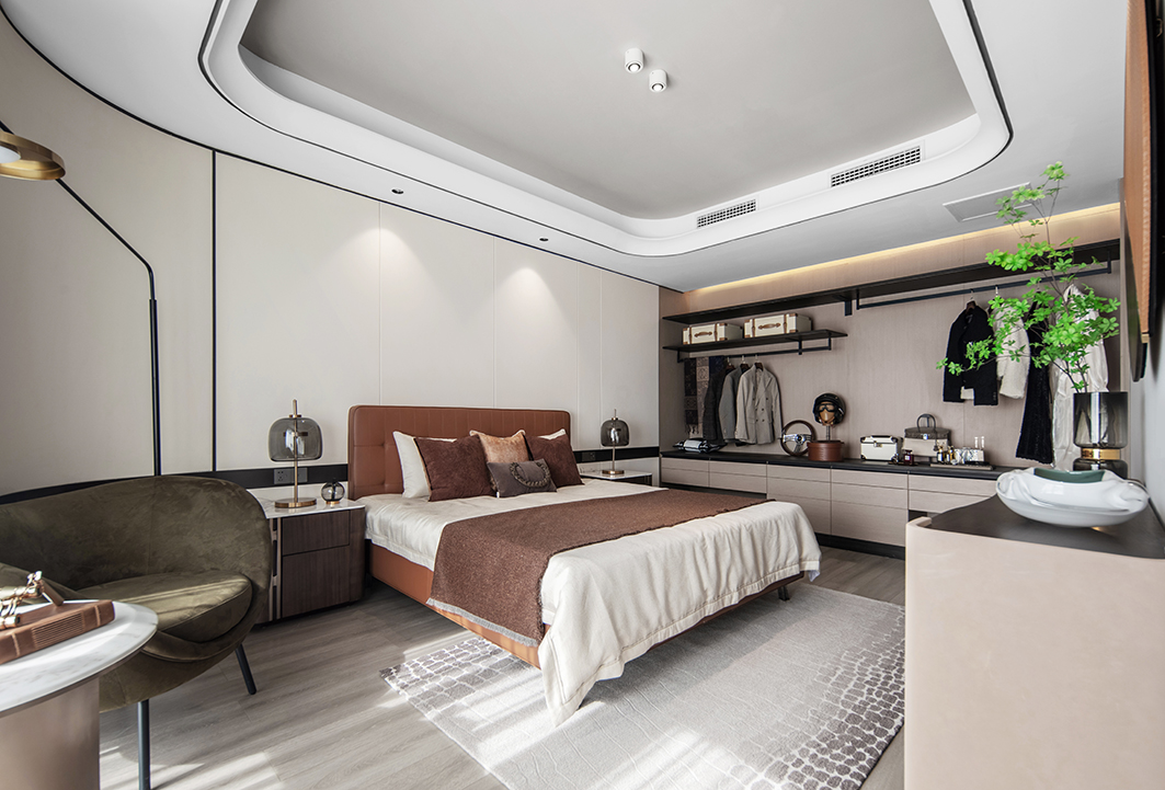 用户体验:大平层相对于普通住宅产品,在户型创新、空间布局方面优势明显,大幅提高了空间的有效利用率。大面宽景观以及奢阔的卧室布局及构建,从玄关到卧室层层递进的关系脉络呈现,移步换景,使空间颇具尺度感和礼序性。