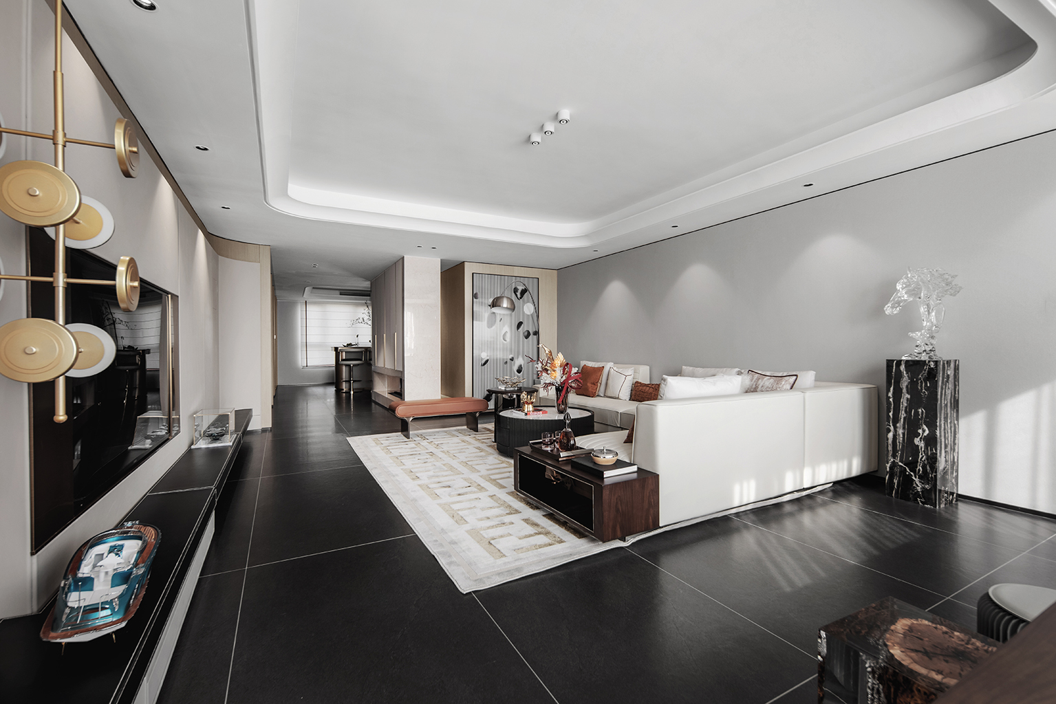 现代港奢风格精致舒适,在空间氛围上大气时尚、包容、多元但又颇具理性。