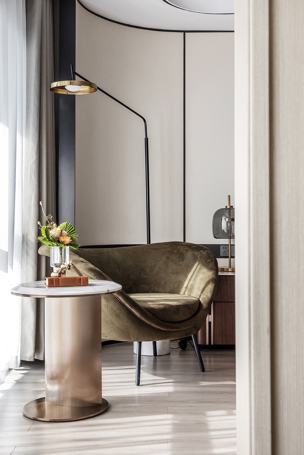 客房:曲线的舒展力、优质的面料、精湛的工艺,及温馨的设计。开放式衣柜的便捷度和新型体验,引导新的生活方式。拥有独立的景观阳台陪伴独处的时光。