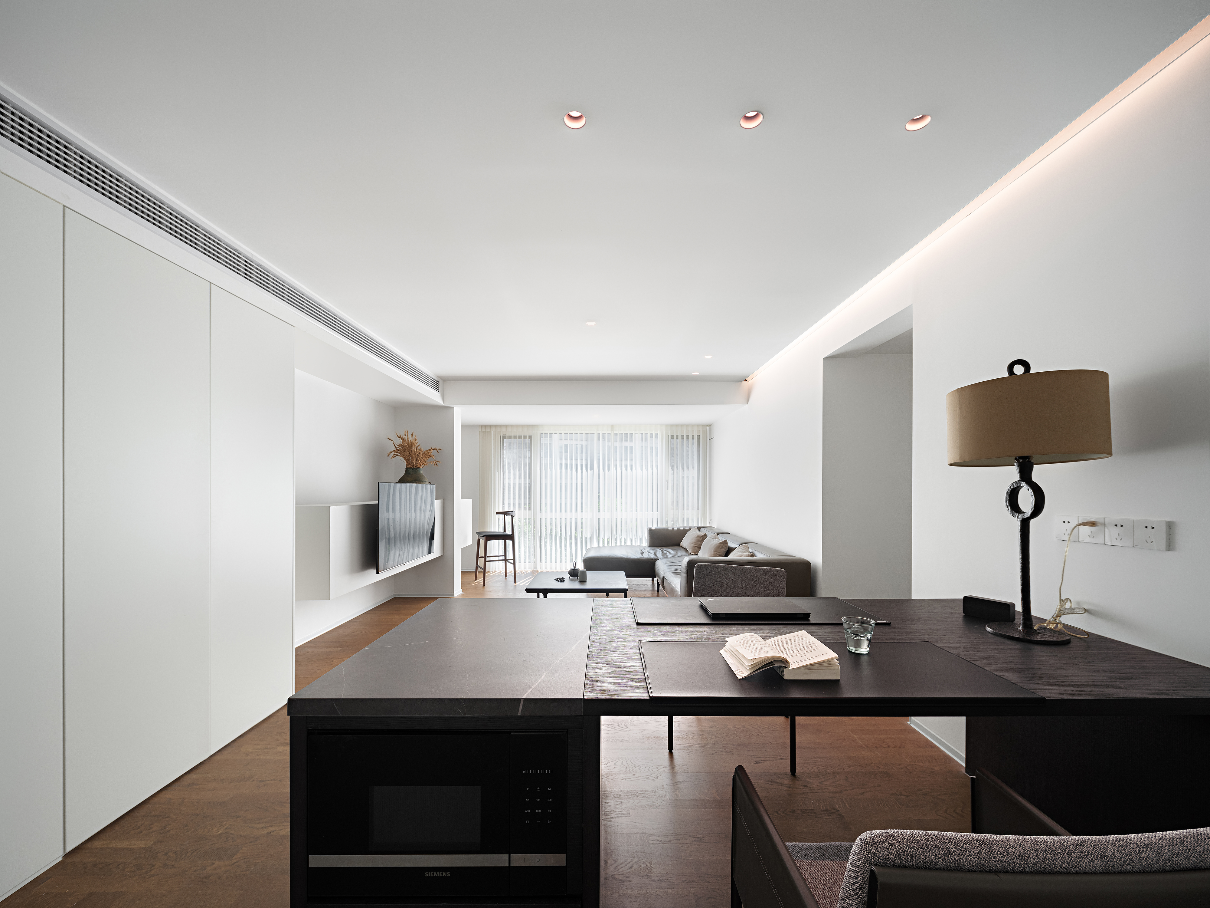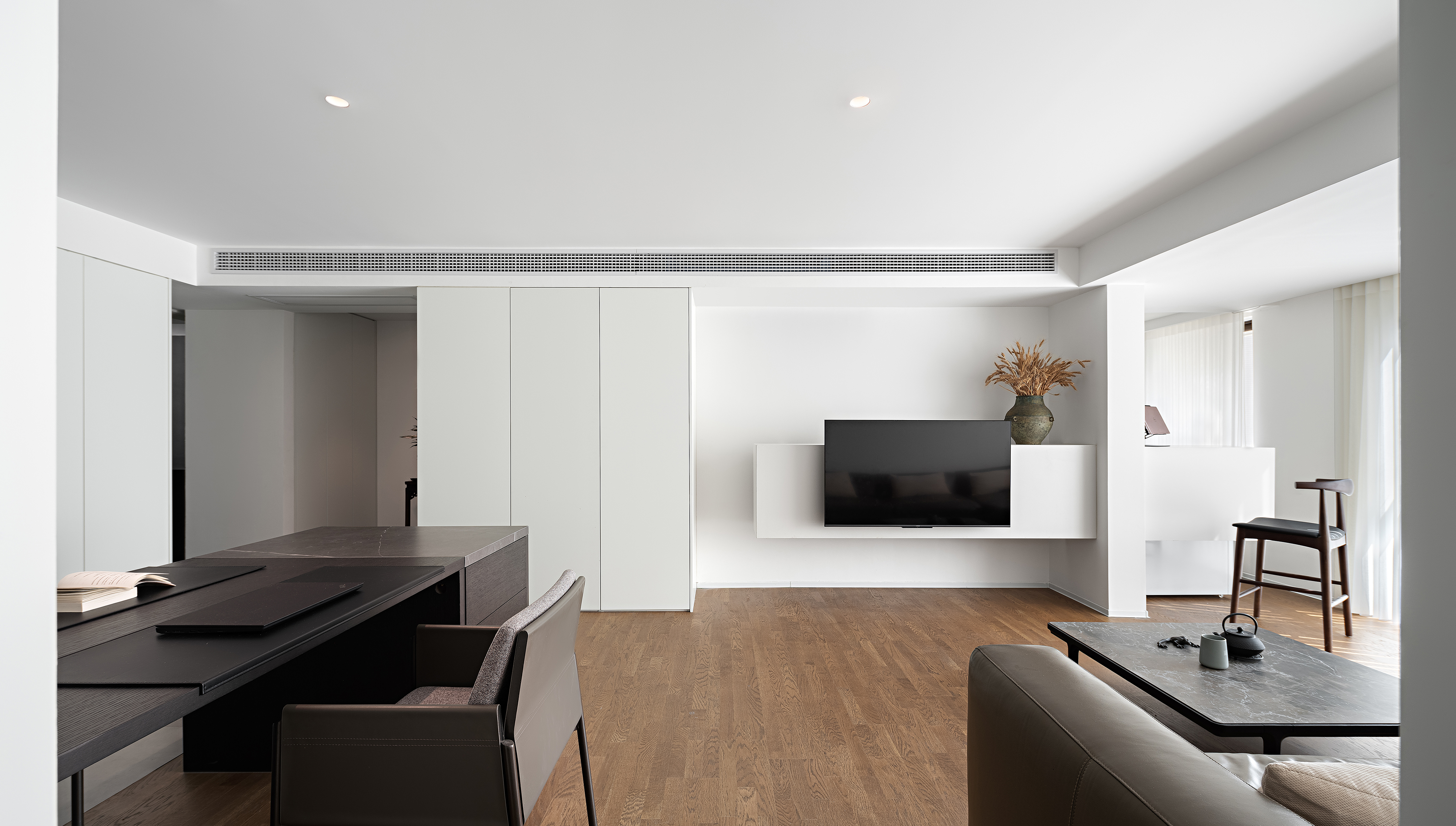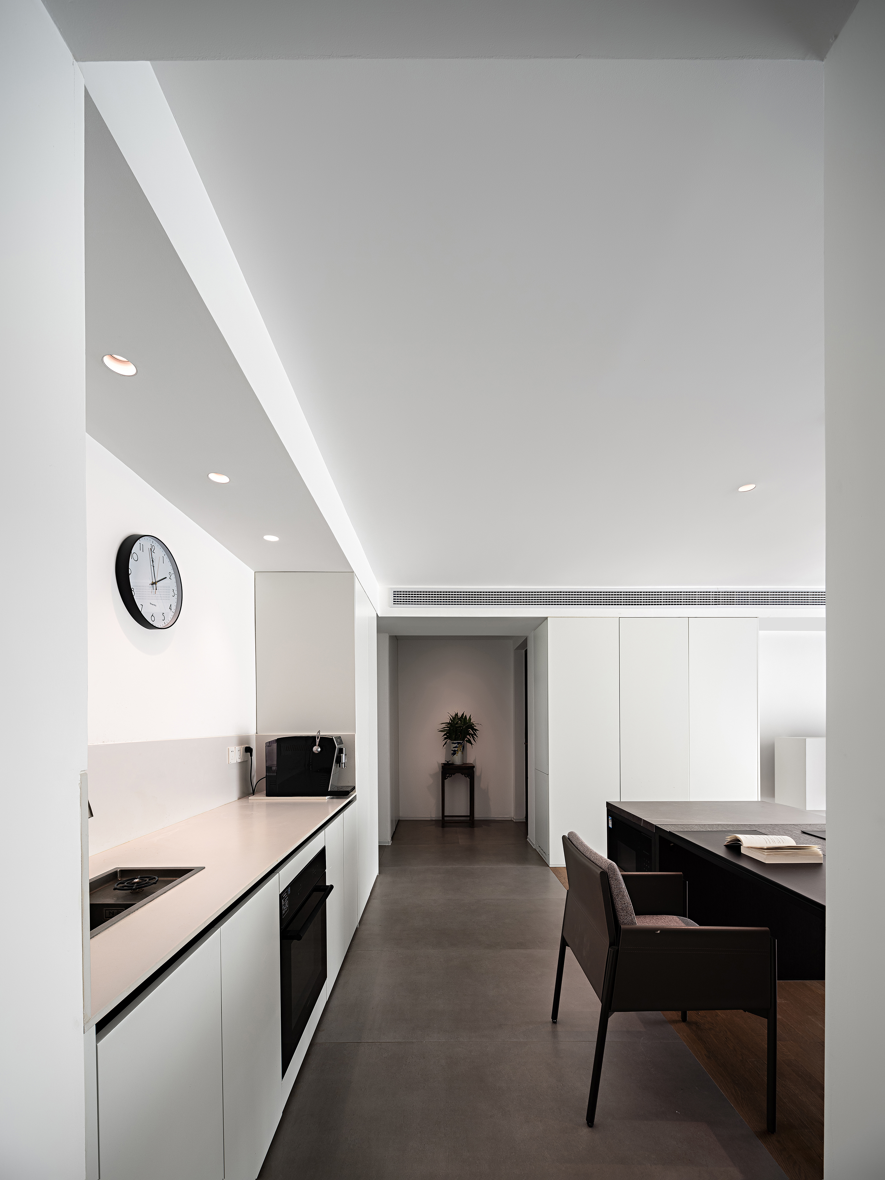 大面积留白,以及区别常规风格的背景墙等处理方式,呈现出它的规而变化异样的造型;
