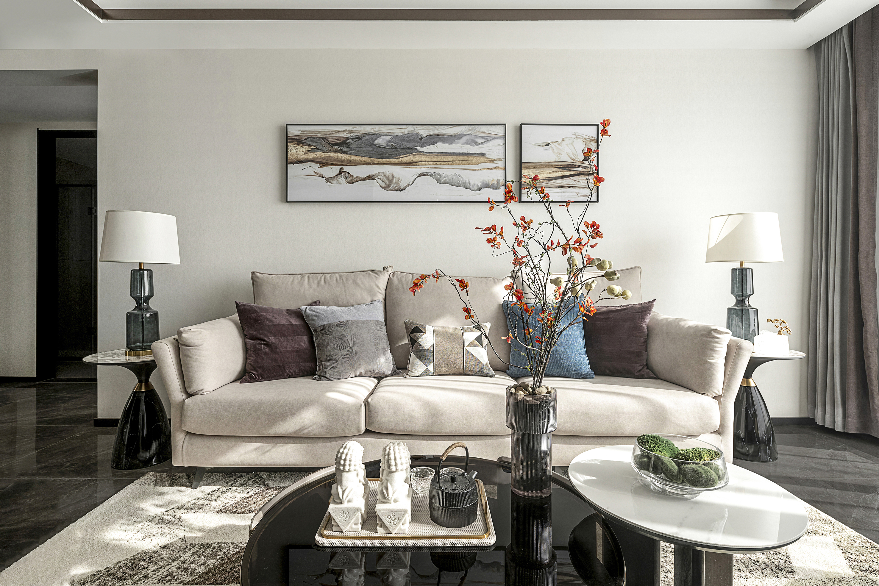 公共空间以浅奶咖色为主体色调,遵循空间视觉特点,给视觉上带来阔达的空间尺度,加上充足的阳光,更显大气。