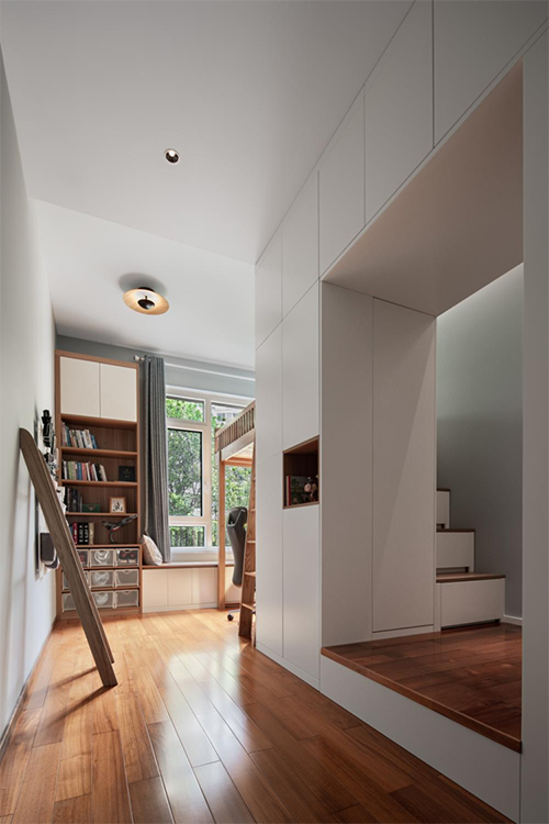 利用空间的高度,做了些曲线的优化分配客餐厅,也在小孩房利用空间的高度做成了多变化的灵动变化;