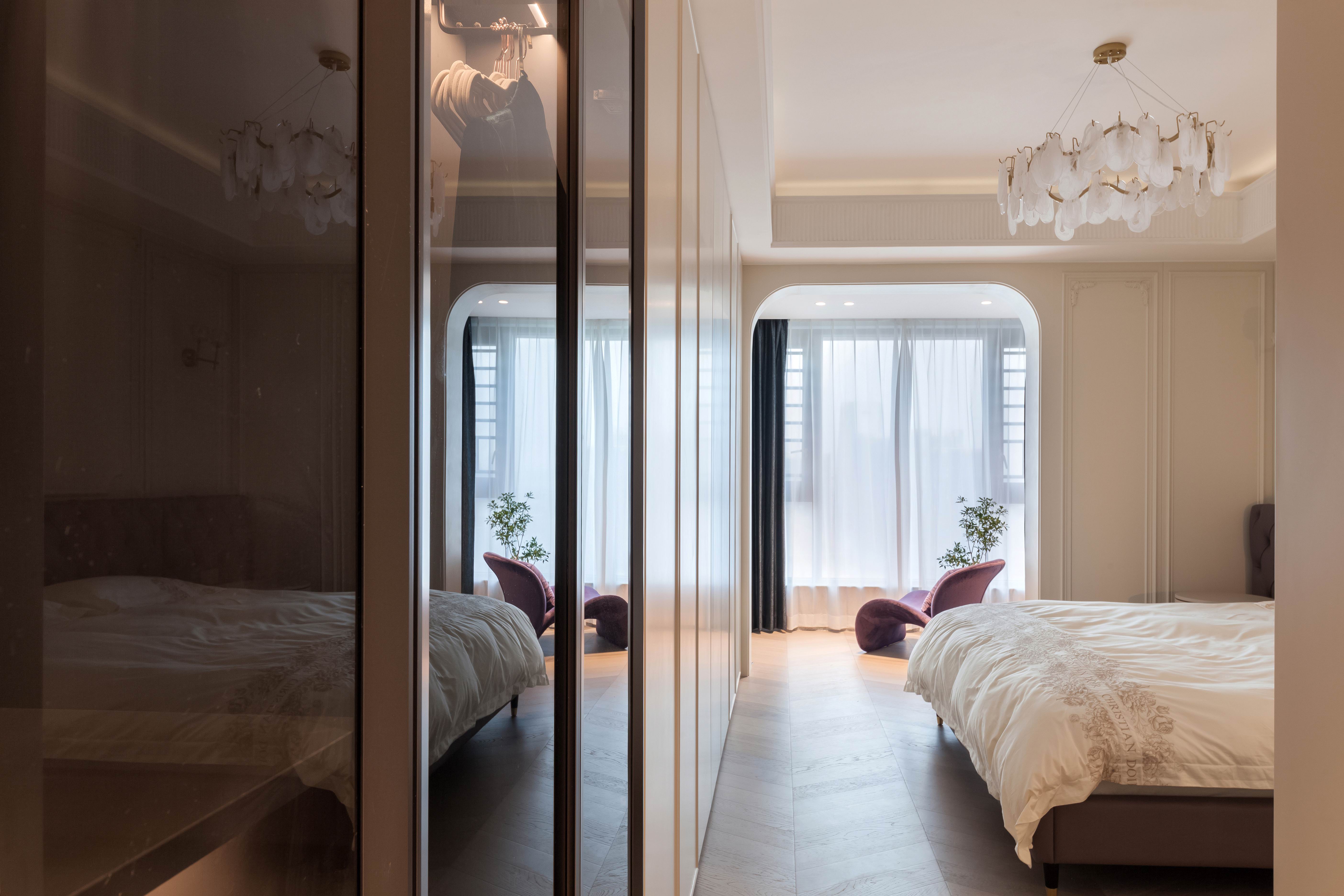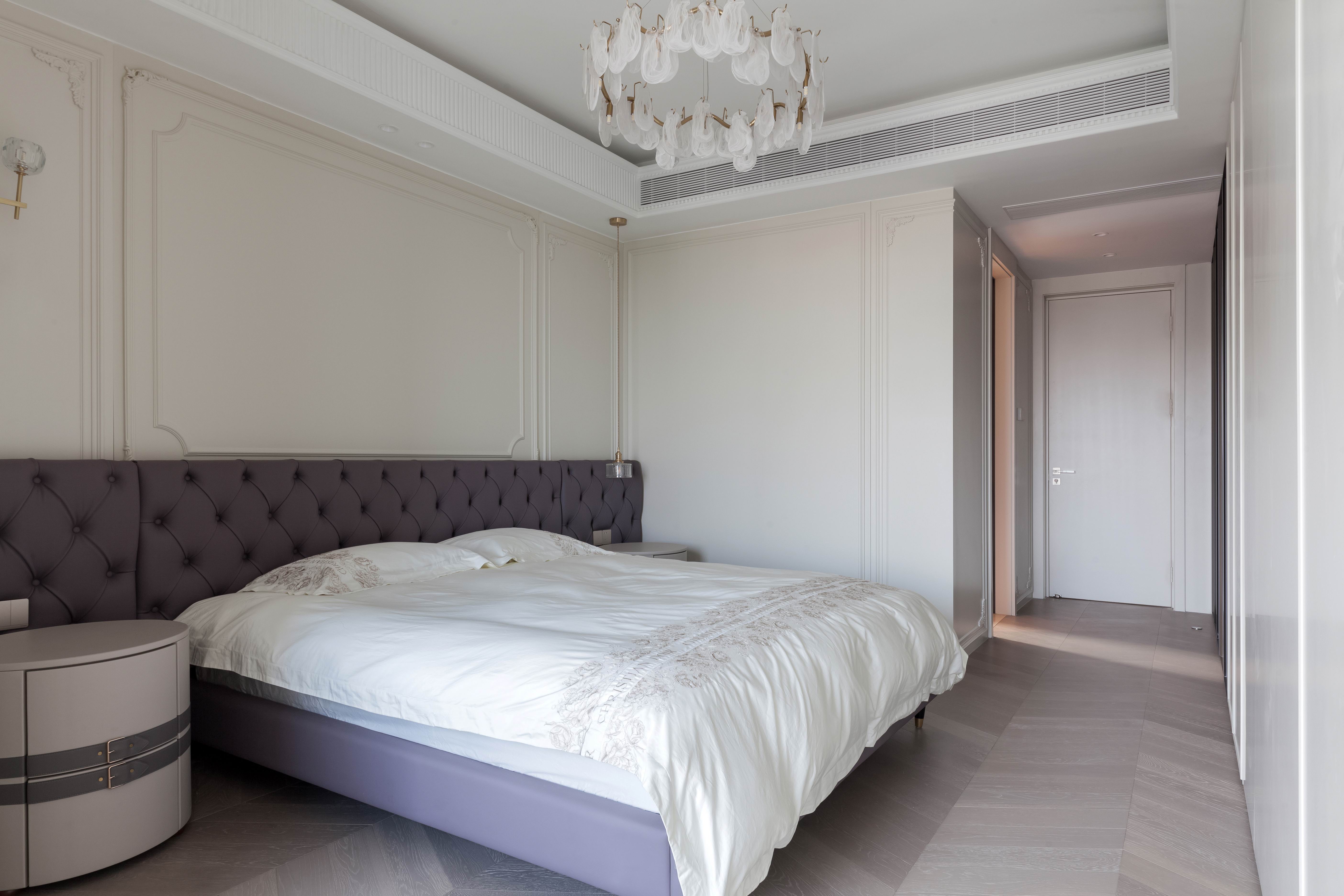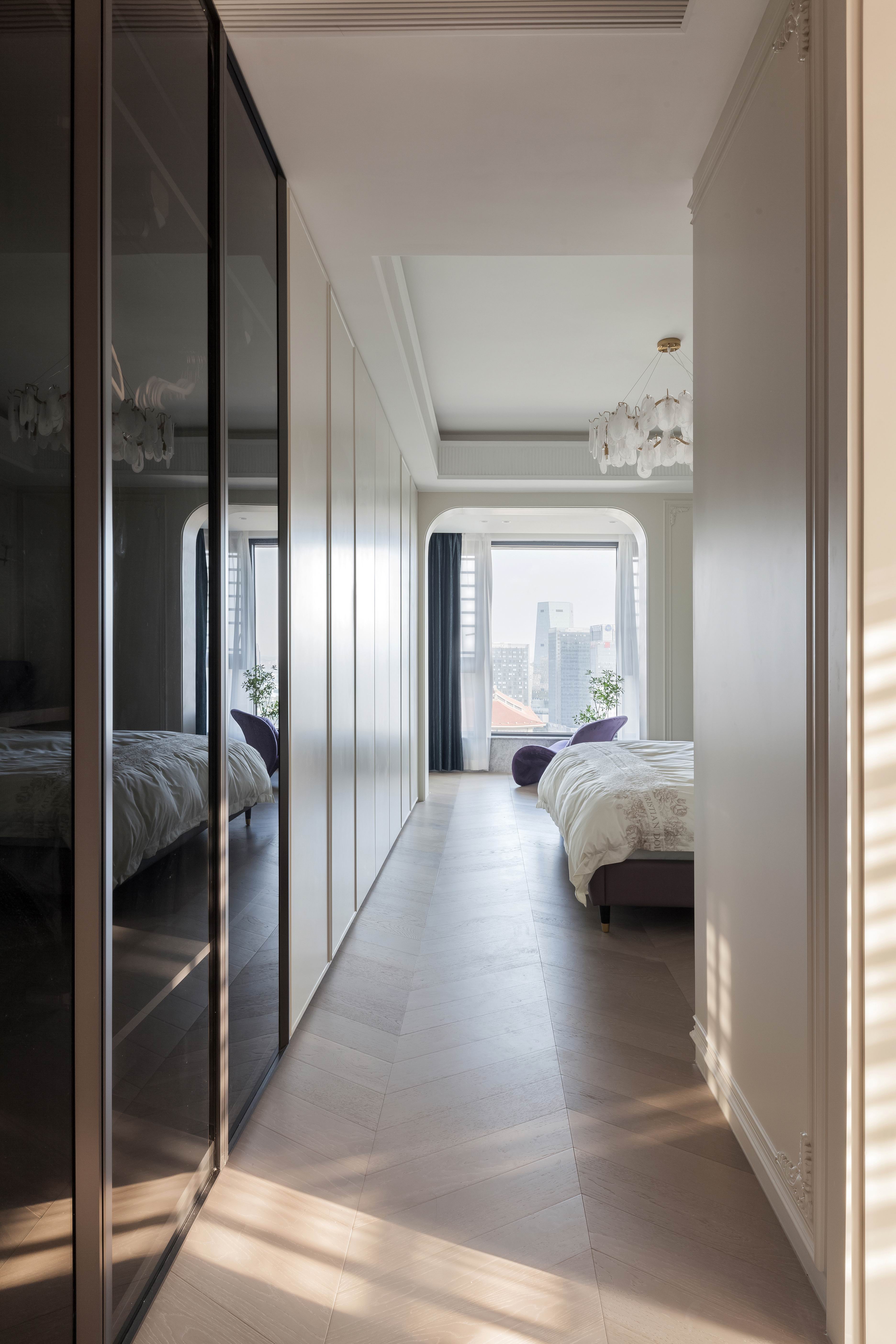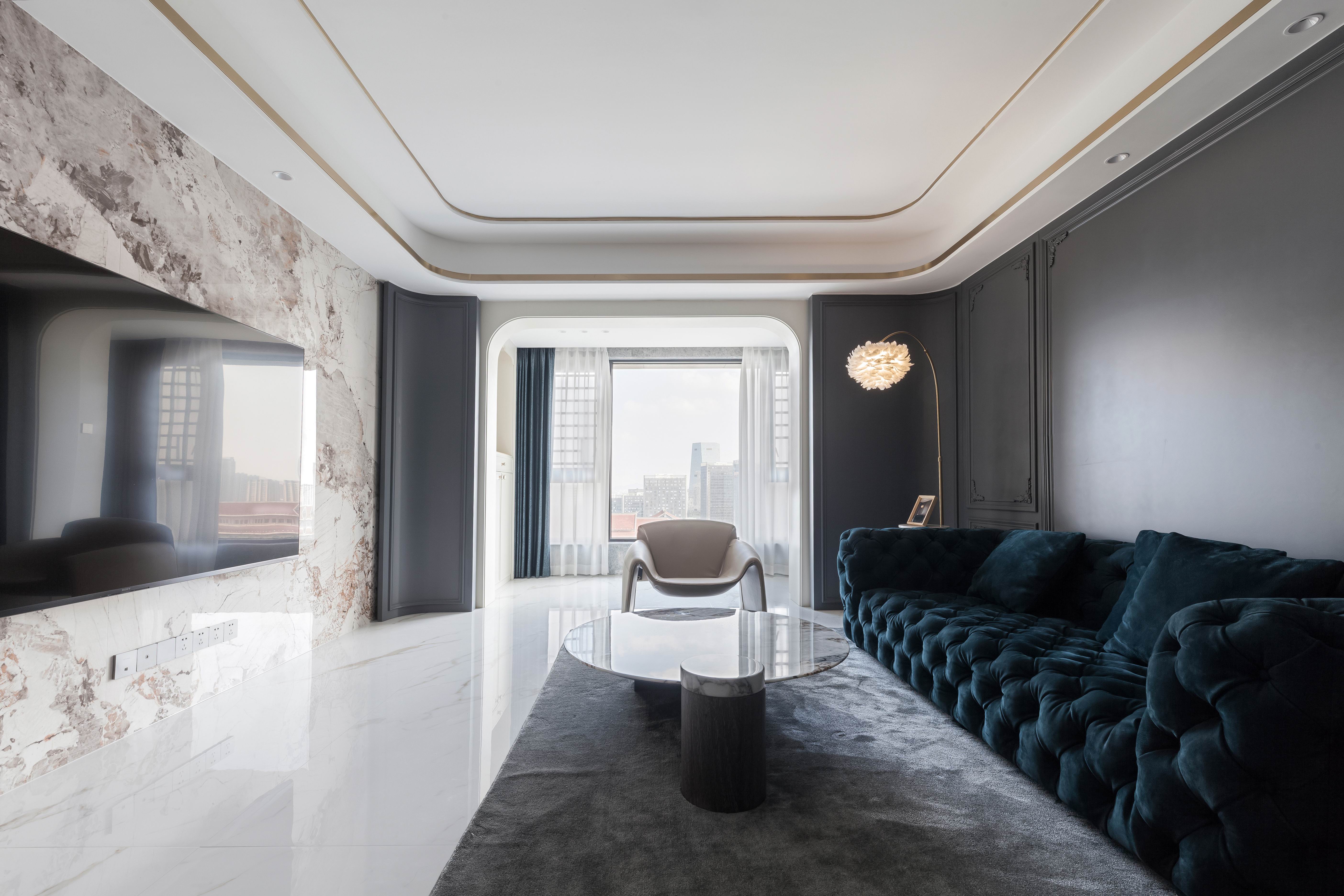 项目定位:本案不同以往的风格思路,业主想要高级感的氛围,所以从法式线条墙板与现代艺术造型做个混搭穿越